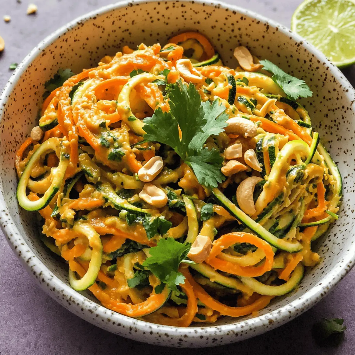 Es war einmal ein hektischer Wochentag, und während ich im Supermarkt nach frischen Zutaten suchte, fiel mein Blick auf die leuchtend grünen Zucchini. Sofort wusste ich, dass ich ein schnelles, gesundes Gericht zaubern wollte – die 15-Minuten Knoblauch-Limetten-Cashew-Zoodles! Diese kreative Kombination ist nicht nur ein Fest für die Augen mit ihren bunten Zutaten, sondern auch ein echtes Geschmackserlebnis. Mit nur wenigen Minuten Vorbereitungszeit und einer unwiderstehlichen, veganen Sauce ist dieses Rezept perfekt für alle, die eine frische und unkomplizierte Mahlzeit suchen. Die knackigen Cashews und die zarten Zoodles machen jede Gabel zu einem Genuss, während der spritzige Limettengeschmack für eine erfrischende Überraschung sorgt. Bist du bereit, deine Küche in eine Oase des Geschmacks zu verwandeln? Lass uns gemeinsam loslegen! Warum wirst du dieses Rezept lieben? Einfachheit pur: In nur 15 Minuten bereit ist dieses Rezept ideal für vielbeschäftigte Tage! Frischer Geschmack: Die Kombination aus Zucchini, Limette und Cashews sorgt für ein knackiges und erfrischendes Geschmacksprofil. Vegan und gesund: Perfekt für alle, die sich gesund ernähren möchten, ohne auf Genuss zu verzichten. Vielfältig kombinierbar: Du kannst kreativ werden, indem du verschiedene Gemüsesorten hinzufügst oder die Nüsse variierst! Überlege zum Beispiel, unsere Knoblauch Gemuesepommes Rezept auszuprobieren. Ein Gericht für alle: Ob als Hauptgericht oder Beilage, diese Zoodles finden überall Gefallen! Knoblauch Limetten Cashew Zoodles Zutaten Für die Zoodles • Zucchini – Frische und Struktur sind entscheidend; mittelgroße Zucchini eignen sich am besten, um überschüssiges Wasser zu vermeiden. • Karotten – Farbe und Crunch; spiralisiert für eine lebendige Note und lassen sich bei Bedarf durch gelbe Kürbisse ersetzen. Für die Sauce • Erdnussbutter – Cremigkeit und Geschmack der Sauce; kann durch Mandel- oder Sonnenblumenkernbutter für eine nussfreie Variante ersetzt werden. • Hoisin Sauce – Süße und Tiefe für die Sauce; Tamari sorgt für einen glutenfreien Ersatz oder mische Sojasauce mit einem Süßungsmittel. • Sriracha Sauce – Würze und Geschmack; die Menge kann je nach Vorliebe angepasst werden, Chili-Paste ist eine gute Alternative. • Sojasauce – Salzig-Umami-Geschmack; verwende eine natriumarme Sojasauce, um den Salzgehalt zu reduzieren. • Limettensaft – Helligkeit und Säure; frische Limetten sind ideal, aber abgepackter Saft ist ein schneller Ersatz. • Knoblauch – Essentiell für aromatische Tiefe; frisch gehackter Knoblauch ist bevorzugt, im Notfall kann auch Knoblauchpulver verwendet werden. Für das Topping • Cashews – Crunch und Protein; geröstete Cashews intensivieren den Geschmack, andere Nüsse wie Erdnüsse oder Mandeln können verwendet werden, verändern jedoch das Gericht. • Frischer Koriander – Aromatische und frische Garnierung; optional und kann durch Basilikum ersetzt werden, um eine andere Kräuternote zu erzielen. Schritt-für-Schritt-Anleitung für 15-Minuten Knoblauch Limetten Cashew Zoodles Step 1: Zucchini und Karotten vorbereiten Spiralisiere die Zucchini auf der mittleren Stufe und die Karotten auf der dünnsten Stufe. Lege die Zoodles und die Karottenstreifen beiseite, damit sie bereit sind, wenn du die Sauce zubereitest. Diese frischen, knackigen Gemüse bieten die perfekte Grundlage für deine köstlichen 15-Minuten Knoblauch Limetten Cashew Zoodles. Step 2: Sauce zubereiten Erhitze in einer großen Pfanne bei mittlerer bis hoher Hitze die Erdnussbutter, Hoisin-Sauce, Sriracha, Sojasauce, Limettensaft und den gehackten Knoblauch für etwa 2 Minuten. Rühre ständig, bis die Mischung duftet und gut vermischt ist. Achte darauf, dass die Sauce sanft köchelt und nicht anbrennt, bevor du die nächsten Zutaten hinzufügst. Step 3: Zoodles und Cashews hinzufügen Füge die gerösteten Cashews, die Zucchini-Zoodles und die Karottenstreifen in die Pfanne. Verwende eine Zange oder große Löffel, um alle Zutaten zu vermengen. Lasse die Mischung für 4-5 Minuten unter häufigem Wenden garen, bis die Zoodles erhitzt sind und al dente bleiben. Die Farben sollten leuchten und die Zoodles sollten noch etwas Biss haben. Step 4: Mit frischem Koriander garnieren Wenn die Zoodles fast gar sind, streue den frischen Koriander darüber und vermische ihn gut. Kaufe frischen Koriander, um das Gericht zu verfeinern, denn er bringt ein tolles Aroma und Frische. Serviere die Knoblauch Limetten Cashew Zoodles sofort, um die optimale Textur und den vollen Geschmack im Gericht zu genießen. Expertentipps für Knoblauch Limetten Cashew Zoodles Zucchini salzen: Salz die Zucchini und lasse sie 10-15 Minuten ruhen, um überschüssige Feuchtigkeit zu entziehen. So bleibt die Sauce nicht wässrig. Kochen im Auge behalten: Achte auf die Kochzeit der Zoodles, um zu verhindern, dass sie weich werden. Sie sollten al dente bleiben für die beste Textur. Cashews zuletzt hinzufügen: Gib die Cashews erst gegen Ende des Garens dazu, damit sie ihren Crunch behalten und nicht weich werden. Alternativen nutzen: Du kannst Erdnussbutter durch Mandel- oder Sonnenblumenkernbutter ersetzen, um die Knoblauch Limetten Cashew Zoodles allergiefreundlicher zu machen. Gemüse variieren: Experimentiere mit verschiedenen Gemüsesorten wie Paprika oder Erbsenschoten, um zusätzliche Aromen und Nährstoffe hinzuzufügen. Aufbewahrungstipps für Knoblauch Limetten Cashew Zoodles Kühlschrank: Bewahre die Zoodles in einem luftdichten Behälter im Kühlschrank auf, um sie bis zu 2 Tage frisch zu halten. Gefrierschrank: Die Zoodles sollten nicht eingefroren werden, da sie beim Auftauen ihre Textur verlieren. Bereite sie lieber frisch zu. Wiedererwärmen: Erhitze übrig gebliebene Zoodles sanft in einer Pfanne bei mittlerer Hitze, um die optimalen Textur und Geschmack zu bewahren. Frische genießen: Am besten schmecken die Knoblauch Limetten Cashew Zoodles frisch servie