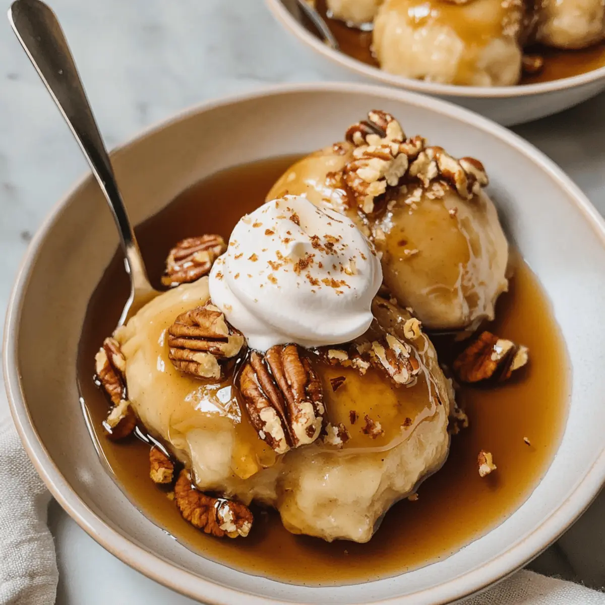 Als ich das erste Mal in einem kleinen Quebecer Café saß, umgeben von dem süßen, warmen Aroma von Ahornsirup, wusste ich, dass ich etwas ganz Besonderes entdeckte: die köstlichen Ahornknödel, auch bekannt als Grandpères. Diese traditionellen kanadischen Desserts sind perfekt für die kühlere Jahreszeit und bieten eine warme Umarmung in Form von zarten, fluffigen Knödeln, die in einer reichhaltigen Ahornsauce schwimmen. Wenn du nach einem gemütlichen Rezept suchst, das schnell zuzubereiten ist und aufgrund seines geschmackvollen Auftritts jeden Gast verzaubert, bist du hier genau richtig. Serviert mit einer cremigen Schicht Sahne oder einer Kugel Eis, sind diese Ahornknödel nicht nur ein Genuss, sie bringen auch den Charme vergangener Zeiten direkt auf deinen Tisch. Bist du bereit, dieses himmlische Dessert auszuprobieren? Warum wirst du dieses Rezept lieben? Einfachheit: Die Zubereitung der Ahornknödel ist unkompliziert und erfordert keine besonderen Fähigkeiten. Jeder kann dieses Rezept meistern! Wohlfühlgeschmack: Die Kombination aus warmen, fluffigen Knödeln und einer süßen Ahornsauce sorgt für ein wohltuendes Geschmackserlebnis, das Erinnerungen an gemütliche Abende weckt. Traditionelles Erlebnis: Diese kanadische Spezialität, inspiriert von den Zuckerhütten, bringt das Flair einer vergangenen Zeit direkt in dein Zuhause. Vielfältige Serviermöglichkeiten: Mit einer Kugel Vanilleeis oder einer cremigen Schicht Sahne sind diese Knödel ein wahrhaft vielseitiges Dessert. Schnell zubereitet: Ideal für Gäste, sind diese Knödel in kürzester Zeit auf dem Tisch und sorgen garantiert für beeindruckte Gesichter. Ahornknödel Zutaten Hinweis: Diese Zutaten bilden die Grundlage für dein köstliches Kanadisches Dessert – die Ahornknödel sind ein wahrer Genuss! Für die Ahornsimmer-Sauce: Wasser – bildet die Basis der Sauce; wichtig für die Konsistenz. Reiner Ahornsirup – sorgt für die unverwechselbare Süße; verwende beste Qualität für besten Geschmack. Rum – fügt Tiefe und Komplexität hinzu; kann bei Bedarf durch Vanilleextrakt ersetzt werden. Salz – hebt die Aromen hervor; unverzichtbar für die Balance. Für die Knödel: Mehl – Hauptbestandteil; Allzweckmehl wird empfohlen. Backpulver – wirkt als Treibmittel für die fluffige Konsistenz. Backsoda – unterstützt beim Aufgehen; arbeitet gemeinsam mit Buttermilch. Salz – für den Geschmack; notwendig, um die Süße auszugleichen. Butter – sorgt für Reichtum; sollte kalt und in kleine Stücke geschnitten sein. Buttermilch – sorgt für zarte Textur; kann durch Milch plus Essig ersetzt werden. Für die Servierung: Schlagsahne – bietet eine leichte, cremige Ergänzung. No-Churn Zimt-Eiscreme – verstärkt den Geschmack und sorgt für einen Hauch von Genuss. Vanilleeis – eine klassische Begleitung. Geröstete Pekannüsse – sorgen für Textur und einen nussigen Geschmack. Schritt-für-Schritt-Anleitung für Ahornknödel Schritt 1: Backofen vorheizen Heize deinen Backofen auf die Warmhaltefunktion bei etwa 80° C vor. So bleiben die fertigen Ahornknödel warm und fluffig, während du die Simmer-Sauce zubereitest. Diese ersten Schritte sorgen dafür, dass dein Dessert am besten serviert werden kann, wenn du bereit bist, es zu genießen. Schritt 2: Sauce vorbereiten In einem großen Topf bringst du das Wasser, den reinen Ahornsirup, den Rum und das Salz bei mittlerer Hitze zum Kochen. Rühre gelegentlich um, damit sich die Zutaten gut vermischen. Wenn die Flüssigkeit blubbert, bist du bereit für die nächste Phase – sie sollte süß und aromatisch riechen. Schritt 3: Knödel-Teig herstellen Gib das Mehl, Backpulver, Backsoda und Salz in eine Küchenmaschine und vermische sie gut. Füge dann kalte Butter in kleinen Stückchen hinzu und püriere die Mischung, bis sie grob aussieht. Rühre die Buttermilch langsam unter, bis der Teig gerade so zusammenkommt. Achte darauf, ihn nicht zu übermixen – Klumpen sind in Ordnung! Schritt 4: Knödel kochen Lass vorsichtig Löffel von dem Teig in die köchelnde Sauce gleiten, bis der Topf zu zwei Dritteln gefüllt ist. Decke den Topf ab und reduziere die Hitze auf niedrig. Lass die Knödel etwa 10 Minuten köcheln, bis sie aufgegangen und durchgegart sind. Sie sollten fluffig und leicht glänzend aussehen, wenn sie fertig sind. Schritt 5: Warm halten Nimm die fertigen Ahornknödel mit einem Schaumlöffel aus dem Topf und lege sie in ein ofenfestes Gericht. Stelle das Gericht in den vorgeheizten Ofen, um die Knödel warm zu halten, während du die restlichen zubereitest. Dies garantiert, dass jedes Stück deinen Gästen warm serviert werden kann. Schritt 6: Servieren Nimm die warmen Ahornknödel aus dem Ofen und serviere sie großzügig mit der reichhaltigen Simmer-Sauce. Veredle die Portionen mit einem Klecks Schlagsahne, einer Kugel No-Churn Zimt-Eiscreme oder klassischem Vanilleeis sowie gerösteten Pekannüssen für zusätzlichen Geschmack und Textur. Lass es dir schmecken! Vorbereiten der Ahornknödel für stressfreies Kochen Die Ahornknödel (Grandpères) sind perfekt für die Vorbereitung im Voraus! Du kannst die Teigmischung bis zu 24 Stunden im Voraus zubereiten und in einem luftdichten Behälter im Kühlschrank aufbewahren, um sicherzustellen, dass sie frisch bleibt. Wenn es Zeit zum Kochen ist, bring die Simmer-Sauce einfach zum Kochen, während du die Knödel aus dem Kühlschrank nimmst und sie in die heiße Flüssigkeit gibst. Achte darauf, die Knödel nicht zu lange im Kühlschrank zu lassen, um die Textur zu bewahren, und koche sie direkt aus dem Kühlschrank, um das Aufgehen zu optimieren. So hast du ein köstliches Dessert, das gleichzeitig schnell und einfach ist—ein wahres Highlight für deine nächste Zusammenkunft! Variationen & Substitutionen zu Ahornknödeln Lass deiner Kreativität freien Lauf und passe dieses Rezept nach deinem Geschmack an! Die Möglichkeiten für köstliche Varianten sind endlos. Alkoholfrei: Ersetze de