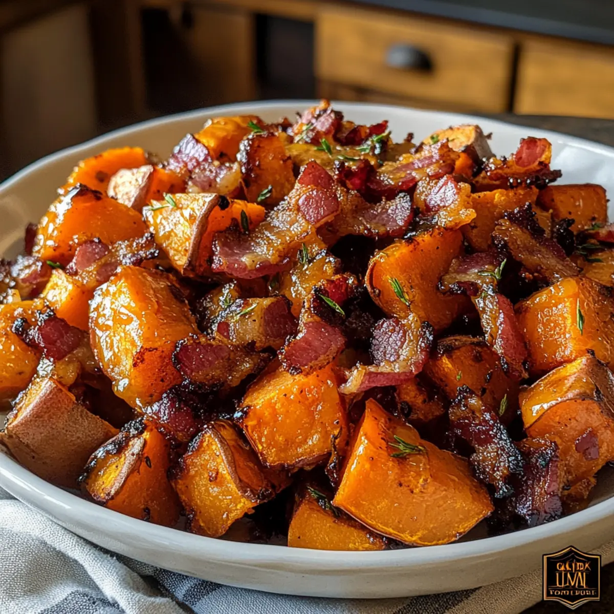 In der kalten Jahreszeit, wenn die Temperaturen sinken und die Gemütlichkeit überhandnimmt, gibt es nichts Besseres als eine Beilage, die beide warmen und herzlichen Elemente vereint. Meine Ahornsirup-Glasierte Süßkartoffeln mit Speck sind genau das – eine köstliche Kombination aus süß und herzhaft, die nicht nur den Gaumen erfreut, sondern auch in der Küche für strahlende Gesichter sorgt. Diese Rezepte sind perfekt für festliche Anlässe oder ein einfaches Familienessen, da sie schnell zubereitet sind und sich als wahre crowd-pleaser erweisen. Wer kann da schon widerstehen, wenn knuspriger Speck auf die zarten, goldenen Süßkartoffeln trifft, während der süße Ahornsirup für einen unverwechselbaren Glanz sorgt? Seid ihr bereit, euch in die unwiderstehlichen Aromen dieser einfachen aber raffinierten Beilage zu verlieben? Warum ist dieses Rezept einzigartig? Harmonie der Aromen: Die Ahornsirup-Glasierte Süßkartoffeln mit Speck vereinen perfekt die Süße des Ahornsirups mit dem herzhaften Geschmack des Specks. Schnelle Zubereitung: In nur wenigen Schritten zaubert ihr ein delikates Gericht, das sich ideal für spontane Dinnerpartys eignet. Vielseitige Beilage: Diese Kombination ergänzt nicht nur festliche Gerichte, sondern ist auch eine wunderbare Ergänzung zu alltäglichen Mahlzeiten. Wahre Crowd-Pleaser: Die Kombination aus zarten Süßkartoffeln und knusprigem Speck sorgt garantiert für strahlende Gesichter am Tisch. Einfach anpassen: Ihr könnt leicht Variationen vornehmen, wie das Hinzufügen von Nüssen oder einer scharfen Note, um euren persönlichen Touch zu verleihen. Lust auf mehr Rezepte in dieser Art? Schaut euch auch unsere schmackhaften Beilagen an, die die perfekte Ergänzung für jedes Essen darstellen! Ahornsirup-Glasierte Süßkartoffeln mit Speck Zutaten Für die Süßkartoffeln Süßkartoffeln – Sie sind der Hauptbestandteil, der Süße und Textur bietet; zwischen den verschiedenen Sorten können jewel oder garnet yams die besten Ergebnisse liefern. Olivenöl – Hilft, die Süßkartoffeln zu karamellisieren und sorgt für eine knusprige Textur; Avocadoöl ist eine tolle Alternative. Für die Würze Salz – Verstärkt den Geschmack der Süßkartoffeln; es gibt keinen direkten Ersatz, da es für das Gleichgewicht der Aromen unerlässlich ist. Schwarzer Pfeffer – Fügt eine milde Schärfe hinzu, die die Süße ergänzt; kann nach Belieben weggelassen werden. Für den herzhaften Geschmack Räucherspeck – Für ein salziges und rauchiges Aroma; Pancetta oder geräucherter Truthahn-Speck sind ebenfalls mögliche Alternativen, jedoch lässt sich der Geschmack nicht ganz ersetzen. Zwiebeln – Tragen zur Geschmacksvertiefung bei und karamellisieren im Glasur; für gleichmäßiges Kochen werden dünne Scheiben empfohlen. Für die süße Glasur Reiner Ahornsirup – Ist entscheidend für die Süße und sorgt für die köstliche Glasur; keine echten Ersatzstoffe vorhanden, aber in Notfällen kann eine Mischung aus Honig und Melasse verwendet werden. Frische Thymianblätter – Fügen eine aromatische, frische Note hinzu; frischer Rosmarin kann ebenfalls für einen erdigen Geschmack verwendet werden. Genießt die herrlichen Aromen dieser Ahornsirup-Glasierte Süßkartoffeln mit Speck und lasst sie Teil eurer nächsten Feierlichkeit oder Familientreffens werden! Schritt-für-Schritt-Anleitung für Ahornsirup-Glasierte Süßkartoffeln mit Speck Schritt 1: Ofen vorheizen und vorbereiten Heizen Sie den Ofen auf 200 °C vor. Währenddessen schälen Sie die Süßkartoffeln und schneiden sie in gleichmäßige Würfel. Geben Sie die Süßkartoffelwürfel in eine Schüssel und vermengen Sie sie gründlich mit Olivenöl, Salz und Pfeffer, bis sie gleichmäßig bedeckt sind. Verteilen Sie die Süßkartoffeln auf einem Backblech in einer einzigen Schicht, um ein Verkleben zu verhindern. Schritt 2: Rösten Schieben Sie das Backblech mit den Süßkartoffeln in den vorgeheizten Ofen und rösten Sie sie für 25 bis 30 Minuten. Wenden Sie die Süßkartoffeln nach etwa der Hälfte der Zeit, damit sie gleichmäßig garen und eine goldbraune Farbe annehmen. Sie sind perfekt, wenn sie zart sind und eine schöne karamellisierte Oberfläche haben. Schritt 3: Speck garen Während die Süßkartoffeln rösten, erhitzen Sie eine große Pfanne bei mittlerer Hitze. Fügen Sie die in Stücke geschnittenen Speckscheiben hinzu und braten Sie sie, bis sie knusprig sind, was etwa 5 bis 7 Minuten dauert. Lösen Sie den knusprigen Speck von der Pfanne und lassen Sie ihn auf einem Küchenpapier abtropfen, während Sie das Fett in der Pfanne belassen. Schritt 4: Zwiebeln anbraten Geben Sie die dünn geschnittenen Zwiebeln in das verbliebene Speckfett in der Pfanne und reduzieren Sie die Hitze auf mittlere bis niedrige Stufe. Braten Sie die Zwiebeln 10 bis 12 Minuten lang, bis sie weich und goldbraun sind. Achten Sie darauf, sie regelmäßig umzurühren, damit sie gleichmäßig karamellisieren und nicht anbrennen. Schritt 5: Glasur zubereiten Wenn die Zwiebeln karamellisiert sind, fügen Sie den Ahornsirup und die frischen Thymianblätter hinzu. Rühren Sie vorsichtig um und lassen Sie die Mischung 2 bis 3 Minuten köcheln, damit sich die Aromen verbinden und die Glasur leicht eindickt. Beobachten Sie die Konsistenz, um sicherzustellen, dass sie nicht zu dünn wird. Schritt 6: Kombinieren und servieren Nehmen Sie die gerösteten Süßkartoffeln aus dem Ofen und geben Sie sie in die Pfanne mit der Ahorn-Zwiebel-Glasur. Fügen Sie den knusprigen Speck hinzu und vermengen Sie alles gut, sodass die Süßkartoffeln gleichmäßig mit der Glasur umhüllt sind. Servieren Sie die Ahornsirup-Glasierte Süßkartoffeln mit Speck warm und genießen Sie die köstliche Mischung aus süß und herzhaft. Aufbewahrungstipps für Ahornsirup-Glasierte Süßkartoffeln mit Speck Raumtemperatur:: Diese köstlichen Süßkartoffeln sollten nicht länger als 2 Stunden bei Raumtemperatur stehen, um die Frische zu gewä