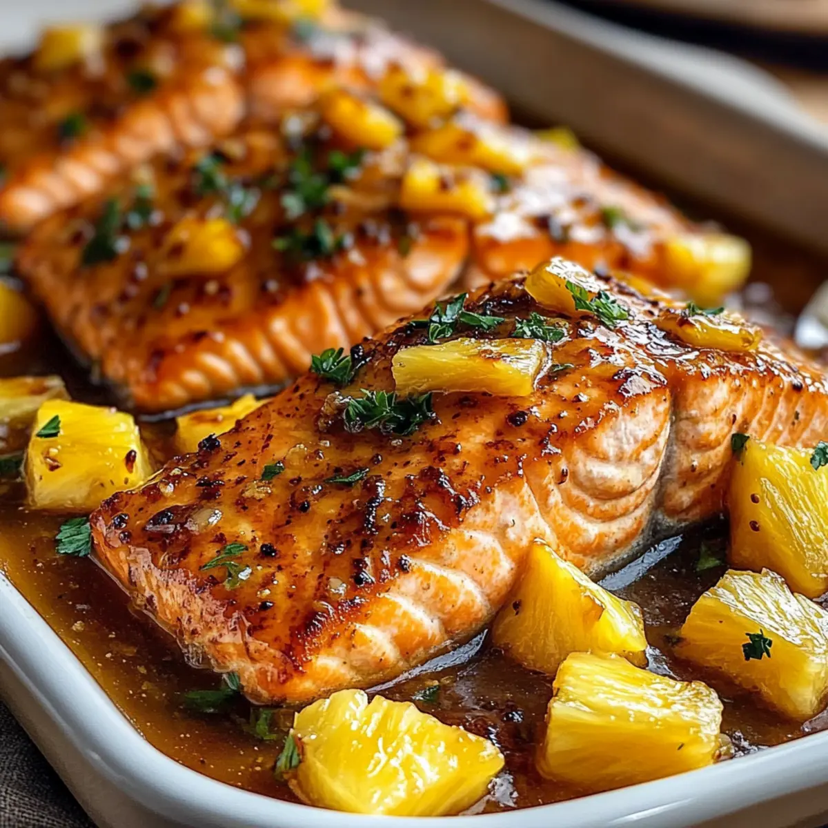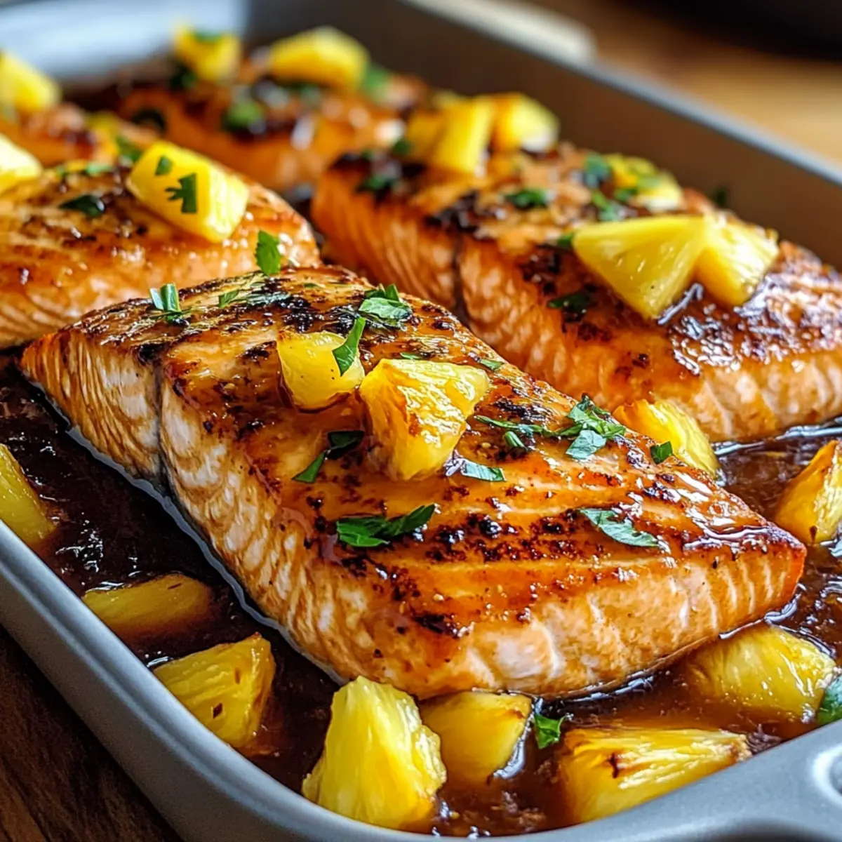 Vielseitigkeit: Serviert den Ananas-Glasierter Lachs mit verschiedenen Beilagen wie Kokosnuss Curry Lachs oder Lachs Knuspriger Reis für zusätzliche abwechslungsreiche Geschmackserlebnisse.