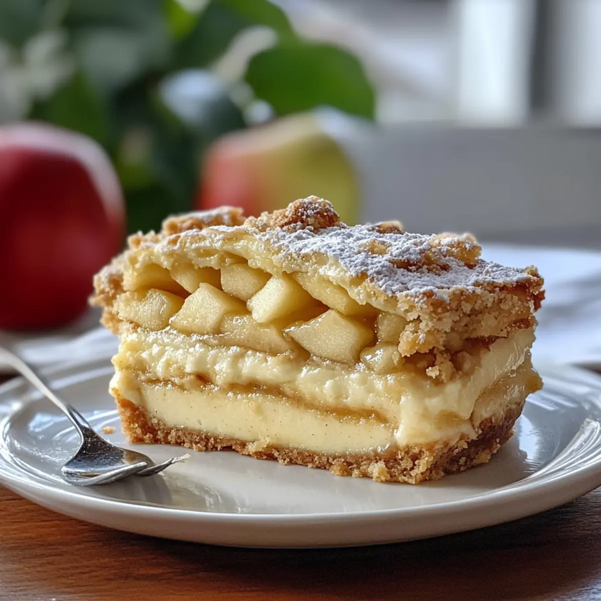 Ein köstlicher Apfel Pudding Kuchen, der saftige Äpfel mit cremigem Vanillepudding kombiniert und für jede Gelegenheit perfekt ist.