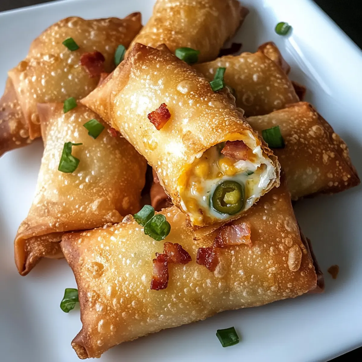 Gerade als ich überlegte, was ich zur nächsten Grillparty mitbringen könnte, fiel mir eine Empfehlung ein, die ich nie vergessen werde: Bacon Jalapeño Popper Frühlingsrollen. Diese kleinen Wunderwerke sind eine köstliche Kombination aus knusprigem Teig und einer cremigen Füllung aus rauchigem Speck, würzigem Cheddar und der perfekten Schärfe von Jalapeños. Sie sind nicht nur ein Hit auf jeder Party, sondern auch im Handumdrehen zubereitet. Mit nur etwa 100 Kalorien pro Stück sind sie die ideale Wahl, wenn der Hunger kommt – ohne ein schlechtes Gewissen zu verursachen! Bereit, eure Geschmacksknospen zu überraschen? Lassen wir die Kochschürzen nicht nur als Deko hängen! Warum sind diese Frühlingsrollen besonders? Cremige Füllung: Die Kombination aus frischem Frischkäse und würzigem Cheddar sorgt für eine aufregende Geschmacksbombe in jedem Bissen. Räucherspeck verleiht diesen Frühlingsrollen die nötige Tiefe, während Jalapeños für die perfekte, gut dosierte Schärfe sorgen. Vielseitig einsetzbar: Ob beim nächsten Grillfest oder als Snack für einen gemütlichen Filmabend – diese Frühlingsrollen sind ein echter Publikumsmagnet. Einfache Zubereitung: Mit ein wenig Geschick sind sie im Handumdrehen fertig. Für eine leichtere Variante könnt ihr sie auch Backen anstatt Frittieren – einfach köstlich! Falls ihr noch mehr Inspiration sucht, schaut euch auch unsere Rezepte für leckere Partyhäppchen oder gesunde Snacks an! Bacon Jalapeño Popper Frühlingsrollen Zutaten Für die Füllung Frischkäse – bildet die cremige Basis der Füllung und sorgt für eine perfekte Textur. Könnt ihr durch Sauerrahm ersetzen, wenn ihr einen säuerlichen Geschmack mögt. Geriebener Cheddar – verleiht eine scharfe Note und schmilzt wunderbar. Für zusätzlichen Pepp kann auch Pfefferjack verwendet werden. Räucherspeck – sorgt für einen herzhaften Geschmack und ein rauchiges Aroma. Verwendet truthahnspeck für eine leichtere Option. Jalapeños – bringen den signifikanten Kick; fein gehackt bieten sie die perfekte Schärfe. Für eine mildere Variante könnt ihr Poblano-Paprika verwenden. Knoblauchpulver – fügt ein aromatisches Element hinzu. Frischer Knoblauch ist auch möglich, aber verwendet weniger, da er intensiver ist. Zwiebelpulver – ergänzt die Füllung mit einer milden Süße. Frische Zwiebel kann ebenfalls genutzt werden, verändert aber die Feuchtigkeit. Für die Hülle Frühlingsrollenteig – sorgt für die knusprige Außenhülle; beim Frittieren goldbraun und knusprig. Alternativ könnt ihr auch Frühlingsrollen-Wrapper nehmen. Pflanzenöl – notwendig zum Frittieren, um die knusprige Textur zu erzielen. Canola- oder Erdnussöl eignen sich ebenfalls gut. Salz – als abschließende Würze, um die Aromen nach dem Frittieren zu verstärken. Ranch-Dressing oder Sauerrahm (optional) – dient als erfrischender Dip, der die Schärfe der Frühlingsrollen perfekt ausgleicht. Diese Bacon Jalapeño Popper Frühlingsrollen sind nicht nur eine Augenweide, sondern auch ein Genuss für den Gaumen. Teilt eure Kreationen gerne mit uns! Schritt-für-Schritt-Anleitung für Bacon Jalapeño Popper Frühlingsrollen Step 1: Füllung zubereiten Mische in einer mittleren Schüssel den Frischkäse, den geriebenen Cheddar, den zerbröckelten Räucherspeck, die gehackten Jalapeños, das Knoblauchpulver und das Zwiebelpulver miteinander, bis eine glatte und cremige Masse entsteht. Achte darauf, dass alle Zutaten gut miteinander vermischt sind, um ein gleichmäßiges Aroma in deinen Bacon Jalapeño Popper Frühlingsrollen zu gewährleisten. Step 2: Frühlingsrollenteig vorbereiten Lege ein Frühlingsrollenteigblatt in einer Diamantform auf eine saubere Fläche. Setze etwa zwei Esslöffel der vorbereiteten Füllung in die Mitte des Teigblatts. Achte darauf, dass die Füllung nicht zu nah am Rand positioniert ist, um ein Auslaufen beim Rollen zu verhindern und die Form der Frühlingsrollen zu wahren. Step 3: Frühlingsrollen formen Klappe die untere Ecke des Frühlingsrollenteigs über die Füllung und falte dann die beiden Seiten in die Mitte, um die Füllung zu umschließen. Rolle den Teig fest auf, bis du an die obere Ecke gelangst, und benutze etwas Wasser, um die Kante zu versiegeln. Achte darauf, dass deine Bacon Jalapeño Popper Frühlingsrollen gut gerollt sind, damit sie beim Frittieren nicht aufplatzen. Step 4: Öl erhitzen Erhitze in einer tiefen Pfanne oder einem Topf etwa 5 cm Pflanzenöl auf 175 °C. Verwende ein Kü thermometer, um die Temperatur genau zu überwachen, da das richtige Öltemperatur entscheidend ist, um eine knusprige Textur zu erreichen und das Aroma der Frühlingsrollen zu bewahren. Step 5: Frühlingsrollen frittieren Frittiere die vorbereiteten Frühlingsrollen in kleinen Portionen, sodass sie genug Platz haben, um gleichmäßig zu garen, für etwa 3–5 Minuten oder bis sie goldbraun und knusprig sind. Drehe sie während des Frittierens gelegentlich um, um sicherzustellen, dass alle Seiten gleichmäßig gebräunt werden. Step 6: Abtropfen und würzen Nimm die fertig frittierten Bacon Jalapeño Popper Frühlingsrollen mit einer Zange aus dem heißen Öl und lasse sie auf Küchenpapier abtropfen. Streue sofort eine Prise Salz über die heißen Frühlingsrollen, um die Aromen zu intensivieren und ein unvergleichliches Geschmackserlebnis zu bieten. Step 7: Servieren Serviere die frisch zubereiteten Bacon Jalapeño Popper Frühlingsrollen warm zusammen mit Ranch-Dressing oder Sauerrahm als erfrischenden Dip. Diese Kombination wird das würzige Aroma der Frühlingsrollen perfekt ausgleichen und sorgt für eine köstliche Geschmacksexplosion bei jedem Biss. Was passt zu Bacon Jalapeño Popper Frühlingsrollen? Die perfekten Begleiter für diese köstlichen Frühlingsrollen sorgen für eine harmonische Geschmackserfahrung und machen jede Mahlzeit unvergesslich. Cremiger Ranch-Dip: Ein erfrischender Dip, der die Würze der Frühlingsrollen perfekt ausgleic