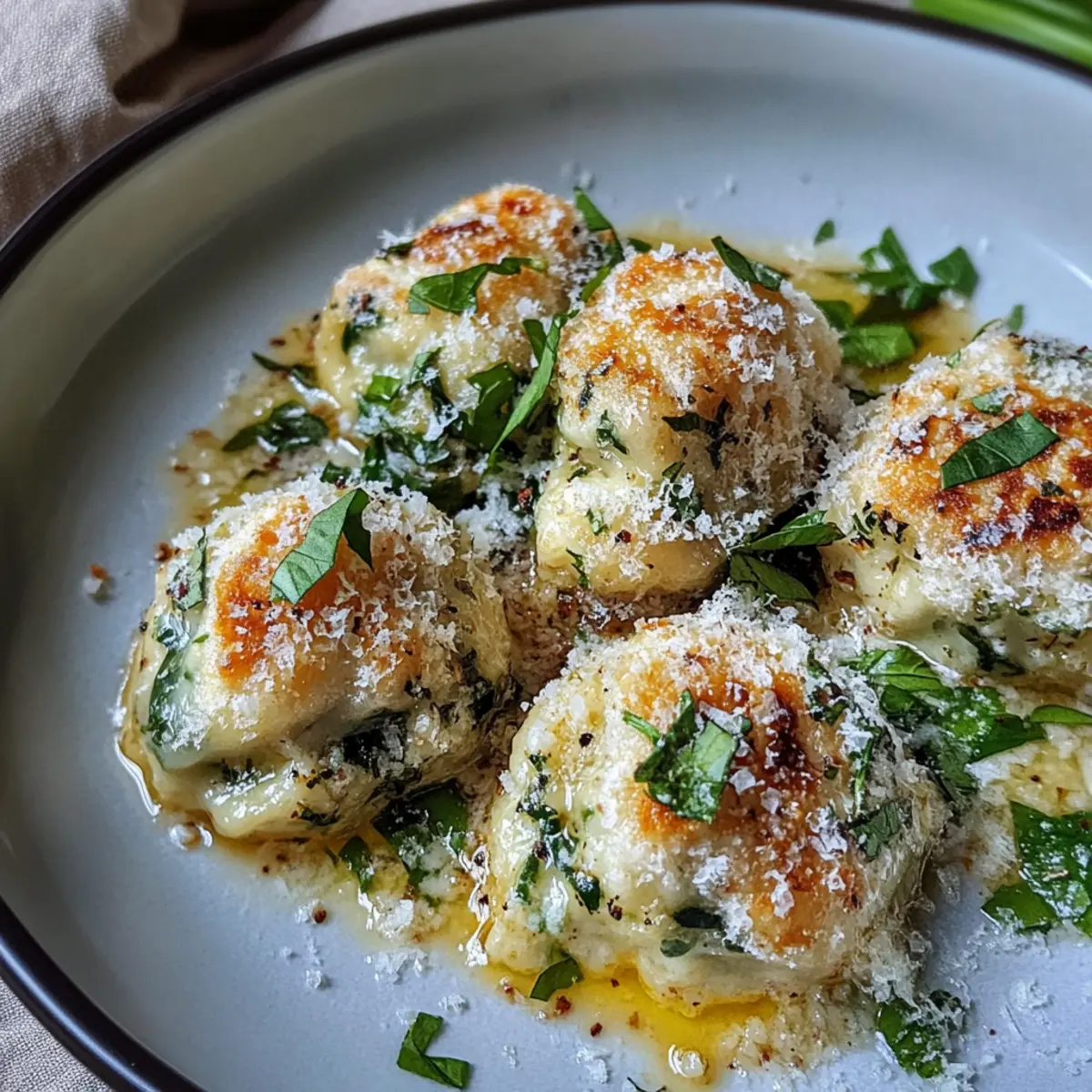 Es gibt nichts, was den Frühling so sehr verkörpert wie der verlockende Duft von frischem Bärlauch, der in der Luft liegt. Dieser zarte wilde Knoblauch hat die Kraft, jedes Gericht in ein aromatisches Erlebnis zu verwandeln, und das gilt besonders für meine Bärlauch-Parmesan-Knödel mit Nussbutter. Diese köstlichen Klöße vereinen die rustikale Gemütlichkeit von selbstgemachten Dumplings und die erfrischende Würze des Bärlauch, und das Beste daran? Sie sind schnell zubereitet und ideal, um übrig gebliebenes Brot kreativ zu verwerten. Stellen Sie sich vor, wie diese fluffigen Knödel in goldbrauner Nussbutter baden und jede Gabel zu einem kleinen Frühlingsfest wird. Bereit, Ihre Geschmacksnerven auf eine neue Reise zu schicken? Lassen Sie uns gemeinsam in die Welt der Bärlauch-Parmesan-Knödel eintauchen!