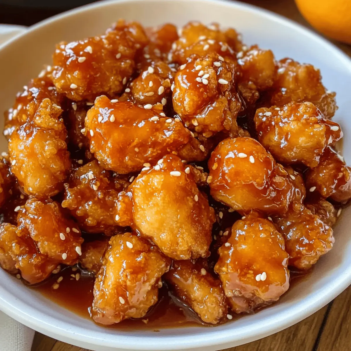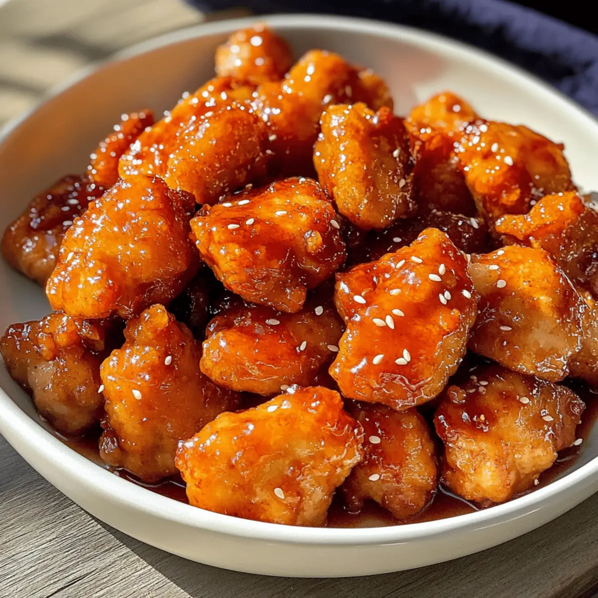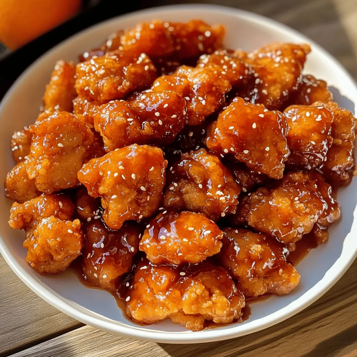 In der Hektik des Alltags können wir manchmal den Bezug zu gesunden, selbstgekochten Mahlzeiten verlieren. Wenn ich jedoch den verführerischen Duft von frisch gebackenem Baked Orange Chicken wahrnehme, verwandelt sich meine Küche in eine Oase des Wohlbefindens. Dieses Rezept ist eine köstliche, gesunde Variante, die im Handumdrehen zuzubereiten ist – perfekt für deinen hektischen Wochentag. Der frische Geschmack der Orangensauce kombiniert mit dem knusprigen, goldenen Hähnchen ist nicht nur ein Fest für den Gaumen, sondern auch wesentlich leichter als die traditionelle frittierte Version. In nur 30 Minuten bist du bereit, deine Liebsten mit einem beeindruckenden Gericht zu verwöhnen, das sowohl gesund als auch unglaublich lecker ist. Bist du bereit, deine nächste Mahlzeit mit einem asiatisch inspirierten Twist aufzuwerten? Warum wirst du dieses Rezept lieben? Einfachheit: Die Zubereitung erfordert nur grundlegende Kochkenntnisse und ist in nur 30 Minuten erledigt. Gesundheitsbewusst: Diese Variante ist leicht und viel gesünder als frittierte Alternativen – ideal für ein schnelles Abendessen. Köstlicher Geschmack: Die süß-säuerliche Orangensauce und das knusprige Hähnchen sorgen für einen abwechslungsreichen Genuss, den du garantiert lieben wirst. Vielseitigkeit: Du kannst die Gemüsebeilage nach Belieben anpassen oder die Hähnchenbrust gegen Hähnchenschenkel tauschen, um mehr Abwechslung zu bieten. Familienfreundlich: Dieses Gericht kommt bei Groß und Klein gut an und eignet sich perfekt für einen entspannten Abend mit den Liebsten. Probiere auch Crack Chicken Gnocchi für eine weitere köstliche Option! Zutaten für Baked Orange Chicken • Für das perfekte Gericht, hier sind die Zutaten, die du brauchst. Für die Panade: Panko Breadcrumbs – Sorgt für eine knusprige Kruste; verwende japanisches Panko für das beste Ergebnis. Oil Spray – Hilft, eine knusprige Außenschicht beim Backen zu erreichen. All-Purpose Flour – Kotelet Hähnchen für die Panade, damit das Panko besser haftet. Eggs – Dient zum Binden der Panade. Für das Hähnchen: Chicken Breasts – Hauptprotein; hautlos und ohne Knochen ist ideal. Hähnchenschenkel sind ebenfalls eine gute Alternative. Garlic Powder – Verleiht dem Hähnchen zusätzlichen Geschmack; frischer, gehackter Knoblauch kommt in die Sauce. Cracked Pepper – Zu einer perfekten Würze; verbessert den Gesamtgeschmack. Salt – Essentiell für die Geschmacksverstärkung. Für die Sauce: Minced Garlic – Frischer Knoblauch sorgt für mehr Aroma und Geschmack in der Sauce. Ginger – Gibt eine warme, würzige Note; frisch gerieben ist bevorzugt. Sesame Oil – Nur eine kleine Menge für einen kräftigen Geschmack; zu viel kann das Gericht überlagern. Hoisin Sauce – Fügt Süße und einen Hauch von Umami zur Sauce hinzu. Orange Juice – Frisch gepresst hebt den Geschmack; vermeide Säfte aus dem Karton mit Zuckerzusatz. Orange Marmalade – Fügt Süße und zusätzlichen Geschmack hinzu; kann für weniger Süße weggelassen werden. Ketchup – Verleiht der Sauce Tiefe und Farbe; eine ungewöhnliche, aber essentielle Zutat. Light Soy Sauce – Sorgt für Salzgeschmack; dunkle Sojasauce kann die Farbe der Sauce verändern. Honey – Balanciert die Säure mit Süße. Für die Garnierung: Sesame Seeds – Zum Garnieren, fügt nussigen Geschmack und visuelle Anziehung hinzu. Freshly Cooked Rice – Dient als Basis für das Hähnchen und rundet das Gericht ab. Mit diesen Zutaten bist du bestens ausgestattet, um dein Baked Orange Chicken zuzubereiten! Schritt-für-Schritt-Anleitungen für Baked Orange Chicken Step 1: Ofen vorheizen und Panko rösten Heize den Ofen auf 180°C vor. Verteilt die Panko-Brösel gleichmäßig auf einem Backblech und sprühe sie leicht mit Öl ein. Backe sie für 10 Minuten, bis sie goldbraun und knusprig sind. Dies sorgt für die perfekte, crunchige Kruste für dein Baked Orange Chicken. Nach dem Rösten das Blech aus dem Ofen nehmen und beiseite stellen. Step 2: Hähnchen vorbereiten Schneide die Hähnchenbrust in 5 cm große Würfel und gib sie in eine Schüssel. Füge Knoblauchpulver, frisch gemahlenen Pfeffer und Salz hinzu. Vermische alles gründlich, damit jedes Stück Hähnchen gleichmäßig gewürzt ist. Diese Vorbereitung ist entscheidend für den gesamten Geschmack des Baked Orange Chicken. Step 3: Hähnchen panieren Richte dich für die Panierung ein: Stelle drei Schalen bereit – eine mit Mehl, die zweite mit verquirlten Eiern und die dritte mit den gerösteten Panko-Bröseln. Wende jedes Hähnchenstück zuerst im Mehl, dann in den Eiern und schließlich in den Panko-Bröseln, sodass es gut umhüllt ist. Diese Knusprigkeit ist ein Highlight des Gerichts. Step 4: Hähnchen backen Lege die panierten Hähnchenstücke gleichmäßig auf ein mit Backpapier ausgelegtes Backblech. Backe sie für 20 Minuten im vorgeheizten Ofen, bis sie goldbraun und knusprig sind. Die Hähnchenstücke sollten voll durchgegart und an der Oberfläche schön knusprig sein, was sie ideal für das Baked Orange Chicken macht. Step 5: Sauce zubereiten Erhitze etwas Olivenöl in einer großen Pfanne bei mittlerer Hitze. Füge den gehackten Knoblauch und den geriebenen Ingwer hinzu und brate sie 1-2 Minuten an, bis sie duften. Gib die Hoisinsauce, frisch gepressten Orangensaft, die Orangenmarmelade, Ketchup, Sojasauce und Honig hinzu. Lasse die Sauce 5-7 Minuten köcheln, bis sie leicht eingedickt ist. Step 6: Hähnchen in der Sauce schwenken Nehme die gebackenen Hähnchenstücke aus dem Ofen und gib sie direkt in die Pfanne mit der vorbereiteten Sauce. Wende die Hähnchenstücke vorsichtig, sodass sie gleichmäßig mit der Sauce überzogen sind. Dies verleiht dem Baked Orange Chicken seinen unverwechselbaren süß-sauren Geschmack. Step 7: Servieren Serviere das Baked Orange Chicken heiß über einem Bett aus frisch gekochtem Reis. Garniere das Gericht mit Sesamkörnern für einen nussigen Geschmack und extra visuelle