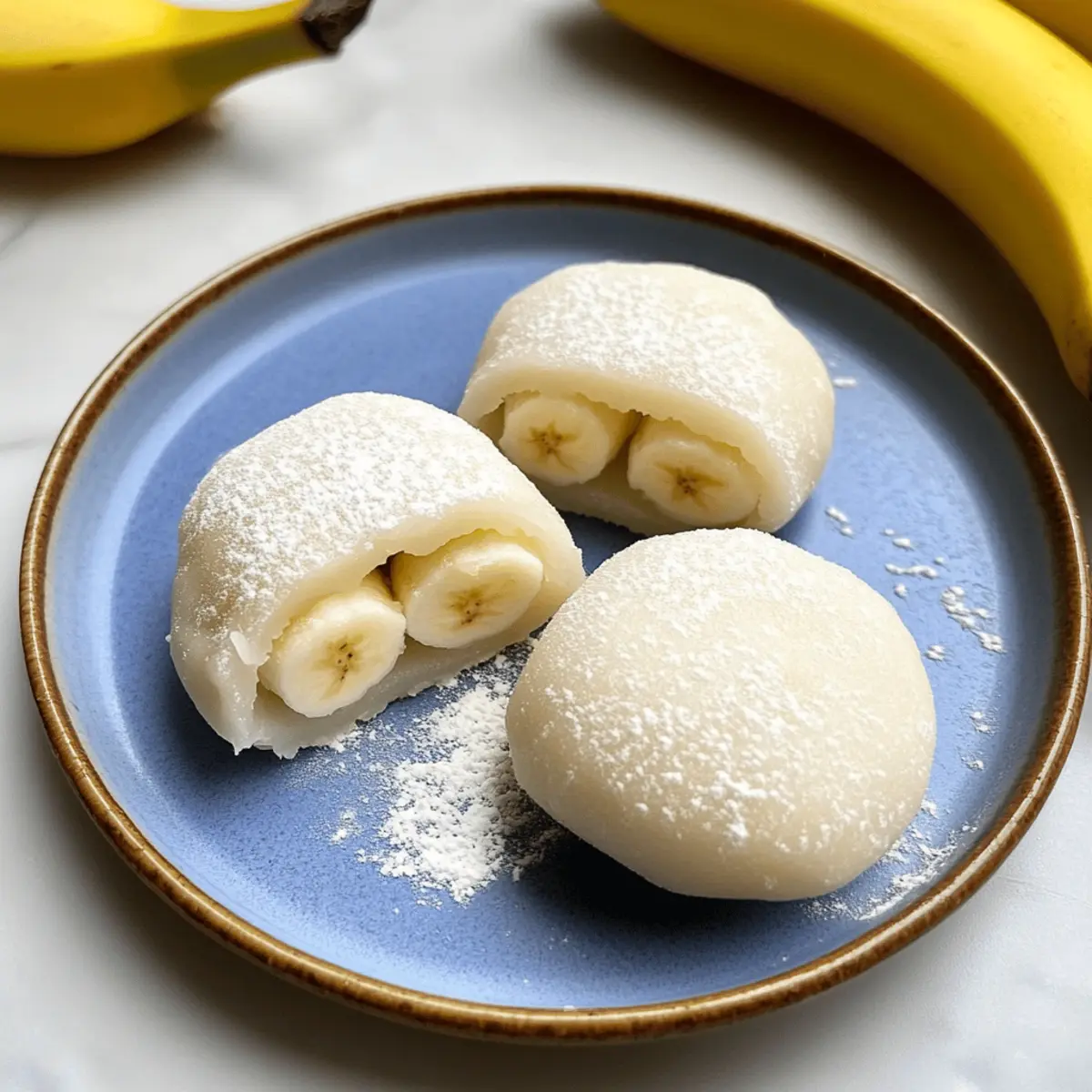 • Fruchtvariationen: Sei kreativ und probiere verschiedene Füllungen aus. Neben Bananen kannst du auch Erdbeeren oder Mangos verwenden, um dein Banana Mochi zu variieren!