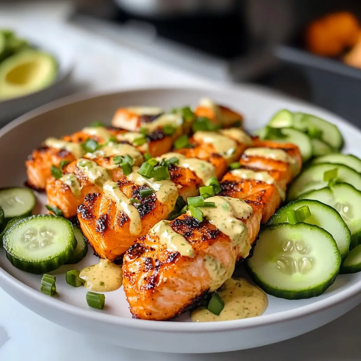 Wenn ich an meine letzten Kochexperimente denke, läuft mir immer ein kleiner Schauer über den Rücken, besonders wenn ich an den Moment denke, in dem mein Bang Bang Lachs aus dem Ofen kommt. Dieses Gericht ist nicht nur ein Fest für die Augen, sondern auch für den Gaumen! Die saftigen, knusprigen Lachswürfel, umhüllt von einer cremigen Sauce, die einen Hauch von asiatischen Aromen verspricht, sorgen garantiert für Begeisterung am Familientisch. Mit einer Zubereitungszeit von nur 30 Minuten ist dieses Rezept nicht nur schnell, sondern auch perfekt geeignet für hektische Wochentage, an denen wir eine gesunde und leckere Mahlzeit zubereiten wollen. Habt ihr schon einmal darüber nachgedacht, wie einfach es sein kann, köstlichen Fisch mit einer aufregenden Twist zu genießen? Warum ist Bang Bang Lachs so besonders? Einzigartiger Geschmack: Mit seiner cremigen Bang Bang Sauce und dem knackigen Gemüse verbindet dieser Lachs asiatische Aromen auf unvergleichliche Weise. Schnelle Zubereitung: In nur 30 Minuten bringt ihr ein köstliches Gericht auf den Tisch – perfekt für Familien mit wenig Zeit. Gesunde Wahl: Vollgepackt mit Omega-3-Fettsäuren und frischen Vitaminen eignet sich dieses Rezept hervorragend für alle, die gesund essen möchten. Vielseitig: Ihr könnt nicht nur Lachs, sondern auch Garnelen oder Hähnchen verwenden, um euer eigenes twist zu kreieren. Wenn ihr auf der Suche nach weiteren leckeren Fischgerichten seid, probiert auch unser Kokosnuss Curry Lachs oder Lachs Knuspriger Reis. Bang Bang Lachs Zutaten • Für diesen köstlichen Bang Bang Lachs benötigt ihr einige frische und leckere Zutaten. Für den Lachs Lachsfilet – Ideal sind frische oder gefrorene Filets, die ihr in Würfel schneidet, um die knackige Textur zu verstärken. Für die Bang Bang Sauce Mayonnaise – Sie sorgt für eine cremige Basis und lässt sich gut mit anderen Aromen kombinieren. Scharfe Soße – Verleiht der Sauce den gewünschen Kick; passt perfekt zu den milden Aromen des Lachses. Limettensaft – Frisch gepresst bringt er eine angenehme Säure in die Sauce. Für den Salat Gurke – Sie sorgt für Frische und Crunch; alternativ könnt ihr auch Karotten oder Paprika verwenden. Avocado – Fügt eine samtige Textur hinzu, am besten frisch vor dem Servieren hinzufügen. Zusätzliche Gemüse (z.B. Edamame, zerkleinerter Kohl) – Diese erhöhen den Nährwert eures Salats und bieten Variationen; verwendet saisonales Gemüse für mehr Abwechslung. Viel Spaß beim Zubereiten eures eigenen Bang Bang Lachs und entdeckt die köstlichen Aromen, die dieses Gericht zu bieten hat! Schritt-für-Schritt-Anleitung für Bang Bang Lachs Schritt 1: Lachs vorbereiten Schneidet das Lachsfilet in gleichmäßige Würfel von etwa 3 cm. Heizt eine Pfanne auf mittlerer Hitze vor und fügt einen Hauch Öl hinzu. Würzt die Lachswürfel mit Salz und Pfeffer und lasst sie etwa 5 Minuten ruhen, damit die Aromen einziehen. Schritt 2: Bang Bang Sauce zubereiten In einer Schüssel kombiniert ihr 100 g Mayonnaise, 2-3 Esslöffel scharfe Soße und den Saft einer halben Limette. Rührt alles gut um, bis eine cremige, gleichmäßige Sauce entsteht. Die Bang Bang Sauce sollte leicht scharf und gut gewürzt sein, sodass sie perfekt zum Lachs passt. Schritt 3: Lachs kochen Erhitzt die Pfanne wieder auf mittlerer bis hoher Hitze. Gebt die Lachswürfel in die Pfanne und bratet sie etwa 4-5 Minuten pro Seite, bis sie goldbraun und knusprig sind. Dreht die Würfel vorsichtig um, um eine gleichmäßige Bräunung zu erzielen. Der Lachs sollte innen zart und saftig bleiben. Schritt 4: Salat zusammenstellen Während der Lachs kocht, schneidet die Gurke in dünne Scheiben und die Avocado in Würfel. In einer großen Schüssel vermischt ihr die Gurkenscheiben mit der Avocado und ergänzt dies mit optionalem Gemüse wie Edamame oder zerkleinertem Kohl. Beträufelt alles leicht mit Limettensaft für zusätzlichen Geschmack. Schritt 5: Servieren Richtet die knusprigen Lachswürfel auf einem Teller an und träufelt die vorbereitete Bang Bang Sauce großzügig darüber. Serviert den Salat als frische Beilage und genießt die Kombination aus dem knackigen Gemüse und dem würzigen Lachs. Lasst es euch schmecken! Expertentipps für Bang Bang Lachs Perfekte Garzeit: Überkocht den Lachs nicht, da er sonst trocken wird. Wie ihr wisst, soll die Innentemperatur zart und saftig bleiben. Sauce Vorbereiten: Bereitet die Bang Bang Sauce im Voraus zu. Ihr könnt sie bis zu einer Woche im Kühlschrank aufbewahren, um Zeit zu sparen. Alternative Zubereitung: Verwendet eine Heißluftfritteuse für eine knusprige Textur mit weniger Öl. Dies ist eine gesunde Option für euren Bang Bang Lachs. Gemüsevielfalt: Fühlt euch frei, mit verschiedenen Gemüsevarianten zu experimentieren. Julienschnitten von Karotten oder Paprika sorgen für zusätzlichen Crunch. Lagerung der Reste: Lagert übrig gebliebenen Lachs und Salat getrennt, um die Textur zu bewahren. Gekühlter Lachs schmeckt auch köstlich in Salaten. Lagerungstipps für Bang Bang Lachs Raumtemperatur:: Bang Bang Lachs sollte nicht länger als 2 Stunden bei Raumtemperatur stehen gelassen werden, um die Lebensmittelsicherheit zu gewährleisten. Kühlschrank:: Bewahrt übrig gebliebenen Lachs und Salat in luftdichten Behältern im Kühlschrank auf. So bleibt die Frische bis zu 2 Tage erhalten. Gefrierfach:: Gekochten Lachs kann bis zu 3 Monate im Gefrierfach aufbewahrt werden. Wickelt ihn gut in Frischhaltefolie ein, um Gefrierbrand zu vermeiden. Aufwärmen:: Erhitzt den Lachs in der Mikrowelle oder in einer Pfanne bei niedriger Hitze, bis er heiß ist. So bleibt die beste Textur des Bang Bang Lachses erhalten. Was passt gut zum Bang Bang Lachs? Der Bang Bang Lachs ist eine wahre Geschmacksexplosion, die auf eurer Festtafel perfekt zur Geltung kommt! Dampfrisi: Ein zarter Begleiter, der die Aromen des Lachs hervorhebt und eine angenehme Textur bietet. Die sanfte Süße des Reis gleicht die Würze der 