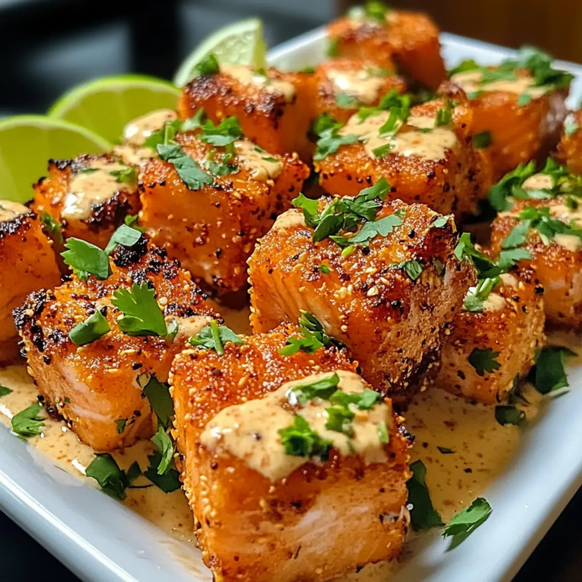 Gerade als ich in der Küche stand und die Zutaten für meine nächste kulinarische Kreation verteilte, bemerkte ich die fröhlichen Geräusche, die in meinem Wohnzimmer erklangen. Es war Zeit für Bang Bang Lachs Bissen – ein schnelles, aber äußerst schmackhaftes Rezept, das in nur 20 Minuten fertig ist! Diese kleinen Häppchen sind nicht nur kinderleicht zuzubereiten, sondern bringen auch die ganze Familie zusammen. Jeder Bissen ist ein Geheimrezept für gute Laune: die Kombination aus knusprigem, zartem Lachs und einer cremigen, süß-scharfen Sauce sorgt für ein Geschmackserlebnis, das einfach begeistert. Für die nächsten geselligen Abende oder als überraschende Vorspeise zu einem festlichen Dinner – werden Sie dieses Rezept lieben! Wer hat Lust auf eine köstliche und unkomplizierte Gaumenfreude? Warum werden Sie Bang Bang Lachs Bissen lieben? Schnell zubereitet! Mit nur 20 Minuten Kochzeit sind diese Bissen der perfekte Snack für den hektischen Alltag. Voller Geschmack! Die Kombination aus knusprigem Lachs und der cremigen, süß-scharfen Sauce wird Ihre Geschmacksknospen begeistern. Familienfreundlich! Die Kinder werden dieses gesunde Gericht lieben, und auch Erwachsene können sich nicht zurückhalten. Vielseitig! Ob als Vorspeise oder Hauptgericht, die Bang Bang Lachs Bissen passen zu jeder Gelegenheit. Probieren Sie sie auch mit einer Beilage von Cremiger Himbeer Kuchen für ein vollendetes Menü! Bang Bang Lachs Bissen Zutaten • Diese Zutaten sorgen für ein unvergessliches Geschmackserlebnis! Für den Lachs Lachs – Der Hauptbestandteil, der zart und geschmackvoll ist; frischer Lachs ist am besten, gefrorener tut es auch, wenn er vollständig aufgetaut ist. Olivenöl – Sorgt für Feuchtigkeit und hilft, eine knusprige Außenhaut beim Kochen zu erzielen. Knoblauchpulver – Verstärkt den herzhaften Geschmack. Zwiebelpulver – Fügt eine zusätzliche Geschmacksdimension hinzu. Räucherpaprika – Verleiht eine subtile Rauchnote und Farbe. Cayennepfeffer – Optional, für eine scharfe Note; nach Belieben anpassen. Salz & Pfeffer – Essenzielle Gewürze zur Verstärkung des Geschmacks. Für die Bang Bang Sauce Mayonnaise – Die Grundlage der Bang Bang Sauce, die Cremigkeit kreiert. Thailändische Süß-Chili-Sauce – Gibt der Sauce Süße und einen Hauch von Schärfe. Sriracha – Fügt der Bang Bang Sauce einen pikanten Kick hinzu; nach Geschmack anpassen. Honig – Bringt zusätzliche Süße ins Spiel, um die Aromen auszugleichen. Limettensaft – Für eine erfrischende Säure, die das Gericht abrundet. Experimentieren Sie mit diesen Zutaten, um Ihre eigenen Bang Bang Lachs Bissen zu kreieren! Schritt-für-Schritt-Anleitung für Bang Bang Lachs Bissen Schritt 1: Den Lachs vorbereiten Schneiden Sie den Lachs in 2,5 cm große Würfel und geben Sie ihn in eine Schüssel. Fügen Sie Olivenöl, Knoblauchpulver, Zwiebelpulver, Räucherpaprika, Cayennepfeffer (falls verwendet), Salz und Pfeffer hinzu. Vermengen Sie alles gut, sodass die Lachsstücke gleichmäßig gewürzt sind. Dieser Schritt sorgt dafür, dass die Bang Bang Lachs Bissen beim Kochen voll im Geschmack sind. Schritt 2: Den Lachs garen Für die Pfannenmethode erhitzen Sie eine beschichtete Pfanne bei mittlerer bis hoher Hitze. Geben Sie die gewürzten Lachsstücke hinein und braten Sie sie 2-3 Minuten lang auf jeder Seite, bis sie goldbraun und knusprig sind. Wenn Sie die Backofen-Methode bevorzugen, heizen Sie den Ofen auf 200°C vor, legen Sie die Lachsstücke auf ein mit Backpapier ausgelegtes Blech und backen Sie sie 10-12 Minuten, bis der Lachs durchgegart ist. Schritt 3: Bang Bang Sauce zubereiten In einer Schüssel vermengen Sie die Mayonnaise, die thailändische Süß-Chili-Sauce, Sriracha, Honig und Limettensaft. Rühren Sie die Mischung gründlich um, bis sie eine glatte, cremige Konsistenz erreicht. Die Bang Bang Sauce bringt die perfekten Geschmackskombinationen in die Bang Bang Lachs Bissen und sorgt für die süß-scharfe Note, die Sie lieben werden. Schritt 4: Servieren Sobald der Lachs fertig ist, nehmen Sie ihn aus der Pfanne oder dem Ofen und lassen Sie ihn kurz abkühlen. Tossieren Sie die warmen Lachsstücke vorsichtig in der Bang Bang Sauce oder beträufeln Sie sie großzügig mit der Sauce, bevor Sie sie servieren. Garnieren Sie die Bang Bang Lachs Bissen nach Belieben, um sie optisch ansprechend zu präsentieren und den Geschmack noch weiter zu verbessern. Was passt zu Bang Bang Lachs Bissen? Gerne lade ich Sie ein, ein komplettes Menü um die köstlichen Bang Bang Lachs Bissen zu kreieren und den Gaumen mit vielfältigen Aromen zu verwöhnen. Cremiger Kartoffelbrei: Diese klassische Beilage hebt die knusprigen Texturen der Bissen hervor und sorgt für einen herzhaften Ausgleich. Frischer Blattsalat: Ein leichter, knackiger Salat aus Rucola und Kirschtomaten bringt frische Aromen ins Spiel und harmoniert perfekt mit der süß-scharfen Sauce. Reisnudeln: Die zarten Nudeln bieten eine angenehme Textur und saugen die köstliche Bang Bang Sauce auf, was zu jedem Bissen ein Geschmackserlebnis macht. Gedämpfte Brokkoli-Röschen: Diese gesunde Beilage bringt Farbe auf den Teller und bietet einen milden Kontrast zu den kräftigen Aromen der Lachs Bissen. Mango-Salsa: Süße Mangostücke mit frischem Koriander ergänzen die Bang Bang Lachs Bissen perfekt und sorgen für eine fruchtige Note. Hausgemachte Limonade: Ein erfrischendes Getränk, das die spicy Aromen der Bissen ausgleicht und ein sommerliches Flair verleiht. Mit diesen sorgfältig ausgewählten Beilagen und Getränken wird Ihr Essen zu einem unvergesslichen Erlebnis! Lagerungstipps für Bang Bang Lachs Bissen Raumtemperatur: Lassen Sie die Bang Bang Lachs Bissen nicht länger als 2 Stunden bei Raumtemperatur stehen, um die Frische und Sicherheit zu gewährleisten. Kühlschrank: Bewahren Sie übrig gebliebene Lachs Bissen in einem luftdichten Behälter im Kühlschrank für bis zu 2 Tage auf, um ihre Knusprigkeit zu erhalten.