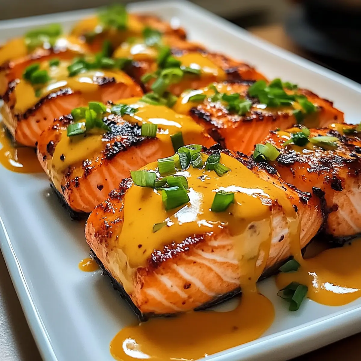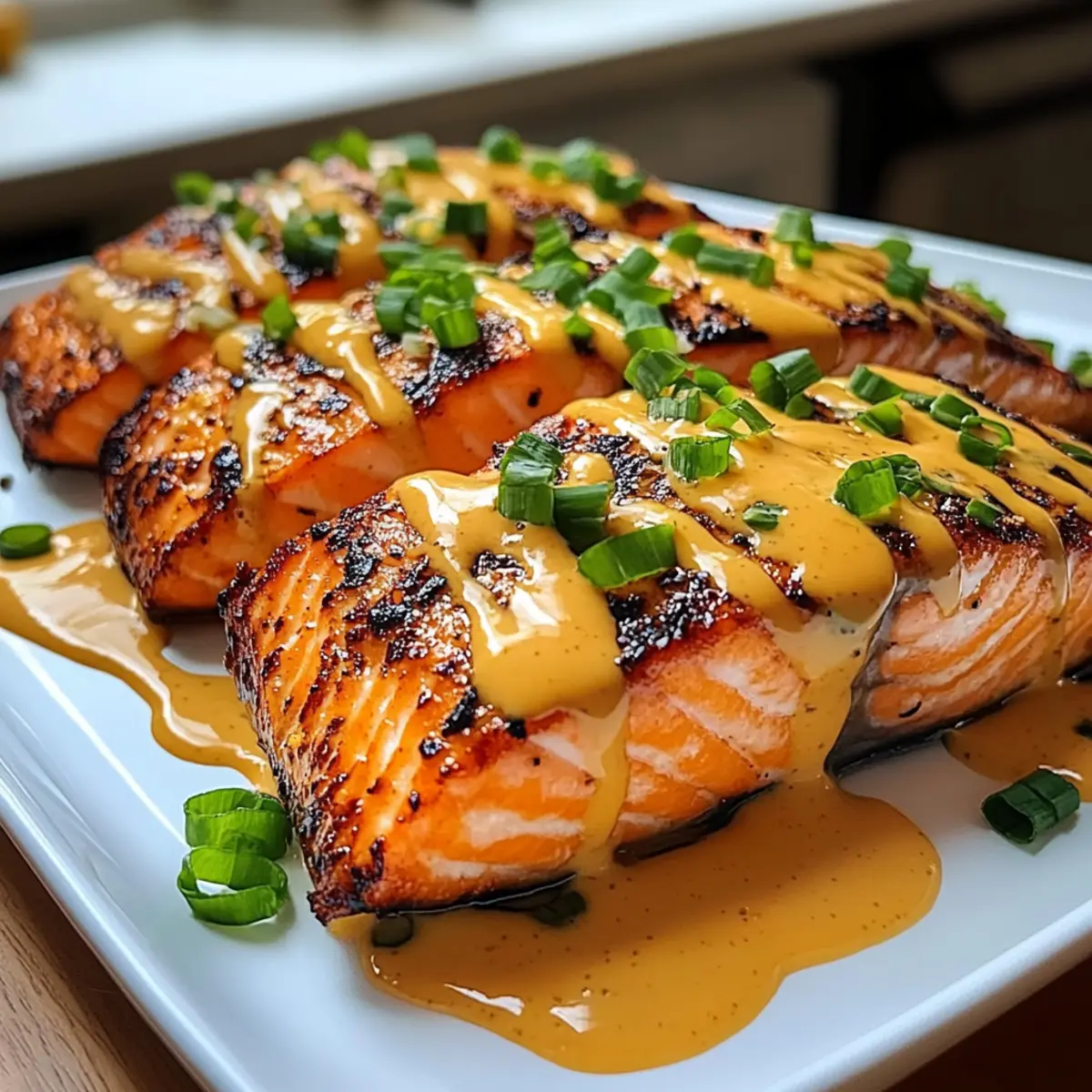 Stell dir einen hektischen Abend vor, an dem der Hunger nach etwas Köstlichem ruft, aber die Zeit für aufwendiges Kochen einfach fehlt. Das ist der perfekte Moment für unseren Bang Bang Lachs! In nur 15 Minuten zauberst du ein asiatisch inspiriertes Gericht auf den Tisch, das sowohl herzhaft als auch proteinreich ist. Diese schnelle Zubereitung macht den Bang Bang Lachs nicht nur zu einem idealen Feierabendessen, sondern garantiert auch, dass du deine Gäste mit einem Restaurant-Feeling zu Hause verwöhnst. Egal, ob du einen frischeren Pfiff oder eine cremige Sauce suchst, dieser Lachs wird definitiv dein neuer Favorit werden! Bist du bereit, deinen Gaumen auf eine aufregende Reise zu schicken? Warum ist Bang Bang Lachs so beliebt? Schnelligkeit: In nur 15 Minuten kannst du ein köstliches Gericht zaubern, das perfekt für hektische Abende ist. Vibrante Aromen: Die harmonische Mischung aus süßen, scharfen und herzhaften Noten macht jeden Bissen zu einem Erlebnis. Einfache Zubereitung: Mit minimalem Aufwand und wenigen Zutaten kannst du ein Restaurant-Feeling in deine Küche bringen. Proteinreich: Unser Bang Bang Lachs ist nicht nur lecker, sondern auch reich an Protein – ideal für ernährungsbewusste Genießer! Vielfalt: Dieses Rezept lässt sich leicht anpassen, z. B. durch die Verwendung von Gemüse wie gedämpftem Brokkoli oder eine leichtere Sauce mit griechischem Joghurt. Entdecke auch unsere Ideen mit Fruehstueck Granola Muffins oder wie du den Sauerrahmschmarren Heidelbeeren Rezept zubereiten kannst, um mit Freunden zu schlemmen! Bang Bang Lachs Zutaten Für den Lachs • 4 Lachsfilets (je 170 g) – Diese begehrten Proteinquellen sind nicht nur köstlich, sondern auch reich an Omega-3-Fettsäuren. • 2 Esslöffel Olivenöl – Ideal zum Anbraten des Lachses, sodass du eine schön goldene Kruste erhältst. • 1 Teelöffel Salz – Verstärkt den natürlichen Geschmack des Lachses. • ½ Teelöffel schwarzer Pfeffer – Fügt sanfte Schärfe und zusätzliche Tiefe hinzu. • 1 Esslöffel Knoblauchpulver – Verleiht dem Lachs würzige Aromatik. • 1 Teelöffel Paprika – Sorgt für einen zusätzlichen Hauch von Rauchigkeit und Süße. Für die Bang Bang Sauce • ½ Tasse Mayonnaise – Die Basis für die Bang Bang Sauce, die Cremigkeit hinzufügt; ersetze sie für eine leichtere Variante durch griechischen Joghurt. • 3 Esslöffel süße Chilisauce – Bringt süße und milde Schärfe, die das charakteristische Bang Bang Erlebnis prägt. • 2 Esslöffel Sriracha – Fügt zusätzliche Schärfe hinzu; nach Geschmack anpassen für mildere oder würzigere Varianten. • 1 Esslöffel Honig – Betont die Süße; für eine vegane Alternative benutze Ahornsirup. • Saft von 1 Limette – Fügt die notwendige Säure hinzu, um die Aromen auszubalancieren. • 2 Frühlingszwiebeln, fein gehackt – Gibt einen frischen, krautigen Akzent als Garnitur. Mit diesen Zutaten kannst du den unwiderstehlichen Bang Bang Lachs zaubern, der in nur 15 Minuten vorbereitet ist! Schritt-für-Schritt-Anleitung für Bang Bang Lachs Step 1: Lachs vorbereiten Trockne die Lachsfilets gründlich mit Küchenpapier ab und würze beide Seiten gleichmäßig mit Salz, Pfeffer, Knoblauchpulver und Paprika. Drücke die Gewürze leicht in das Fleisch, um die Aromen zu intensivieren. Diese Vorbereitung ist entscheidend für den Geschmack des Bang Bang Lachs. Step 2: Pfanne erhitzen Erhitze 2 Esslöffel Olivenöl in einer großen, beschichteten Pfanne bei mittelhoher Hitze, bis das Öl leicht schimmert. Achte darauf, dass die Pfanne heiß genug ist, um die Filets perfekt anzubraten. Dies sorgt für eine goldbraune Kruste und ein zartes Innere des Lachses. Step 3: Lachs kochen Lege die Lachsfilets mit der Hautseite nach unten (sofern vorhanden) in die heiße Pfanne. Lass sie 4-5 Minuten lang ungestört braten, bis die Unterseite goldbraun ist. Wende die Filets vorsichtig und brate sie weitere 2-3 Minuten, bis sie eine Innentemperatur von 52°C (125°F) erreicht haben und zart und durchgegart sind. Step 4: Bang Bang Sauce zubereiten Während der Lachs brät, vermische in einer Schüssel ½ Tasse Mayonnaise, 3 Esslöffel süße Chilisauce, 2 Esslöffel Sriracha, 1 Esslöffel Honig und den Saft von 1 Limette. Rühre alles gut um, bis die Mischung cremig und homogeni ist. Diese Sauce verleiht dem Bang Bang Lachs seine charakteristische Geschmacksnote. Step 5: Anrichten Nehme den Lachs nach dem Kochen aus der Pfanne und lasse ihn 1 Minute ruhen. Träufle die vorbereitete Bang Bang Sauce großzügig über die Filets. Garniere den Lachs mit den fein gehackten Frühlingszwiebeln, um einen frischen Akzent zu setzen. Der Bang Bang Lachs ist nun bereit zum Servieren! Was passt zum Bang Bang Lachs? Stell dir vor, wie du deinen Bang Bang Lachs auf den Tisch stellst und dazu köstliche Beilagen servierst, die seinen Geschmack wunderbar ergänzen. Jasminreis: Ein perfekter Begleiter, der die Aromen des Lachses aufsaugt und eine leicht süße Basis bietet. Gurke-Tomaten-Salat: Frisch und knackig, bietet dieser Salat eine willkommene Kühle, die das würzige Gericht auflockert. Rösti oder Kartoffelpüree: Diese cremigen Beilagen harmonieren wunderbar mit der knackigen Textur des Lachses und der Bang Bang Sauce. Gebratener Brokkoli: Mit seiner leichten Bitterkeit und Crunch sorgt er für einen köstlichen Kontrast auf dem Teller. Sriracha-Mai Tai: Ein erfrischender Cocktail, der die Gewürze des Essens ergänzt und die Geschmacksknospen anregt. Kokosnuss-Eis: Für den süßen Abschluss bietet dieses Dessert eine cremige, exotische Note, die nach einem köstlichen Mahl einlädt. Bang Bang Lachs optimal im Voraus vorbereiten Der Bang Bang Lachs eignet sich hervorragend für die Meal Prep! Du kannst die Bang Bang Sauce bis zu 3 Tage im Voraus zubereiten und im Kühlschrank aufbewahren, um die Aromen zu intensivieren. Bereite einfach die Sauce aus Mayonnaise, süßer Chilisauce, Sriracha, Honig und Limettensaft vor, und stelle 