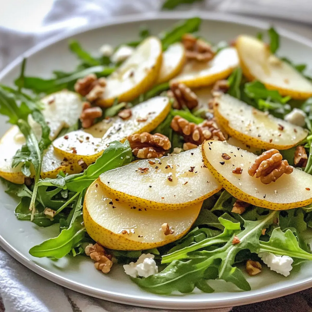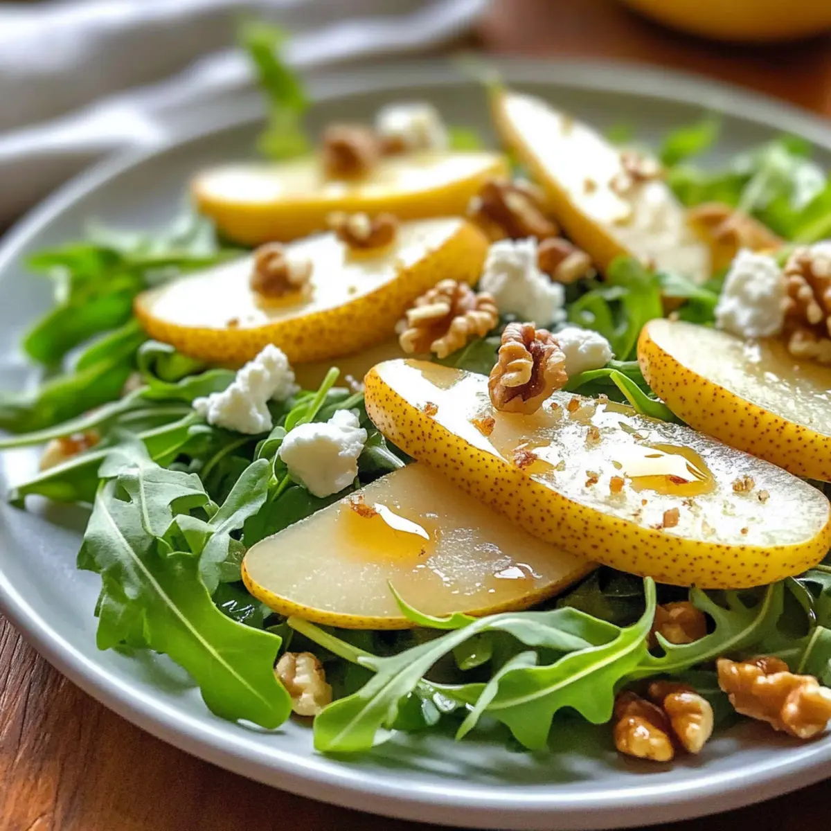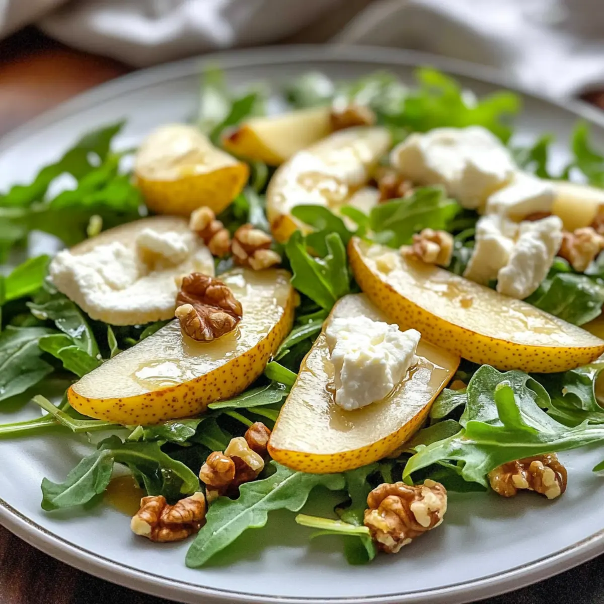 Hast du schon einmal den unverhofften Genuss eines leichten, knackigen Salats entdeckt, der sich perfekt für jede Gelegenheit eignet? Mein Birnen- und Rucola-Salat mit Honig-Vinaigrette ist genau das! Mit nur 10 Minuten Vorbereitungszeit und ohne Kochen zauberst du eine gesunde und erfrischende Mahlzeit, die nicht nur den Gaumen erfreut, sondern auch farbenfroh auf dem Teller präsentiert wird. Die süßen Bartlett-Birken, die cremige Textur des Ziegenkäses und der aromatische Biss des Rucola schaffen zusammen ein harmonisches Geschmackserlebnis, das Eltern und Partygäste gleichermaßen begeistert. Und das Beste? Dieser Salat ist glutenfrei und perfekt für einen schnellen Lunch oder als begeisternder Beilagensalat. Bist du bereit, diese köstliche Kombination auszuprobieren? Warum ist dieser Salat ein Muss? Frische Aromen: Dieser Birnen- und Rucola-Salat vereint knackige Birnen mit dem würzigen Rucola, was für ein unverwechselbares Geschmackserlebnis sorgt. Schnelle Zubereitung: Mit nur 10 Minuten Vorbereitungszeit ist dieser Salat ideal für hektische Tage. Perfekt als schneller Snack oder leichtes Mittagessen! Gesunde Wahl: Dieser Salat ist nicht nur glutenfrei, sondern auch kalorienarm mit nur 203 Kalorien pro Portion. Eine nahrhafte Option für gesundheitsbewusste Genießer! Vielseitige Zutaten: Du kannst ihn leicht abwandeln, indem du Nüsse oder Käse nach deinem Geschmack austauschst, z.B. Eier Benedict Auflauf als proteinreiche Ergänzung. Beeindruckt deine Gäste: Die farbenfrohe Präsentation wird deine Freunde und Familie begeistern und macht ihn zum perfekten Gericht für jede Gelegenheit! Birnen- und Rucola-Salat Zutaten Für den Salat Rucola – die Basis des Salats, bietet einen pfeffrigen Geschmack und hohe Nährstoffdichte. Alternativ können Babyspinat oder gemischte Blattsalate verwendet werden. Bartlett-Birnen – sorgen für natürliche Süße und saftige Textur. Andere süße Birnen oder Äpfel können ebenfalls verwendet werden. Ziegenkäse – fügt Cremigkeit und einen leicht säuerlichen Geschmack hinzu. Für eine andere Geschmackskombination kannst du Feta oder Blauschimmelkäse verwenden. Walnüsse – bringen einen knusprigen Biss und nussigen Geschmack. Pecannüsse, Mandeln oder Cashews sind ebenfalls gute Alternativen. Frischer Thymian – verleiht erdige, aromatische Frische. Oregano oder Basilikum können ebenfalls in Betracht gezogen werden. Für die Vinaigrette Olivenöl – die Grundlage der Vinaigrette, sorgt für eine reichhaltige Textur; verwende hochwertiges, extra natives Olivenöl für den besten Geschmack. Apfelessig – fügt eine spritzige Note hinzu, um die Süße auszugleichen; Balsamico-Essig kann für eine süßere Note verwendet werden. Frischer Zitronensaft – intensiviert die Aromen des Salats; Limettensaft ist eine erfrischende Alternative. Honig – bringt natürliche Süße und hilft, die Vinaigrette zu emulgieren; Ahornsirup ist eine vegane Option. Schalotten – bieten einen milden Zwiebelgeschmack für mehr Tiefe in der Vinaigrette; für Alternativen können auch rote Zwiebeln oder Frühlingszwiebeln verwendet werden. Knoblauch – sorgt für herzhaften Geschmack; in einer Notlage kann auch Knoblauchpulver verwendet werden. Salz und schwarzer Pfeffer – unverzichtbar, um alle Geschmäcker zu heben. Taste und passe die Menge nach deinen Vorlieben an. Schritt-für-Schritt-Anleitung für Birnen- und Rucola-Salat mit Honig-Vinaigrette Step 1: Vinaigrette zubereiten In einem kleinen Glas oder einer Schüssel die Vinaigrette zubereiten, indem du 4 Esslöffel Olivenöl, 2 Esslöffel Apfelessig, 1 Esslöffel frischen Zitronensaft und 1 Esslöffel Honig miteinander vermischst. Füge 1 fein gehackte Schalotte, 1 zerdrückte Knoblauchzehe, Salz und schwarzen Pfeffer nach Geschmack hinzu. Mit einem Schneebesen kräftig verrühren, bis alles gut emulgiert und cremig ist. Step 2: Salatzutaten vorbereiten In einer großen Schüssel 150 g Rucola, 2 in dünne Scheiben geschnittene Bartlett-Birnen, 100 g zerbröckelten Ziegenkäse und 50 g grob gehackte Walnüsse sorgfältig vermengen. Am besten verwendest du frische Zutaten, um die knackige Textur und die Aromen des Birnen- und Rucola-Salats mit Honig-Vinaigrette zu betonen. Step 3: Salat anrichten Die zubereitete Vinaigrette gleichmäßig über den Salat gießen. Vorsichtig mit zwei großen Löffeln oder Zangen mischen, bis alles gut mit der Vinaigrette überzogen ist. Achte darauf, den Salat sanft zu bearbeiten, um die Birnen und den Ziegenkäse nicht zu zerdrücken. Step 4: Abgeschmecken und servieren Nach dem Mischen den Salat probieren und bei Bedarf mit zusätzlichem Salz und Pfeffer nach Geschmack würzen. Der Birnen- und Rucola-Salat mit Honig-Vinaigrette kann nun sofort serviert werden. Die frischen Aromen und die knusprige Textur machen ihn zu einem echten Genuss! Tipps für den besten Birnen- und Rucola-Salat Frische Zutaten: Achte darauf, dass alle Zutaten frisch sind, insbesondere der Rucola und die Birnen, um den besten Geschmack und die beste Textur zu garantieren. Säure ausbalancieren: Wenn der Salat zu süß schmeckt, füge einen Spritzer mehr Zitronensaft oder etwas mehr Apfelessig hinzu, um die Aromen auszugleichen. Vinaigrette aufbewahren: Du kannst die Vinaigrette bis zu einer Woche im Voraus zubereiten. Bewahre sie in einem verschlossenen Behälter im Kühlschrank auf und schüttle sie vor Gebrauch gut durch. Birnen richtig vorbereiten: Um Verfärbungen zu vermeiden, beträufle die geschnittenen Birnen sofort mit etwas Zitronensaft. Dies sorgt dafür, dass sie frisch und appetitlich bleiben. Abwechslung für Beilagen: Experimentiere mit den Zutaten; füge geröstete Kichererbsen oder gegrilltes Hähnchen hinzu, um dem Salat mehr Protein und Substanz zu verleihen. Was passt zum Birnen- und Rucola-Salat mit Honig-Vinaigrette? Dieser bunte Salad ist nicht nur eine Augenweide, sondern auch ein geschmackvoller Begleiter zu zahlreichen Gerichten, die ein komplettes Menü a