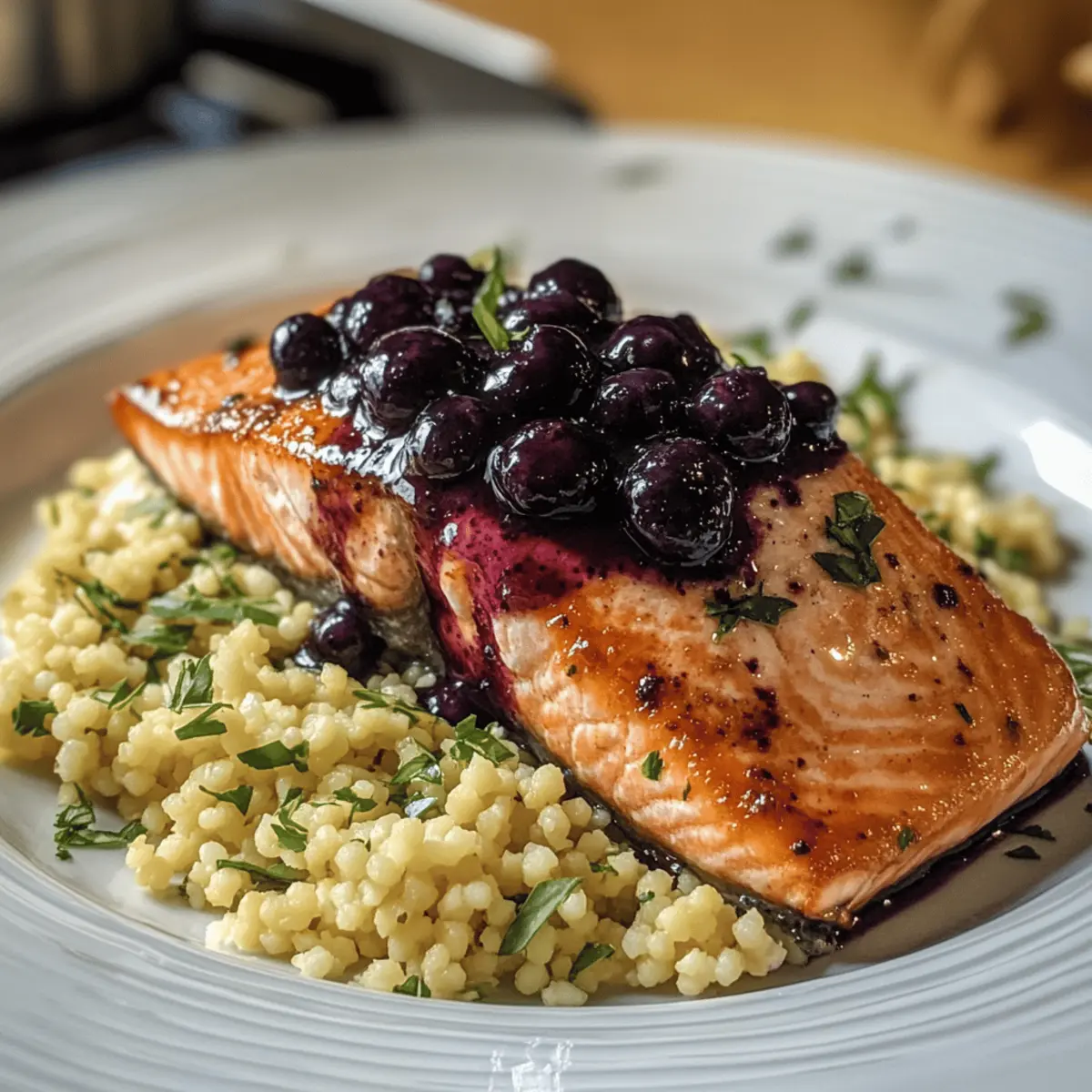 Blaubeeren-Lachs mit Zitronen-Couscous für den Abend