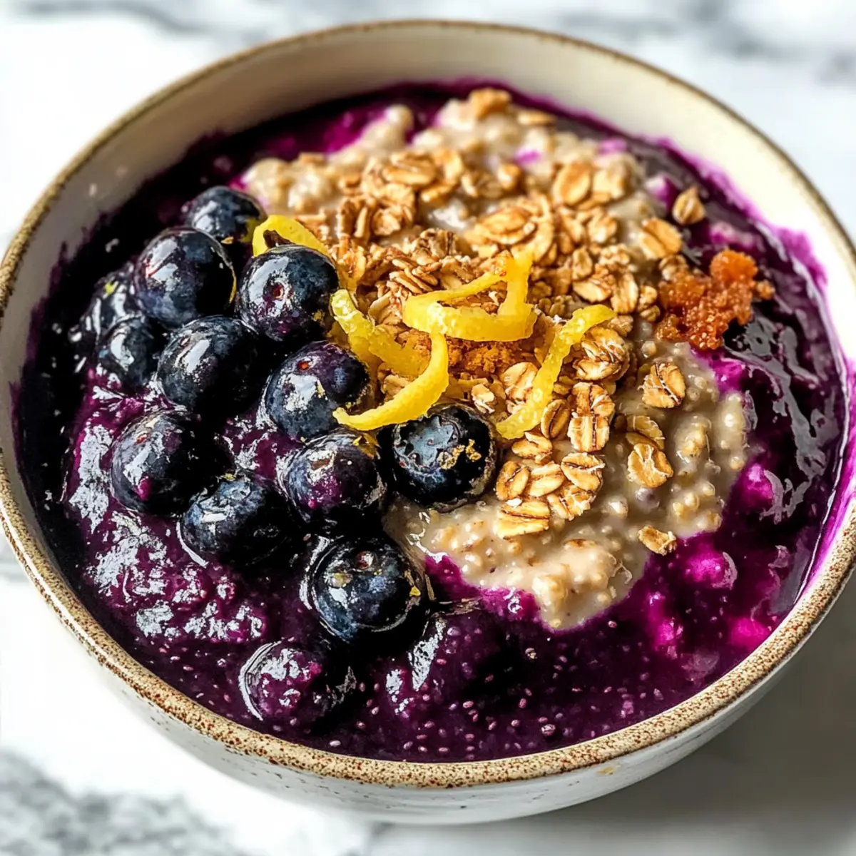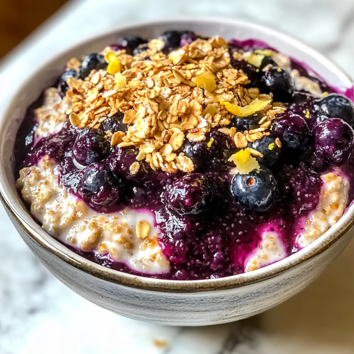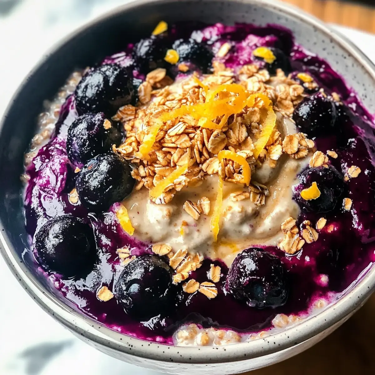 Es ist das erste Licht des Morgens, und der köstliche Duft von frischen Heidelbeeren erfüllt die Küche. Wenn ich an Blaubeerkuchen denke, kommt mir sofort die Erinnerung an sonnige Nachmittage und das süße Vergnügen, das ich mit meiner Familie geteilt habe. Jetzt bringe ich diese nostalgischen Aromen in die moderne Frühstücksküche mit meinen Blaubeerkuchen Übernacht Haferflocken. Diese pflanzenbasierte, glutenfreie und raffinierte zuckerfreie Variante ist nicht nur budgetfreundlich, sondern auch perfekt für hektische Morgen. In nur wenigen Minuten zubereitet, vereint sie die Cremigkeit von Hafer mit einer himmlischen Heidelbeer-Chia-Compote und sorgt dafür, dass jeder Bissen nicht nur nährt, sondern auch glücklich macht. Und wer könnte da widerstehen? Seid ihr bereit, eure Frühstücksroutine auf ein neues Level zu heben? Warum werden Sie dieses Rezept lieben? Einzigartige Kombination: Diese Blaubeerkuchen Übernacht Haferflocken vereinen den köstlichen Geschmack eines klassischen Desserts mit den Vorteilen eines gesunden Frühstücks. Schnell & einfach: Die Zubereitung ist schnell und benötigt nur grundlegende Kochfähigkeiten – perfekt für beschäftigte Morgen! Vielseitigkeit: Variieren Sie mit anderen Beeren oder toppings, um Ihr persönliches Lieblingsfrühstück zu kreieren. Gesunde Zutaten: Vollgepackt mit Ballaststoffen und Antioxidantien, ist es eine nahrhafte Wahl für jeden. Budgetfreundlich: Diese Rezept ist nicht nur lecker, sondern schont auch das Portemonnaie – ideal für jeden Haushaltsplan. Köstlicher Genuss: Jeder Bissen verspricht eine cremige Textur verbunden mit dem fruchtigen Geschmack der Heidelbeeren, der die Sinne verzaubert. Blaubeerkuchen Übernacht Haferflocken Zutaten Hinweis: Hier sind die Zutaten, die Sie benötigen, um Ihre frisch-morgendliche Portion Blaubeerkuchen Übernacht Haferflocken zuzubereiten. Für die Haferflocken • Alte Haferflocken – Sie bilden die Basis des Rezepts und sorgen für Struktur sowie Ballaststoffe. Ersetzen Sie sie durch große Flocken, wenn gewünscht. • Mandeln-/Kokos-/Cashew-Milch – Diese pflanzliche Milch sorgt für eine cremige Konsistenz beim Einweichen der Haferflocken. Jede pflanzliche Milch ist passend. • Kokosjoghurt – Fügt eine cremige Textur und einen Hauch von Säure hinzu. Ersetzen Sie ihn durch einen anderen milchfreien Joghurt Ihrer Wahl. • Frische Heidelbeeren – Sie sorgen für Geschmack und natürliche Süße. Gefrorene Heidelbeeren können verwendet werden, wenn frische nicht verfügbar sind. Für die Heidelbeer-Chia-Compote • Chia-Samen – Diese sorgen für die Dicke der Heidelbeer-Chia-Compote und liefern Omega-3-Fettsäuren. Es gibt keinen direkten Ersatz, aber Leinsamen können zur Not verwendet werden. • Reiner Ahornsirup/roher Honig – Diese natürlichen Süßmacher können nach Geschmack angepasst werden. Sehr reife, pürierte Banane kann ebenfalls als natürliche Süße verwendet werden. • Zitronenextrakt – Dieser verstärkt die Aromen. Frischer Zitronensaft kann als Ersatz verwendet werden, wenn der Extrakt nicht verfügbar ist. • Vanilleextrakt – Fügt Tiefe zum Geschmack hinzu. Verwenden Sie reinen Vanilleextrakt für die besten Ergebnisse. Optionales Topping • Granola – Dieses gibt einen schönen Crunch. Verwenden Sie Ihr Lieblingsgranola; knusprige Cluster sind am besten geeignet. • Zitronenschale – Für zusätzlichen Pep, optional aber empfohlen. Frische Zeste verbessert die Frische und hellt den Geschmack auf. Schritt-für-Schritt-Anleitung für Blaubeerkuchen Übernacht Haferflocken Step 1: Haferflocken vorbereiten In einer großen Schüssel die alten Haferflocken mit der gewünschten Menge pflanzlicher Milch, Kokosjoghurt und Chia-Samen gut vermengen. Rühren Sie so lange, bis alles gleichmäßig verteilt ist und eine cremige Mischung entsteht. Dies sollte ca. 3–5 Minuten dauern. Decken Sie die Schüssel anschließend ab und lassen Sie sie für mindestens 6 Stunden im Kühlschrank stehen, idealerweise über Nacht, damit die Haferflocken die Flüssigkeit gut aufnehmen. Step 2: Heidelbeer-Chia-Compote zubereiten In einem kleinen Topf die frischen Heidelbeeren, Chia-Samen, Ahornsirup, Zitronensaft und Vanilleextrakt gut vermengen. Erhitzen Sie die Mischung bei mittlerer Hitze und bringen Sie sie langsam zum Köcheln. Lassen Sie die Mischung 5–10 Minuten sanft köcheln, bis die Heidelbeeren aufplatzen und die Compote anfängt, dickflüssig zu werden. Gelegentlich umrühren, um sicherzustellen, dass nichts am Boden anbrennt. Step 3: Servieren Wenn die Blaubeeren in der Compote zerplatzt sind und eine schöne Konsistenz haben, nehmen Sie sie vom Herd und lassen Sie sie kurz abkühlen. Nehmen Sie dann Ihre vorbereiteten Blaubeerkuchen Übernacht Haferflocken aus dem Kühlschrank. Schichten Sie die Haferflocken gleichmäßig in Schalen und geben Sie eine großzügige Portion der Heidelbeer-Chia-Compote darüber. Step 4: Toppings hinzufügen Für den letzten Schliff streuen Sie nach Belieben Granola über die Schalen für eine knusprige Textur und fügen Sie einen Hauch von frischer Zitronen- oder Limettenschale hinzu, um die Aromen zu verfeinern. Servieren Sie die Blaubeerkuchen Übernacht Haferflocken sofort oder bewahren Sie sie in einem luftdichten Behälter im Kühlschrank auf, um sie innerhalb von drei Tagen zu genießen. Lagerungstipps für Blaubeerkuchen Übernacht Haferflocken Kühlschrank: Bewahren Sie die Blaubeerkuchen Übernacht Haferflocken in einem luftdichten Behälter im Kühlschrank auf, wo sie bis zu 3 Tage frisch bleiben. Einfrieren: Für längere Lagerung können Sie die Haferflocken portionsweise in einem gefrierfesten Behälter einfrieren. Vor dem Verzehr über Nacht im Kühlschrank auftauen lassen. Wiedererwärmen: Wenn Sie die gefrorenen Portionen aufwärmen möchten, nutzen Sie die Mikrowelle. Stellen Sie sicher, dass Sie einen Schuss pflanzliche Milch hinzufügen, um die Cremigkeit zu erhalten. Vorbereitung: Die H