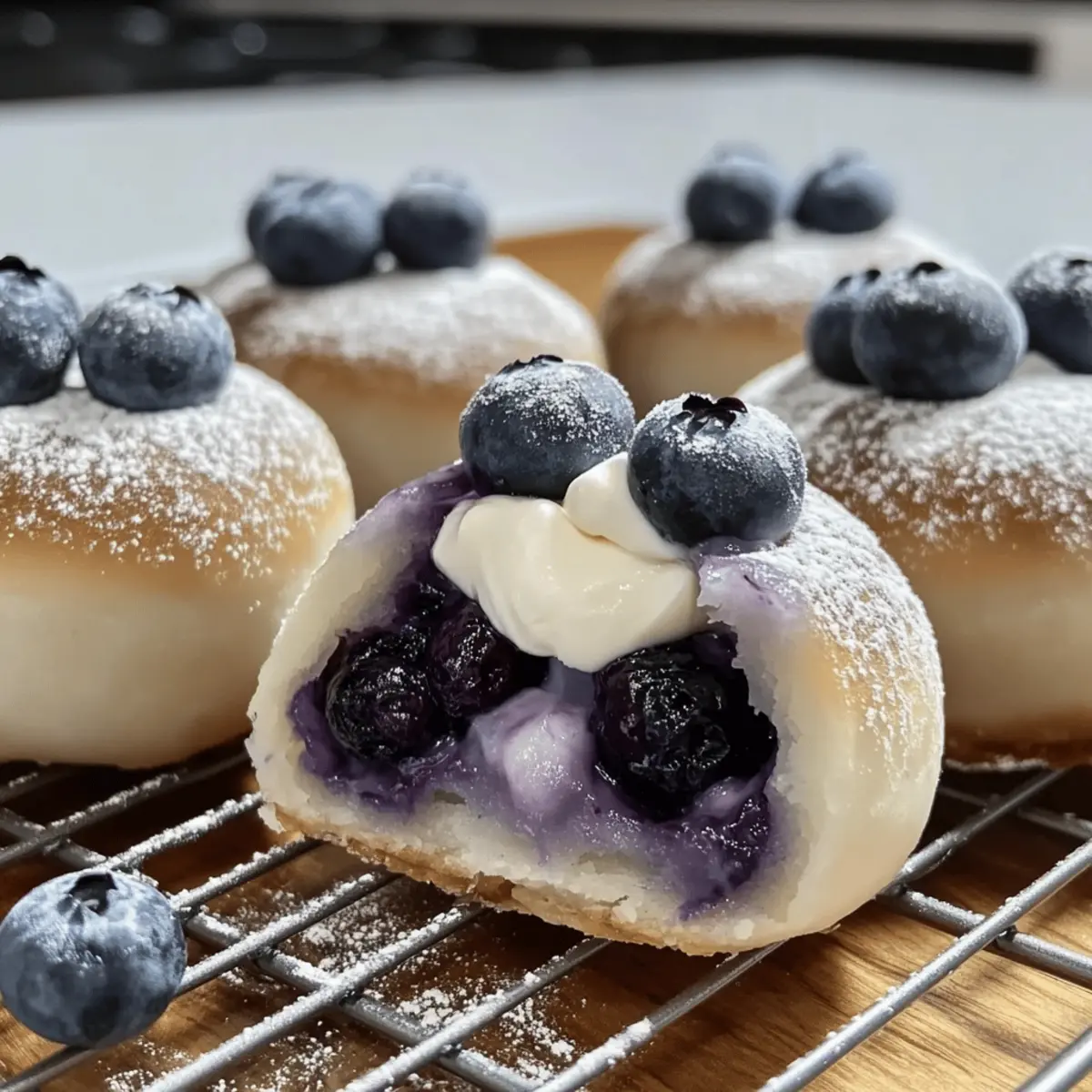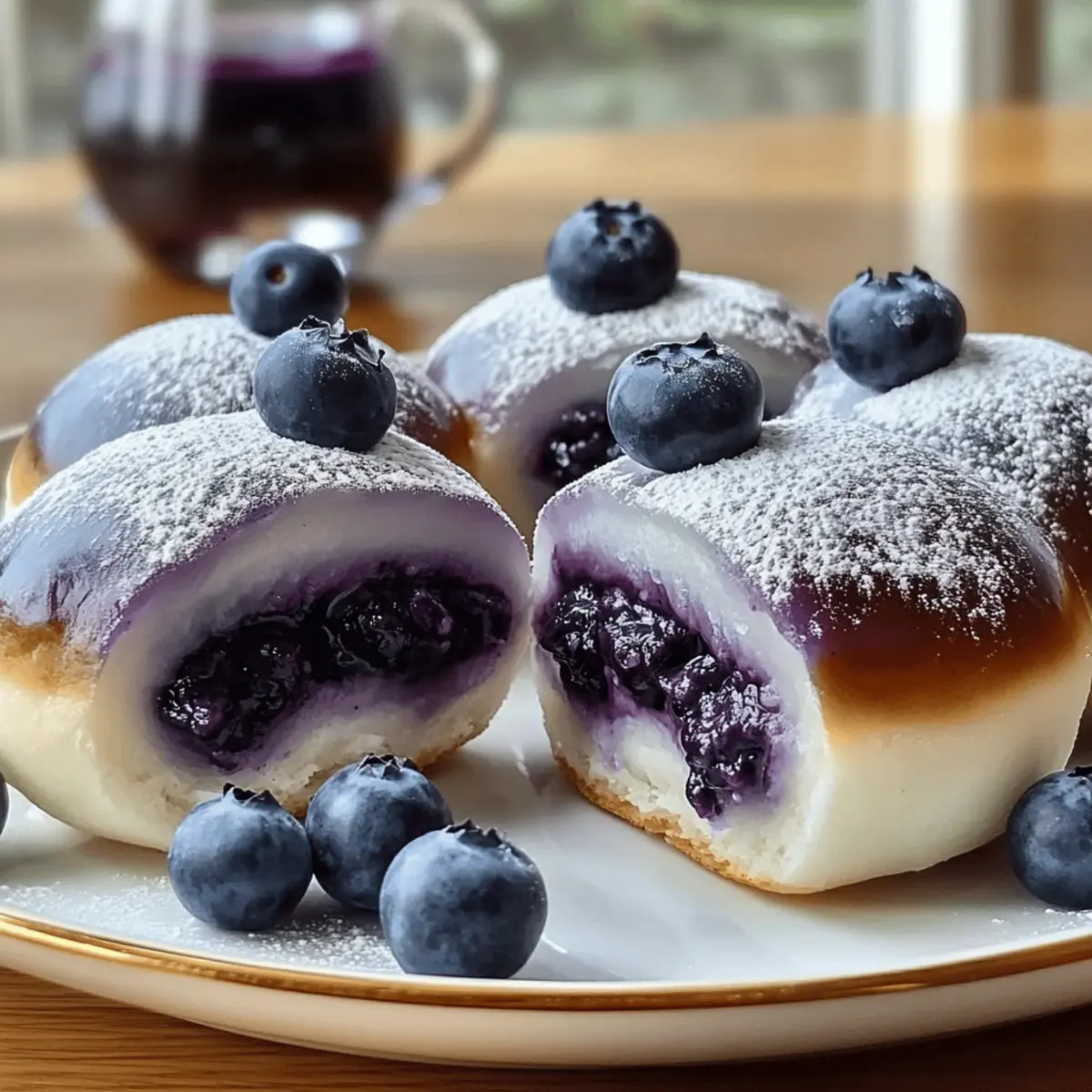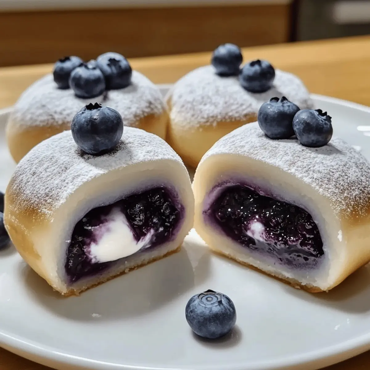 Mit jedem Bissen dieser weichen Blueberry Cream Mochi Buns fühle ich mich, als würde ich in eine Wolke aus Glück und Fruchtigkeit eintauchen. Diese kleinen Köstlichkeiten vereinen die zarte, kaubare Textur des Mochis mit einer himmlischen Füllung aus cremigem Blaubeer-Frischkäse. Besonders reizvoll ist, dass dieses Dessert im Handumdrehen zubereitet werden kann, ohne Backofen – perfekt für all jene, die eine schnelle, glutenfreie Köstlichkeit suchen. Und das Beste: Sie sind nicht nur ein hitverdächtiger Publikumsmagnet für jede Feier, sondern auch eine wunderbare Möglichkeit, das Zusammensein zu genießen, ohne sich um strenge Diäten sorgen zu müssen. Neugierig, wie du diese leckere Kombination selbst zubereiten kannst? Warum sind diese Mochi Buns so besonders? Einzigartiger Genuss: Das zarte Mochi umschließt eine cremige Füllung, die einen herrlichen Kontrast zur kaubaren Textur bietet. Einfach und schnell: Ohne Backen sind die Buns im Handumdrehen zubereitet und daher perfekt für spontane Naschereien. Vielfältige Optionen: Experimentiere mit verschiedenen Früchten wie Erdbeeren oder Mangos für nie endende Geschmackskombinationen. Glutenfrei und vegetarisch: Dieses Rezept ist ideal für alle, die bestimmte diätetische Bedürfnisse haben, ohne auf Genuss zu verzichten. Und wenn du nach weiteren köstlichen Ideen suchst, schaue dir unser Rezept für Pistazien Schokoladenkekse Rezept oder Cremiges Haehnchen Reis an! Zutaten für die Blueberry Cream Mochi Buns Für den Teig: Mochiko oder Shiratamako-Mehl – sorgt für die Struktur und Kaubarkeit des Mochis und ist unerlässlich für die authentische Textur. Wasser – hydratisiert das Mehl, um eine teigähnliche Konsistenz zu schaffen. Zucker – fügt dem Teig Süße hinzu und verstärkt den Geschmack. Für die Füllung: Schlagsahne – sorgt für Cremigkeit in der Füllung; kann für eine leichtere Version reduziert werden. Blaubeer-Frischkäse – die Hauptfüllung, die Geschmack und eine reichhaltige, cremige Textur liefert. Für das Topping: Frische Blaubeeren – fügen für die Buns zusätzliche Frische und eine dekorative Note hinzu. Diese Zutaten für die Blueberry Cream Mochi Buns sind nicht nur einfach zu erhalten, sondern machen auch einen unverwechselbaren Genuss aus. Schritt-für-Schritt-Anleitung für die Blueberry Cream Mochi Buns Step 1: Teig vorbereiten In einer mikrowellengeeigneten Schüssel mochiko Mehl, Zucker und Wasser gut vermengen, bis eine dickflüssige, klebrige Masse entsteht. Dies sollte etwa 2 Minuten in Anspruch nehmen. Die Mischung ist bereit, wenn sie gleichmäßig und gut verbunden ist, ohne Klumpen. Achte darauf, dass alle Zutaten gut integriert sind, bevor du fortfährst. Step 2: Teig garen Gebe die Schüssel mit der Teigmischung für etwa 3 Minuten in die Mikrowelle. Überprüfe den Teig nach dieser Zeit; er sollte dick, klebrig und leicht transparent sein. Wenn der Teig noch zu flüssig erscheint, mikrowelliere ihn in 30-Sekunden-Intervallen weiter, bis die gewünschte Konsistenz erreicht ist. Lasse den Teig dann kurz abkühlen. Step 3: Füllung zubereiten In einer separaten Schüssel die Schlagsahne mit einem Handmixer steif schlagen, bis sie leichte Spitzen bildet. Anschließend den Blaubeer-Frischkäse hinzufügen und alles zu einer glatten, cremigen Füllung vermengen. Die Mischung sollte dick und gut gemischt sein, um die perfekte Basis für die Füllung der Buns zu bieten. Step 4: Buns zusammensetzen Streue etwas Speisestärke auf deine Hände, um ein Ankleben zu verhindern. Nimm eine Portion des abgekühlten Teigs und forme sie zu einer kleinen Scheibe. Platziere einen Löffel der Blaubeer-Füllung in der Mitte und umschließe sie dann sorgfältig mit dem Teig, um einen bunten Bun zu formen. Achte darauf, dass die Füllung gut versiegelt ist. Step 5: Buns kühlen Lege die fertig gestellten Blueberry Cream Mochi Buns auf eine mit Backpapier ausgelegte Platte und stelle sie für mindestens 15 Minuten in den Kühlschrank. Dies hilft, die Struktur zu festigen und die Buns angenehm kühl zu servieren. Überprüfe, ob sie fest und bissfest sind, bevor du sie servierst. Aufbewahrung und Einfrieren der Blueberry Cream Mochi Buns Kühlschrank: Bewahre die übrig gebliebenen Mochi Buns in einem luftdichten Behälter im Kühlschrank für bis zu 2 Tage auf, um die Frische zu erhalten. Frierfach: Du kannst die Buns auch einfrieren. Lege sie auf ein Backblech zum Vorkühlen, bevor du sie in einem luftdichten Behälter zusammentust; sie bleiben bis zu 1 Monat genießbar. Auftauen: Lass die tiefgefrorenen Buns im Kühlschrank für einige Stunden auftauen, bevor du sie servierst, um die gewünschte Konsistenz zu erreichen. Wärmen: Ein Wiedererwärmen wird nicht empfohlen, da dies die zarte Textur der Mochi beeinträchtigen kann; am besten frisch oder gekühlt genießen! Variationen & Alternativen Gestalte diese köstlichen Mochi Buns ganz nach deinem Geschmack. Lass deiner Kreativität freien Lauf und entdecke neue Kombinationen! Fruchtige Alternative: Ersetze Blaubeeren durch Erdbeeren oder Mangos für erfrischende Variationen. Jede Frucht bringt ihren eigenen Charakter ins Spiel. Leichtere Füllung: Verwende griechischen Joghurt anstelle von Schlagsahne für eine leichte, proteinreiche Option. So wird der Genuss etwas gesünder! Vegan: Tausche die Schlagsahne gegen Pflanzencreme und den Imitatkäse für einen veganen Genuss. Das sorgt für ein neues Geschmackserlebnis ohne tierische Produkte. Zusätzliche Süße: Füge etwas Honig oder Agavendicksaft zur Füllung hinzu, um eine extra süße Note zu erzeugen. Ein süßes Geheimnis, das begeistert! Schokoladige Note: Integriere Kakaopulver in die Füllung für eine schokoladige Variante. Diese Kombination ist ein wahrer Genuss für Schokoladenliebhaber. Nüsse: Experimentiere mit gehackten Mandeln oder Walnüssen in der Füllung für zusätzliche Crunch-Textur. Der Biss macht das Erlebnis noch spannender. Gewürze: Versuch es mit einer Pr