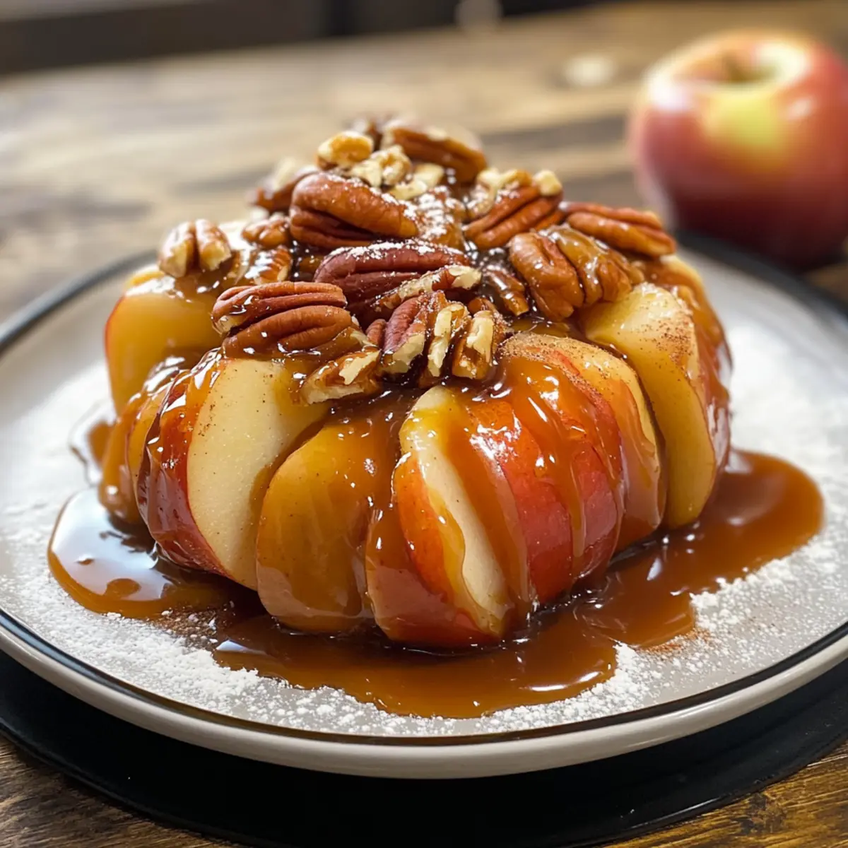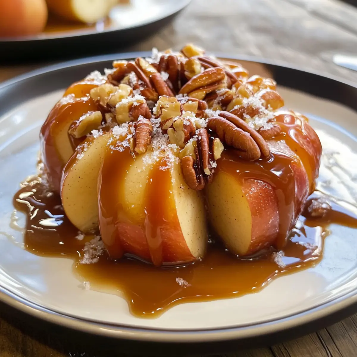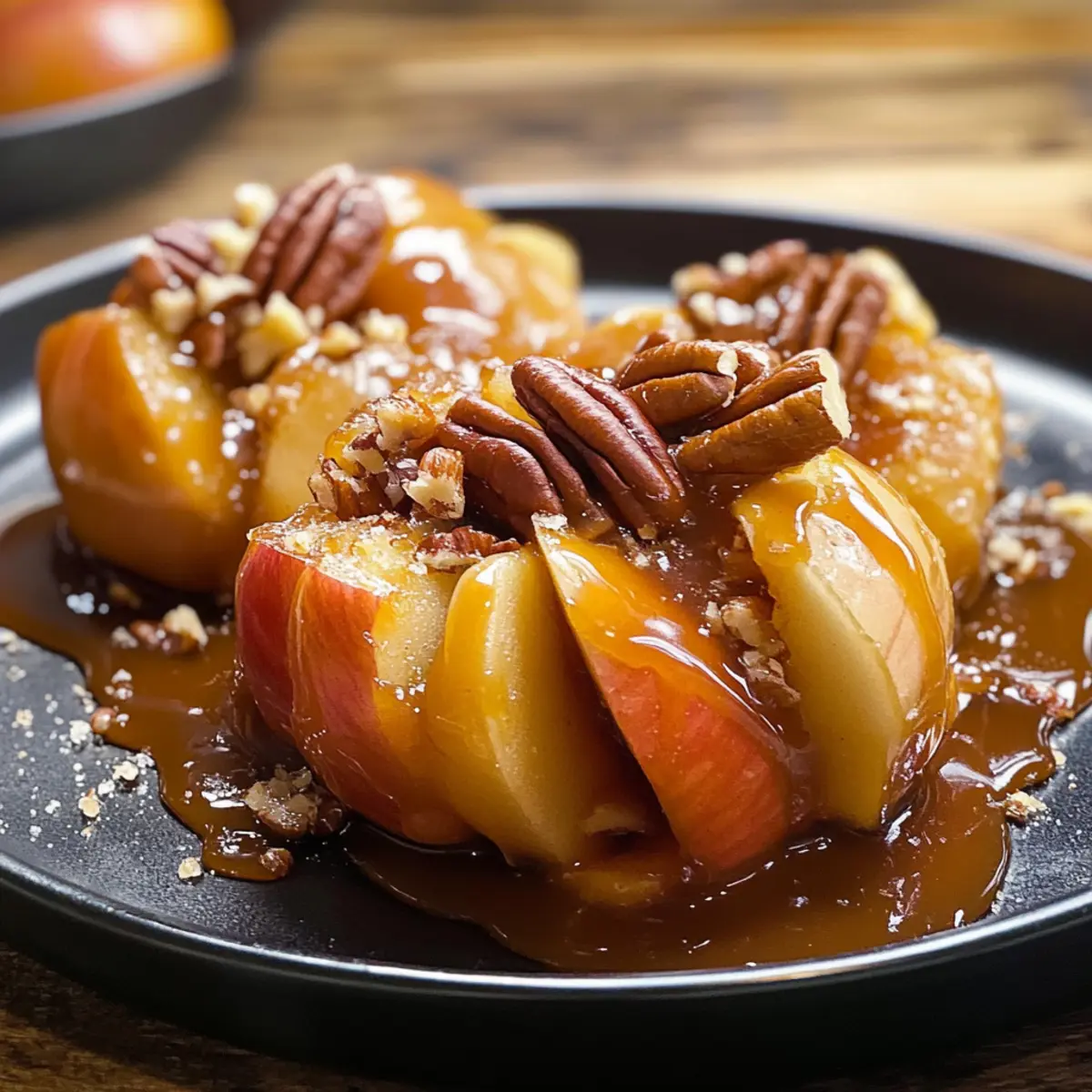 Erleben Sie Blühende Gegrillte Äpfel, ein köstliches Dessert mit süßen Äpfeln, knuspriger Kruste, Karamell und Pekannüssen.