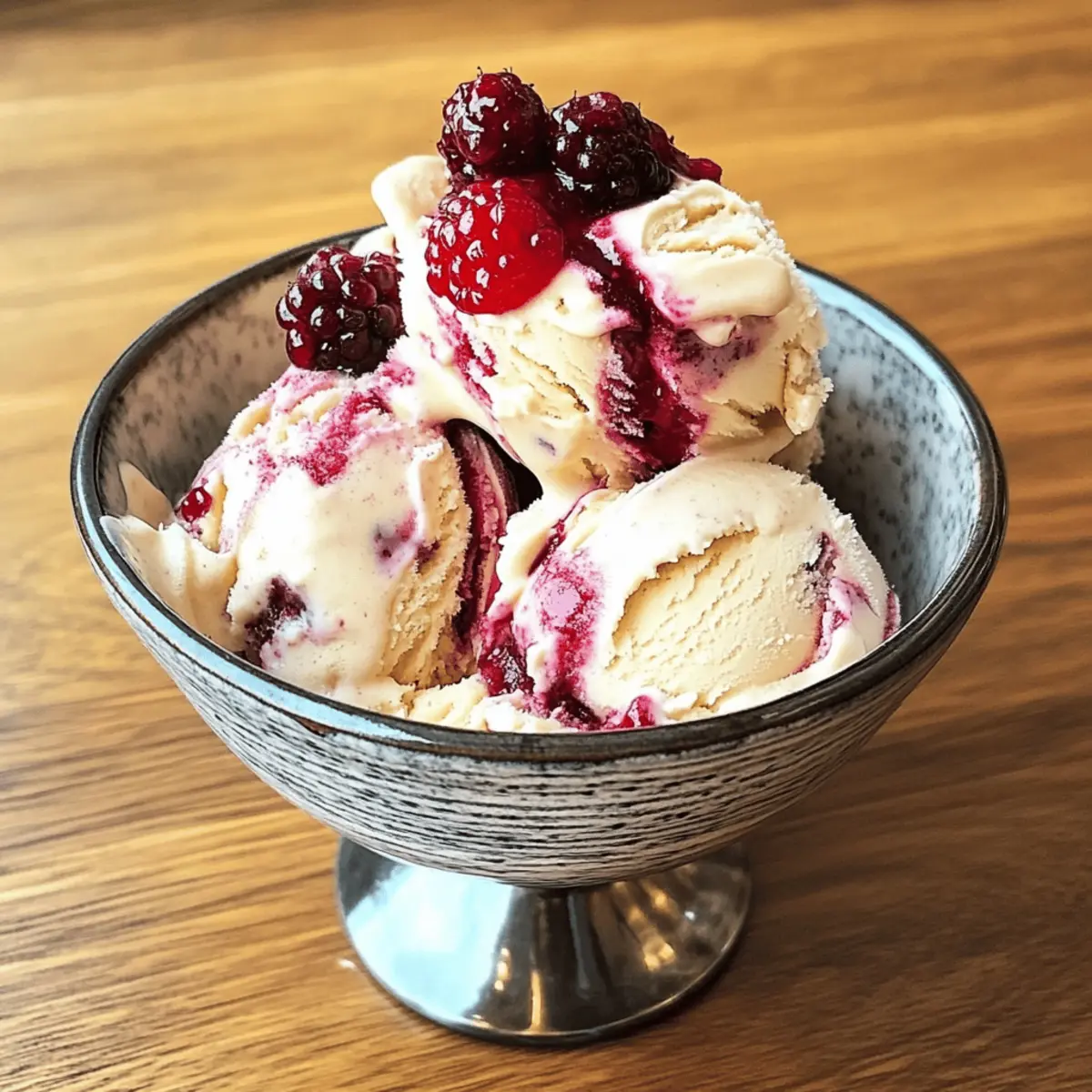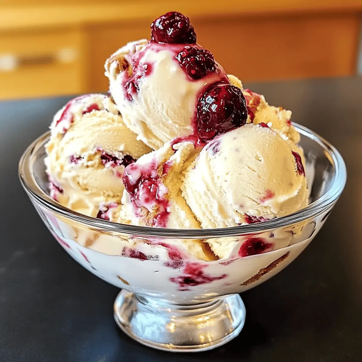 9. Hebe die Lingonbeermischung vorsichtig unter die fast gefrorene Eiscreme.
