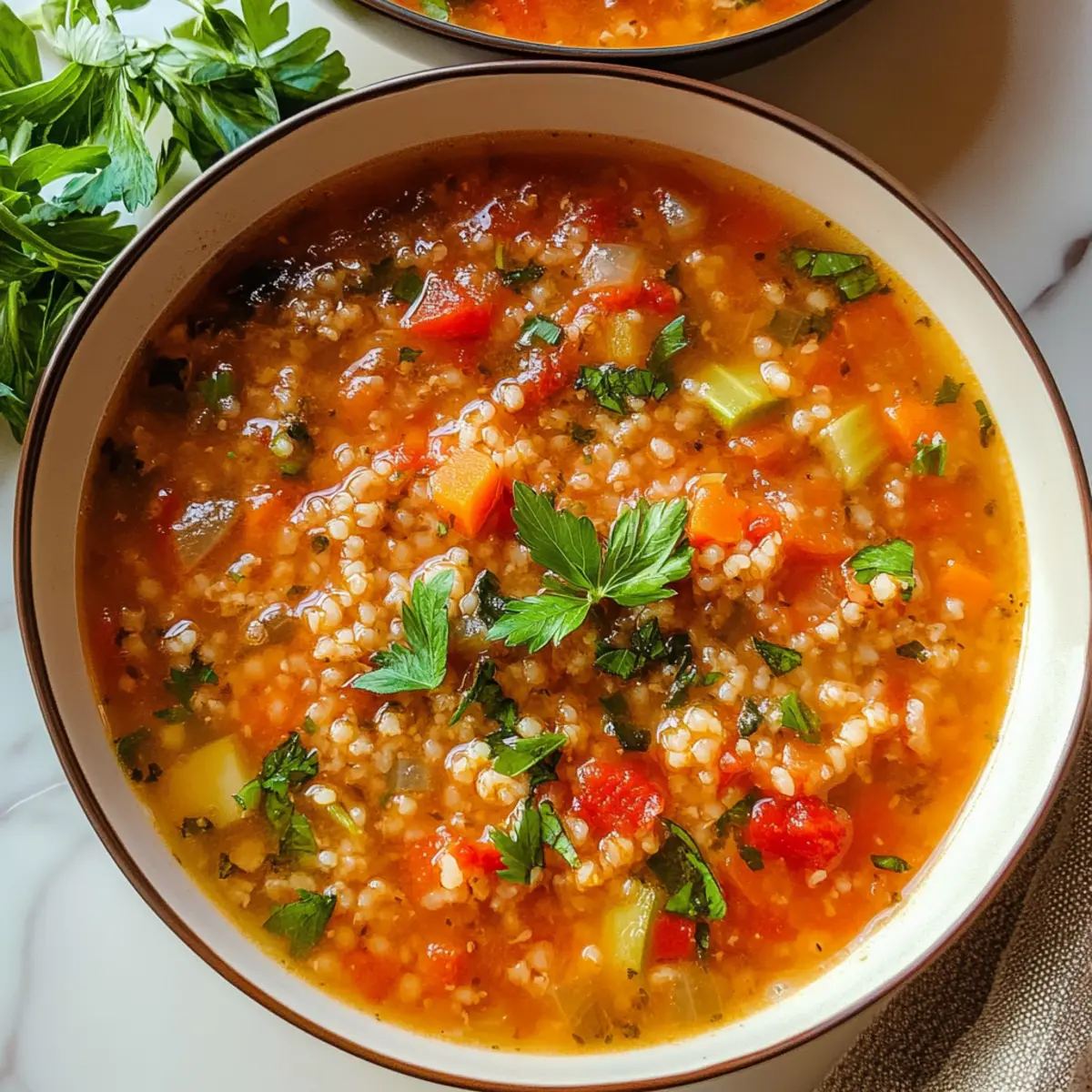 • Bulgur – Gibt der Suppe eine herzhaft Bissigkeit und sättigende Struktur; Quinoa ist eine glutenfreie Alternative.
