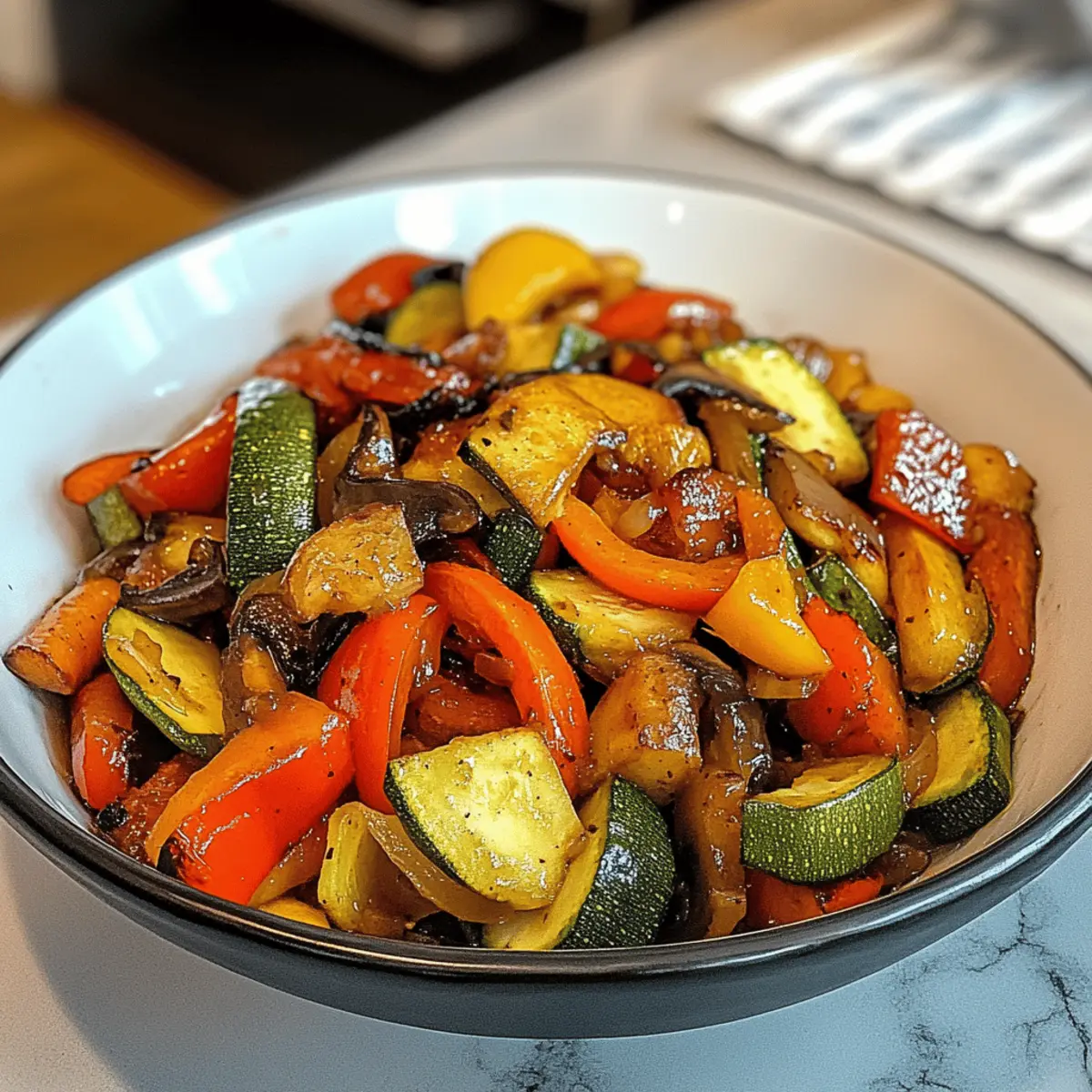 Mit dieser bunten Gemüsepfanne bringst du den vollen Geschmack der Saison auf deinen Tisch, ideal für schnelle Mittagessen.