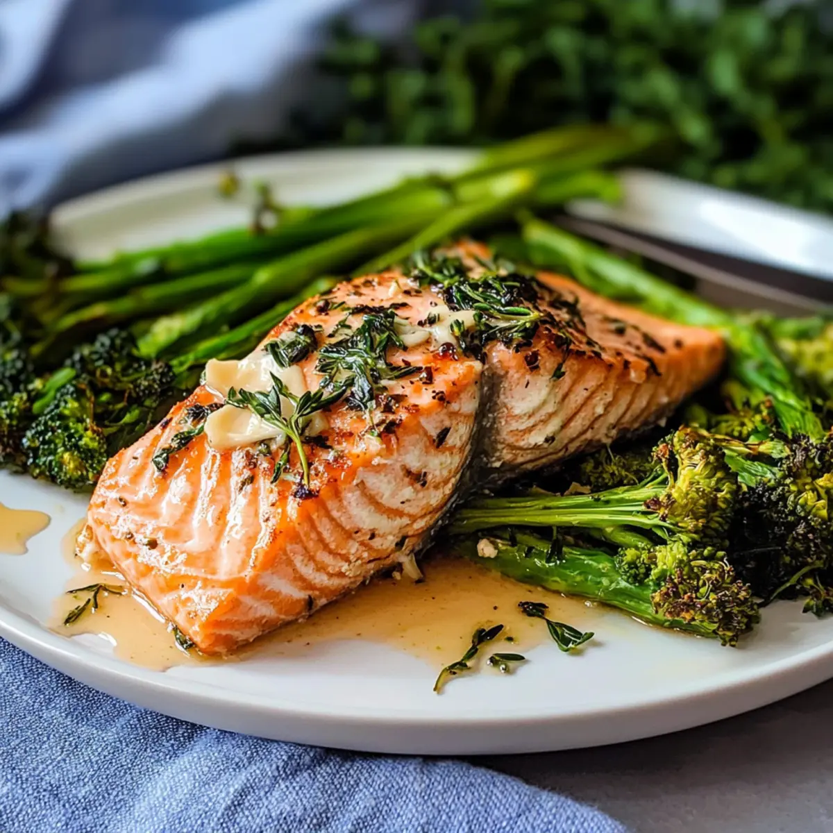 Diese Zutaten machen deinen buttrigen gebackenen Lachs mit jungen Brokkoli zu einem köstlichen und gesunden Stück. Lass dich von dem Geschmack verzaubern!