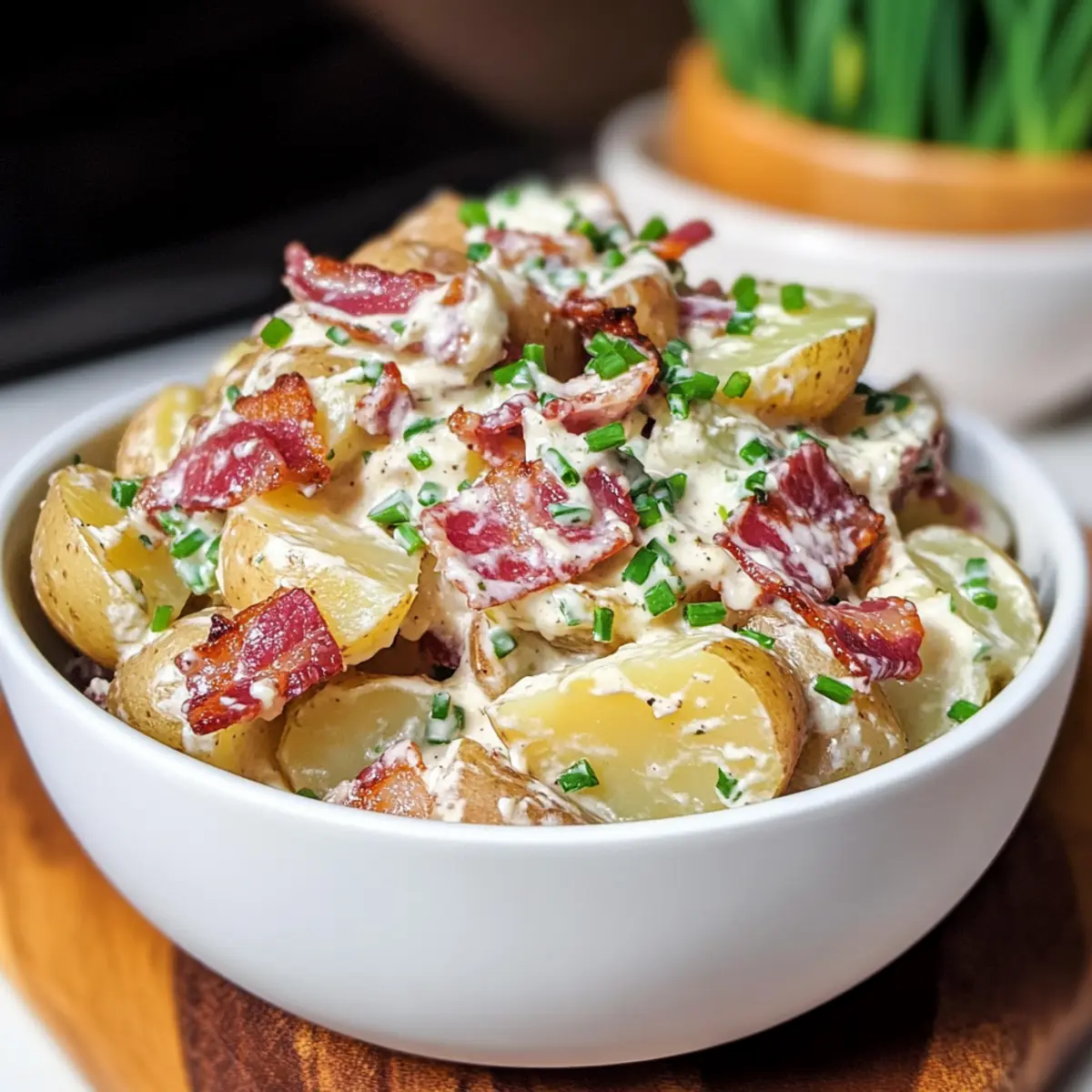 Präsentation: Mit frischen Chives als Garnitur wird dein Caesar Kartoffelsalat nicht nur lecker, sondern sieht auch beeindruckend aus!