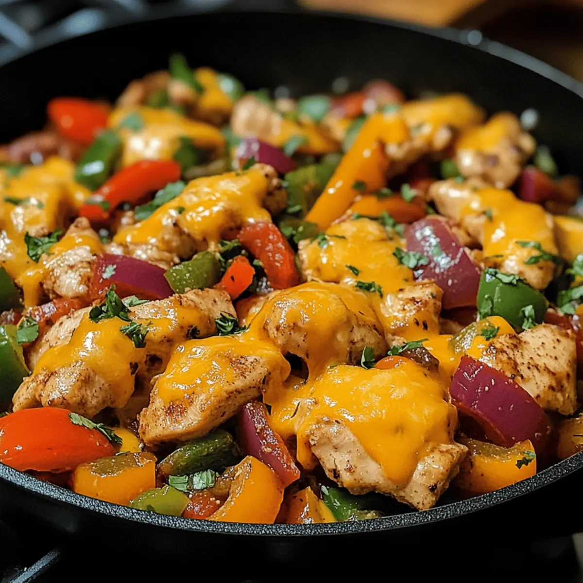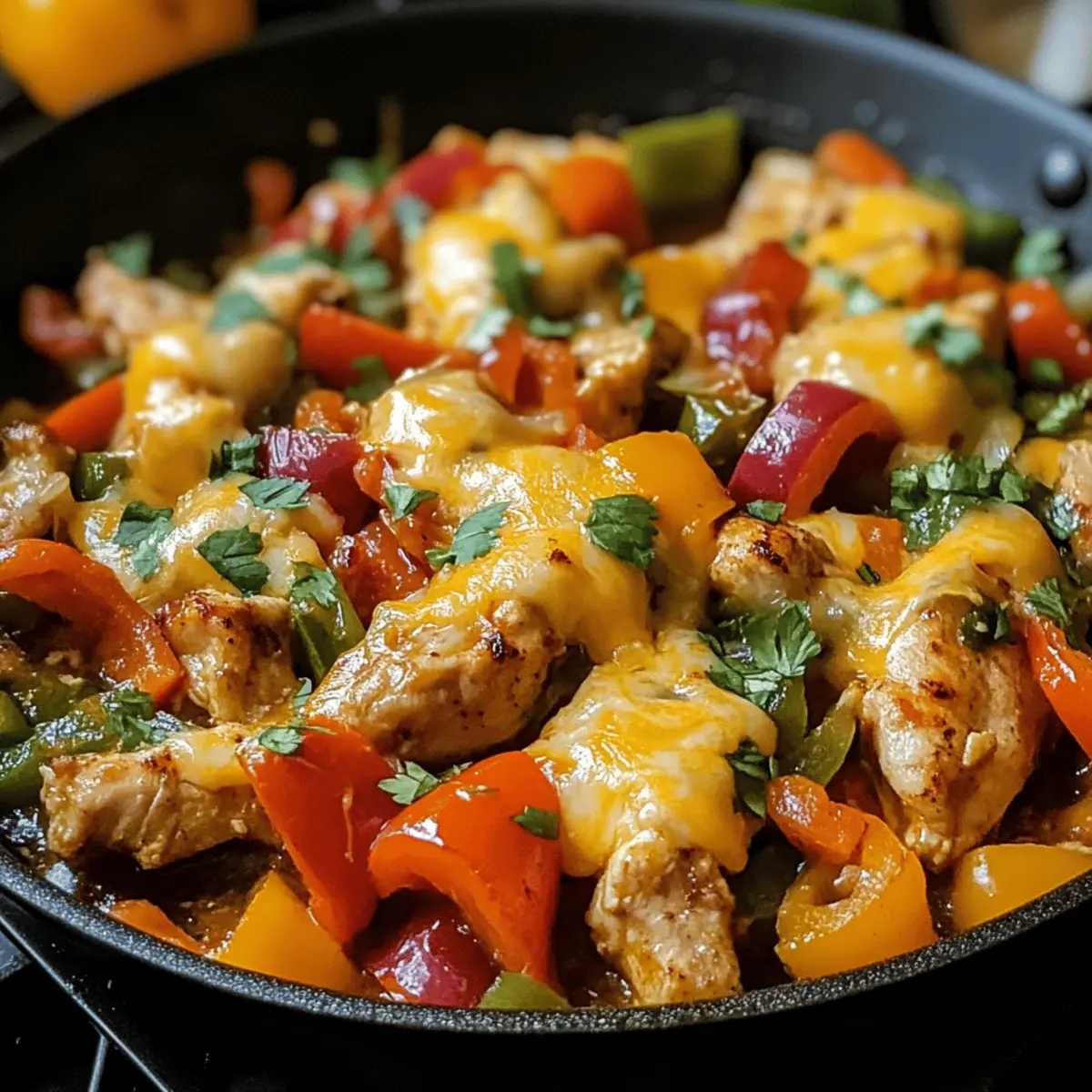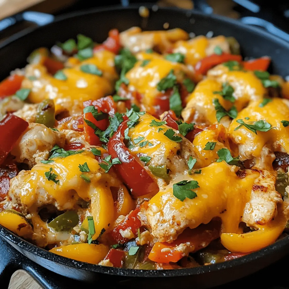 Hast du je einen schnellen, aber dennoch herzhaften Abendessen-Moment erlebt? Wenn du nach einem Rezept suchst, das all das und mehr bietet, dann ist meine Cheesy Baja Chicken & Bell Pepper Skillet genau das Richtige für dich! Dieses unwiderstehliche One-Pan-Gericht kombiniert zarte Hähnchenstücke mit bunten Paprika und schmelzendem Käse und braucht nur 35 Minuten, um auf den Tisch zu kommen. Es ist nicht nur ideal für hektische Wochentage, sondern lässt sich auch ganz nach deinem Geschmack anpassen – egal, ob du starke Aromen oder mehr Gemüse bevorzugst. Und das Beste daran? Es wird garantiert der ganzen Familie schmecken! Neugierig, wie du dieses köstliche Gericht zubereiten kannst? Lass uns starten! Warum wirst du dieses Rezept lieben? Einfachheit in Vollendung: Die Zubereitung ist schnell und unkompliziert – perfekt für Kochanfänger und Profis gleichermaßen. Herzhafter Geschmack: Die Kombination aus Gewürzen und geschmolzenem Käse sorgt für eine Geschmacksexplosion in jedem Bissen. Vielfältige Anpassungsmöglichkeiten: Du kannst verschiedene Gemüse, wie Zucchini oder Spinat, hinzufügen, um das Gericht noch gesünder zu gestalten. Familienfreundlich: Dieses Gericht ist ein Hit bei Groß und Klein und lässt sich einfach im Voraus zubereiten für stressfreie Abendessen. Zeitersparend: In nur 35 Minuten hast du ein vollwertiges Essen auf dem Tisch – ideal für hektische Wochentage! Wenn du nach weiteren schnellen Rezepten suchst, schau dir auch Avocado Toast Radieschen oder Cremiges Haehnchen Reis an! Cheesy Baja Chicken Zutaten Die Verwendung frischer Zutaten macht den Unterschied! Hähnchenbrust: – Hauptproteinquelle; verwende entbeinte, hautlose Hähnchen für eine unkomplizierte Zubereitung. Olivenöl: – Zum Anbraten; kann auch durch Gemüse- oder Rapsöl ersetzt werden. Chilipulver: – Fügt Wärme und Tiefe hinzu; individuell anpassbar je nach Gewürzvorliebe. Kreuzkümmel: – Verleiht warme, erdige Noten; keine Ersetzung notwendig, es sei denn, es ist nicht verfügbar. Paprika: – Verbessert Farbe und Geschmack; geräucherte Paprika kann für eine neue Geschmacksrichtung verwendet werden. Salz und Pfeffer: – Essentiell zum Würzen; nach Geschmack anpassen. Paprika (rot, gelb, grün): – Sorgt für Knackigkeit und Süße; jede Kombination von Paprika ist geeignet. Mais: – Fügt Süße und Textur hinzu; frischer oder gefrorener Mais ist beides in Ordnung. Gehackte Tomaten: – Bietet Feuchtigkeit und Säure; Dosentomaten sind eine praktische Option. Geriebener Cheddar-Käse: – Schmilzt schön über dem Gericht und sorgt für Cremigkeit; kann durch andere Schmelzkäse wie Monterey Jack ersetzt werden. Sauerrahm (optional): – Zum Servieren; kann durch griechischen Joghurt für eine leichtere Variante ersetzt werden. Frischer Koriander (optional): – Zum Garnieren und für Frische; kann auch durch Petersilie ersetzt werden, wenn gewünscht. Die Zutaten für das Cheesy Baja Chicken vereinen sich perfekt, um ein schnelles, herzhaftes Abendessen zu kreieren, das es wert ist, entdeckt zu werden! Schritt-für-Schritt-Anleitung für Cheesy Baja Chicken Pfanne Step 1: Hähnchen vorbereiten Schneide das Hähnchen in mundgerechte Stücke und würze es gründlich mit Chilipulver, Kreuzkümmel, Paprika, Salz und Pfeffer. Achte darauf, dass jedes Stück gleichmäßig mit den Gewürzen bedeckt ist. Dies trägt zur Geschmacksentfaltung bei und macht die Hähnchenstücke zur köstlichen Basis für deine Cheesy Baja Chicken Pfanne. Step 2: Pfanne erhitzen Erhitze in einer großen Pfanne bei mittlerer bis hoher Temperatur das Olivenöl. Gib ausreichend Öl in die Pfanne, sodass der Boden gut bedeckt ist. Das richtige Öl hilft, das Hähnchen gleichmäßig zu braten, somit entsteht eine köstliche Kruste. Nach etwa einer Minute solltest du eine leichte Hitzewelle spüren. Step 3: Hähnchen anbraten Füge die gewürzten Hähnchenstücke in die heiße Pfanne hinzu und brate sie für 5 bis 7 Minuten an. Rühre regelmäßig um, damit das Hähnchen gleichmäßig goldbraun wird und durchgegart ist. Wenn die Hähnchenstücke eine schöne bräunliche Farbe erhalten, bist du bereit für den nächsten Schritt. Step 4: Paprika hinzufügen Gib die in Scheiben geschnittenen Paprika hinzu und brate sie für etwa 5 Minuten mit dem Hähnchen. Die Paprika sollten leicht weich werden, aber ihre knackige Textur behalten. Diese Farbenpracht bringt den frischen Geschmack und die Vitalität in dein Cheesy Baja Chicken Gericht. Step 5: Mais und Tomaten integrieren Füge den Mais und die gehackten Tomaten in die Pfanne und lasse alles bei mittlerer Hitze für 3 bis 5 Minuten köcheln. Rühre gelegentlich um, damit die Aromen gut zusammenkommen. Die Tomaten sorgen für eine herrliche Feuchtigkeit und einen frischen Geschmack. Step 6: Käse einmischen Reduziere die Hitze auf niedrig und streue den geriebenen Cheddar-Käse gleichmäßig über die Mischung in der Pfanne. Decke die Pfanne mit einem Deckel ab und lasse den Käse schmelzen für etwa 2 bis 3 Minuten. Wenn der Käse eine glänzende, geschmolzene Konsistenz erreicht hat, ist dein kräftiges Gericht fast fertig. Step 7: Garnieren und servieren Nimm die Pfanne vom Herd und garniere das Gericht mit frischem Koriander. Wenn du möchtest, serviere es mit einem Klecks Sauerrahm für zusätzliche Cremigkeit. Dein Cheesy Baja Chicken Pfanne ist nun bereit, um serviert und genossen zu werden – ideal für ein schnelles und köstliches Abendessen! Hilfreiche Tricks für Cheesy Baja Chicken Perfekte Gewürzmischung: Stelle sicher, dass das Hähnchen gleichmäßig mit den Gewürzen überzogen ist, um einen intensiven Geschmack zu erzielen. Hitze richtig einstellen: Achte darauf, die Pfanne nicht zu heiß werden zu lassen; dies könnte dazu führen, dass das Hähnchen außen anbrennt, während es innen roh bleibt. Käse schmelzen lassen: Decke die Pfanne während des Schmelzvorgangs ab, um sicherzustellen, dass der Käse gleichmäßig geschm