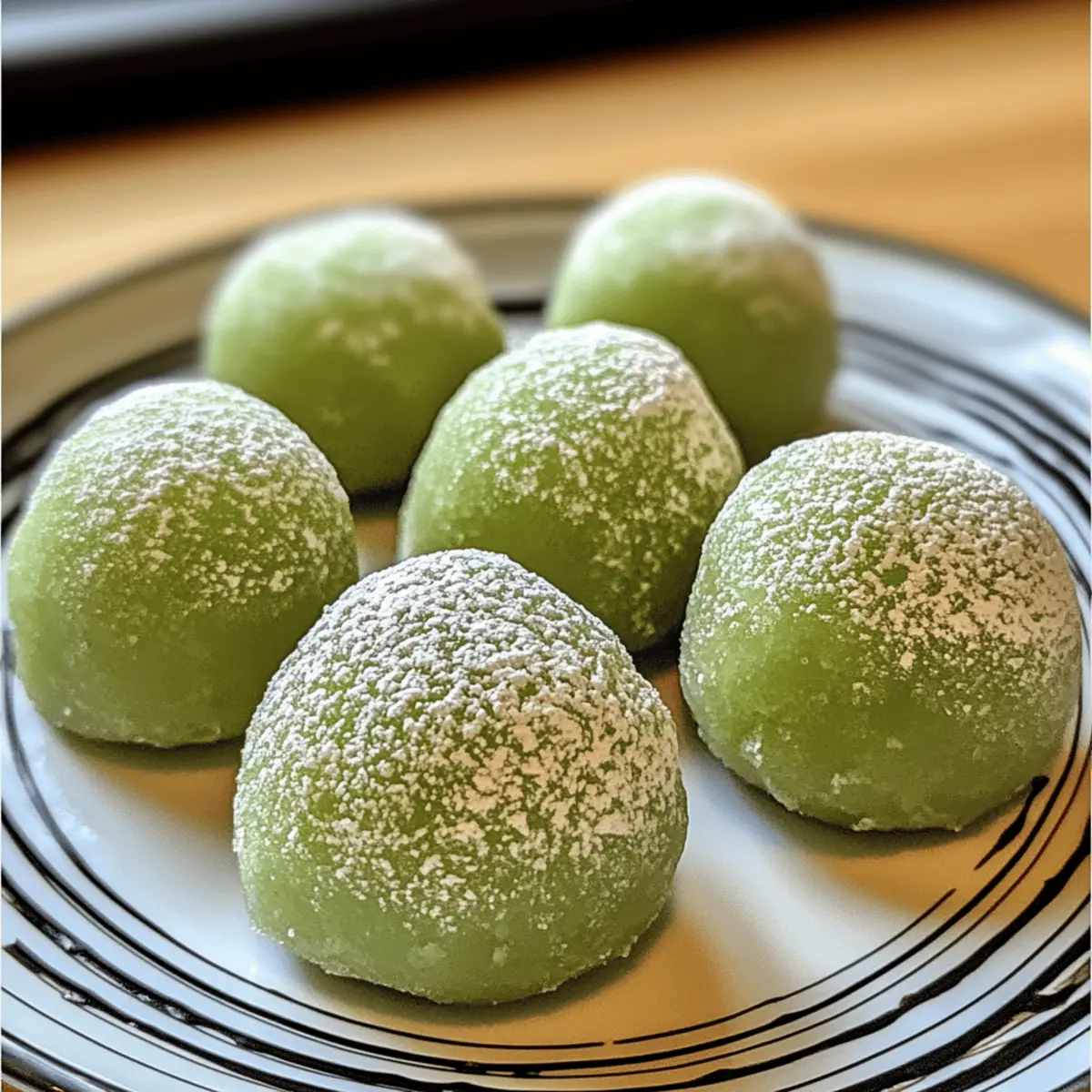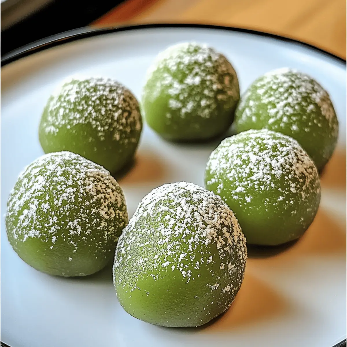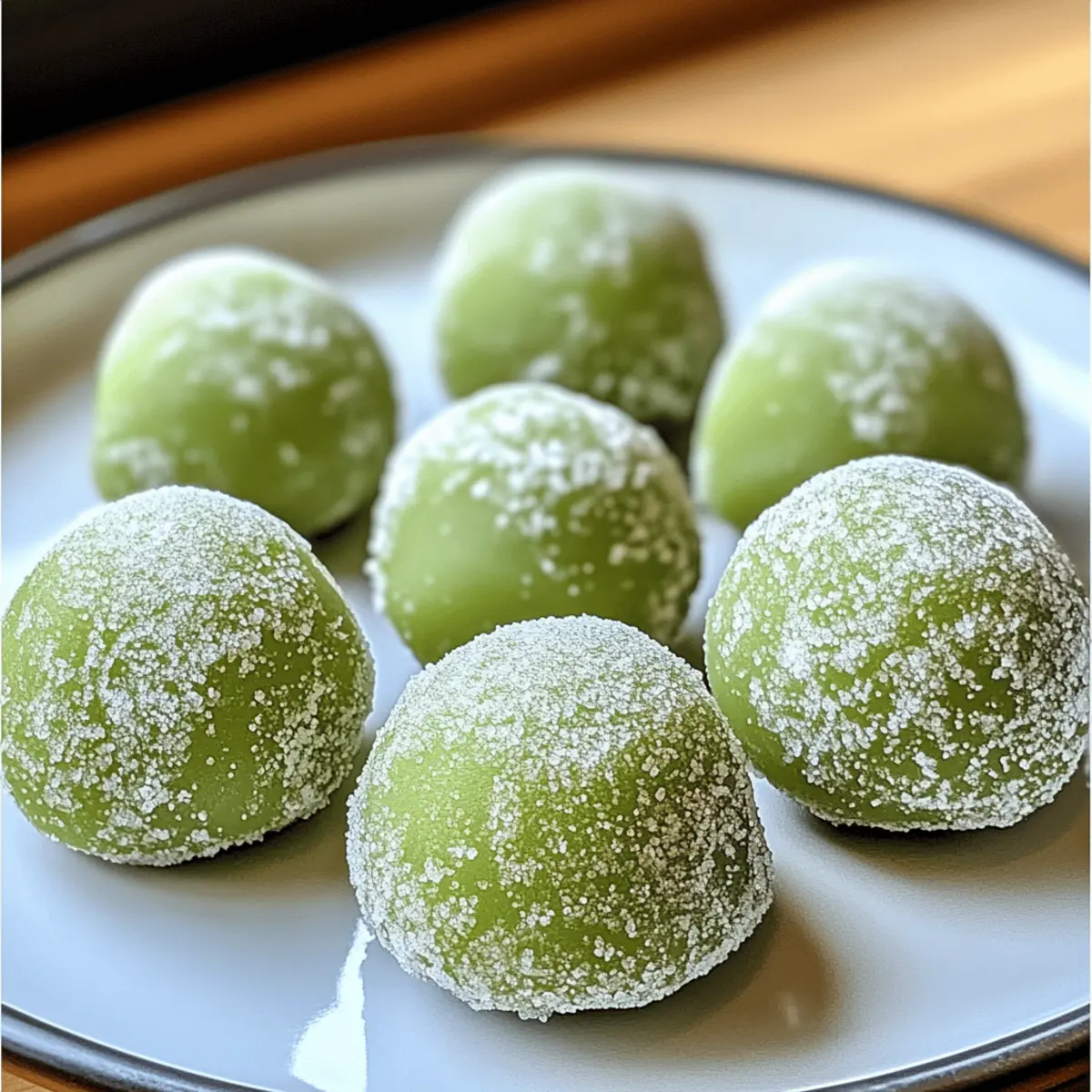 Hast du jemals von einem Dessert geträumt, das leicht und luftig ist, aber gleichzeitig einen erdigen, reichhaltigen Geschmack hat? Die Chewy Matcha Mochi Bites sind genau das und noch viel mehr! Diese glutenfreien Köstlichkeiten sind nicht nur einfach zuzubereiten, sondern überraschen auch mit einer perfekten Balance zwischen süß und herzhaft. Sie sind die ideale Wahl für einen Snack am Nachmittag oder als Highlight auf deinem nächsten Festmahl. Stell dir vor, wie deine Freunde und Familie bei deinem nächsten Treffen begeistert sein werden, wenn sie diese einzigartigen, zähen Bissen kosten! Neugierig, wie du diese kleinen Leckerbissen zaubern kannst? Lass uns gemeinsam in die Zubereitung eintauchen! Warum sind Chewy Matcha Mochi Bites einzigartig? Einzigartige Kombination: Diese Chewy Matcha Mochi Bites vereinen einen köstlichen, erdigen Matcha-Geschmack mit einer unwiderstehlich zähen Textur. Glutenfrei und lecker: Perfekt für alle, die eine glutenfreie Nascherei suchen. Einfach zuzubereiten: Mit nur wenigen Zutaten und einfachen Schritten, die auch für Kochanfänger machbar sind. Vielseitige Snacks: Ob zum Nachmittagskaffee oder als Dessert auf deinem nächsten Fest, sie werden mit Sicherheit alle begeistern! Und wenn du nach weiteren einfachen Rezepten suchst, schau dir auch unser Avocado Toast Radieschen oder den Cheeseburger Auflauf Familie an. Chewy Matcha Mochi Bites Zutaten Matcha-Pulver: – sorgt für den einzigartigen Geschmack von grünem Tee und eine lebendige Farbe; unbedingt durchsieben, um Klumpen zu vermeiden. Klebreismehl: – bildet die Basis des Mochis und verleiht ihm die charakteristische Zähigkeit; ohne Ersatz, da es für die Textur unerlässlich ist. Zucker (oder Süßungsmittel deiner Wahl): – fügt eine süße Note hinzu, um den leicht bitteren Matcha-Geschmack auszugleichen; alternative Süßstoffe können nach Belieben verwendet werden. Eine Prise Salz: – verbessert das Geschmacksverhältnis. Wasser: – wird mit den trockenen Zutaten kombiniert, um den Mochi-Teig zu bilden; die Menge kann für die gewünschte Konsistenz angepasst werden. Genieße die Zubereitung dieser köstlichen Chewy Matcha Mochi Bites und lass dich von ihrem besonderen Geschmack überraschen! Schritt-für-Schritt-Anleitung für Chewy Matcha Mochi Bites Step 1: Zutaten vorbereiten Sieben Sie das Matcha-Pulver, Klebreismehl, den Zucker und das Salz in eine Rührschüssel. Achten Sie darauf, dass alle trockenen Zutaten gut vermischt sind, um Klumpen zu vermeiden. Dies stellt sicher, dass Ihre Chewy Matcha Mochi Bites eine einheitliche Farbe und Textur erhalten. Step 2: Teig herstellen Fügen Sie nach und nach das Wasser zu der trockenen Mischung hinzu, während Sie kräftig rühren. Zustand des Teigs: Er sollte dick und glatt sein, etwa wie Pfannkuchenteig. Dies ist entscheidend, um die zähe Konsistenz der Mochi zu erreichen, die sie so lecker macht. Step 3: Teig dämpfen Füllen Sie einen großen Topf mit Wasser und bringen Sie es zum sanften Köcheln. Platzieren Sie ein Dampfgitter hinein und gießen Sie den Teig in ein hitzebeständiges Gefäß. Bedecken Sie es, um Kondenswasser zu vermeiden, und dämpfen Sie den Teig 30–40 Minuten lang. Wenden Sie alle 10 Minuten, bis der Teig fest und glänzend ist. Step 4: Teig abkühlen lassen Nehmen Sie den Teig nach dem Dämpfen vorsichtig aus dem Topf und lassen Sie ihn 10–15 Minuten abkühlen, bis er handhabbar ist. Dies ist wichtig, um Verbrennungen zu vermeiden, während Sie die Chewy Matcha Mochi Bites formen. Der Teig sollte nun leicht warm, aber nicht mehr heiß sein. Step 5: Bällchen formen Bestäuben Sie Ihre Hände und die Arbeitsfläche großzügig mit Speisestärke. Nehmen Sie Portionen des abgekühlten Teigs und rollen Sie diese zu kleinen Bällen oder Logen. Schneiden Sie die Stücke in mundgerechte Häppchen und legen Sie diese auf einen mit Speisestärke bestäubten Teller, damit sie nicht kleben bleiben. Step 6: Fertigstellen und servieren Bestäuben Sie die geformten Mochi Bites abschließend mit Speisestärke oder Puderzucker. Genießen Sie diese zähen Leckerbissen frisch, oder lagern Sie sie in einem luftdichten Behälter bei Raumtemperatur für bis zu 2 Tage. Für eine festere Textur können Sie die Chewy Matcha Mochi Bites auch für ein paar Stunden im Kühlschrank aufbewahren. Was passt zu Chewy Matcha Mochi Bites? Der Genuss dieser zähen Leckerbissen wird noch perfekter, wenn du sie mit köstlichen Begleitern servierst, die ihre einzigartige Textur und den feinen Matcha-Geschmack ergänzen. Warmer Grüntee: – Der leicht herbe und erdige Geschmack von grünem Tee harmoniert wunderbar mit der Süße der Mochi Bites und bringt die Aromen in Einklang. Frischer Obstsalat: – Die Frische und Säure von Früchten wie Mango oder Beeren sorgt für einen reizvollen Kontrast zu den zähen Bissen und belebt jeden Biss. Kokosmilch-Pudding: – Die cremige Konsistenz des Puddings ergänzt die zähe Textur der Mochi und verstärkt den asiatischen Flair des Desserts. Matcha-Latte: – Dieser Drink verstärkt den Matcha-Geschmack der Mochi und sorgt für ein harmonisches Geschmackserlebnis. Die Kombination ist unerhört und macht Lust auf mehr! Mandel-Tee: – Ein süßer Mandeltee bringt eine nussige Note mit, die den Matcha-Geschmack abrundet und für eine angenehme Wärme sorgt. Sesamkekse: – Diese knusprigen Kekse bieten einen interessanten texturalen Kontrast und harmonieren wunderbar mit der weichen Konsistenz der Mochi Bites. Schokoladenfondue: – Lass deine Gäste die Mochi in geschmolzene Schokolade tauchen. Der Mix aus zäher Mochi und süßer Schokolade ist einfach unwiderstehlich! Sojaeis: – Dieses Eis bietet eine erfrischende Abkühlung und hebt den Matcha-Geschmack hervor, während es gleichzeitig auf die Wurzeln der asiatischen Küche verweist. Käsekuchen mit Matcha: – Ein cremiger Käsekuchen mit Matcha verleiht dem Dessertteller eine süße Note und bietet einen perfekten Gaumengenuss. Ex