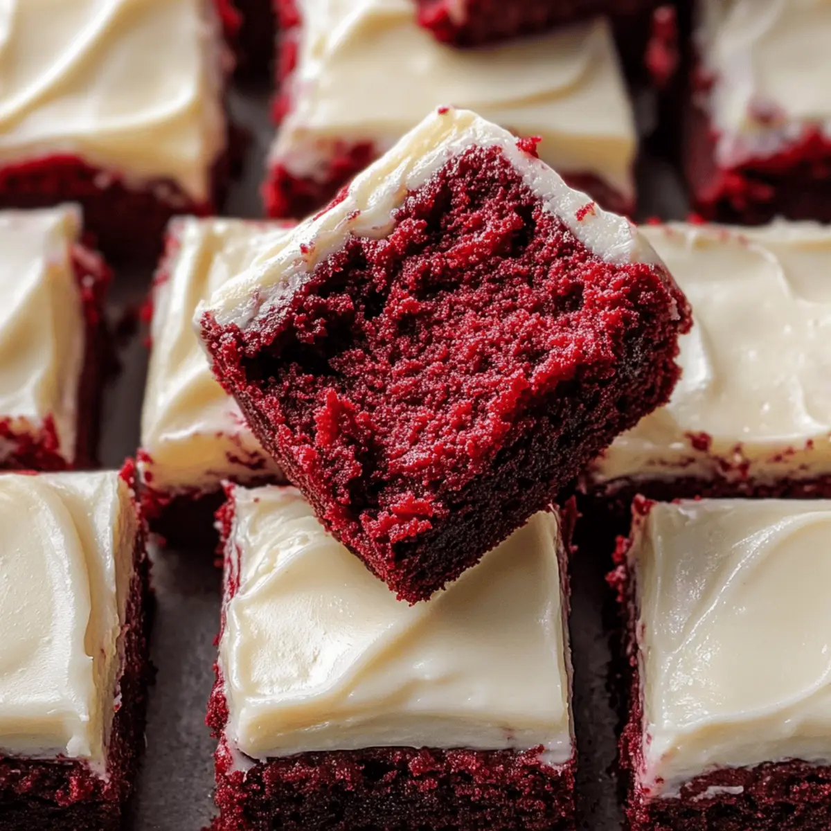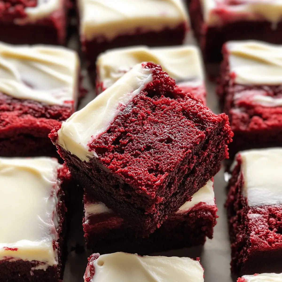 Wenn der verführerische Duft von frisch gebackenen Brownies durch die Küche zieht, kann ich einfach nicht widerstehen. Diese Chewy Red Velvet Brownies mit Cream Cheese Frosting sind nicht nur ein Augenschmaus, sondern auch ein Höhepunkt für jeden Dessertliebhaber. Mit ihrer saftigen Textur und dem cremigen Frosting bieten sie eine großartige Möglichkeit, die klassischen Aromen von Red Velvet auf eine neue, aufregende Weise zu genießen. Und das Beste daran? Sie sind schnell zubereitet und können sogar in einer laktosefreien Variante angeboten werden, sodass wirklich jeder in den Genuss kommen kann. Bist du bereit, deine Backfähigkeiten aufzupeppen und ein Stück dieser unwiderstehlichen Köstlichkeit zu zaubern? Warum wirst du dieses Rezept lieben? Einfachheit: Die Zubereitung ist kinderleicht und erfordert nur grundlegende Backfähigkeiten. Vielfalt: Du kannst diese Brownies nach Belieben anpassen, sogar laktosefrei! Hervorragender Geschmack: Die Kombination aus der süßen, zarten Brownie-Basis und dem cremigen Frischkäse-Frosting ist einfach unwiderstehlich. Schnell und praktisch: In kürzester Zeit sind sie bereit zum Genießen – perfekt für Last-Minute-Gäste oder als süßer Snack für dich selbst. Perfektes Dessert: Sie sind das ideale Highlight für jede Feier oder einen geselligen Abend. Probiere auch unsere Cheesecake Brownies Einfaches und Cremiges Haehnchen Reis für weitere tolle Rezeptideen! Die Zutaten für Chewy Red Velvet Brownies • Diese köstlichen Brownies benötigen nur wenige, aber entscheidende Zutaten! Für den Teig ¾ Tasse Butter, geschmolzen – Fügt Reichtum und Feuchtigkeit hinzu. Verwende für eine vegane Option laktosefreie Butter. ¾ Tasse brauner Zucker – Sorgt für Süße und einen subtilen Karamellgeschmack. Keine Ersatzstoffe nötig. 1 Tasse Zucker – Steigert die Süße und trägt zur zähen Textur bei. 2 Eier – Sorgt für Struktur und Feuchtigkeit. Flax-Eier können als Ersatz für eine vegane Version verwendet werden. 1 Esslöffel Vanilleextrakt – Verbessert den Geschmack. Keine Ersatzstoffe nötig. ½ Teelöffel rote Lebensmittelfarbe – Gibt den Brownies ihre charakteristische Farbe. Verwende Gel für intensivere Farbtöne. 1½ Teelöffel Weißweinessig – Reagiert mit Natron, um eine zarte Textur zu erzeugen. Keine Ersatzstoffe nötig. ¼ Tasse Kakaopulver – Fügt Schokoladengeschmack hinzu. Niedrig verarbeitetes Kakaopulver kann den Geschmack vertiefen. ¼ Teelöffel Salz – Balanciert die Süße aus. Keine Ersatzstoffe nötig. 1 Tasse + 3 Esslöffel Mehl – Sorgt für Struktur. Verwende glutenfreies Mehl für eine glutenfreie Option. Für das Frischkäse-Frosting 4 oz Frischkäse, Zimmertemperatur – Verleiht dem Frosting eine angenehme Säure. Für eine laktosefreie Option kann laktosefreier Frischkäse verwendet werden. ¼ Tasse Butter, weich – Fügt dem Frosting Reichhaltigkeit hinzu. Verwende bei Bedarf laktosefreie Butter. ½ Teelöffel Vanilleextrakt (für das Frosting) – Verbessert den Frosting-Geschmack. Prise Salz (für das Frosting) – Balanciert die Süße aus. 1½-2 Tassen Puderzucker – Süßt das Frosting. Anpassung an den gewünschten Süßkeitsgrad. 2 Esslöffel Maisstärke – Hilft, das laktosefreie Frischkäse-Frosting zu verdicken, optional, aber empfehlenswert. Schritt-für-Schritt-Anleitungen für Chewy Red Velvet Brownies mit Frischkäse-Frosting Step 1: Ofen vorheizen und Backform vorbereiten Heize den Ofen auf 175 °C vor und bereite eine quadratische Backform (20×20 cm) mit Backpapier vor. Das Backpapier sollte die Ränder der Form überlappen, damit du die Brownies später leicht herausheben kannst. Dies sorgt für eine gleichmäßige Hitzeverteilung während des Backens. Step 2: Butter und Zucker vermengen Schmelze die Butter in einem kleinen Topf oder in der Mikrowelle und lasse sie etwas abkühlen. Mische die geschmolzene Butter in einer großen Schüssel mit dem braunen Zucker und dem weißen Zucker. Rühre gut um, bis eine glatte Paste entsteht. Achte darauf, dass keine Klumpen vorhanden sind, und schlage die Masse etwa 2-3 Minuten gut durch. Step 3: Eier und Aromen hinzufügen Füge nun die Eier, den weißen Essig, den Vanilleextrakt und die rote Lebensmittelfarbe zur Zuckermischung hinzu. Rühre alles sorgfältig um, bis die Zutaten gut miteinander verbunden sind und eine gleichmäßige rote Farbe entsteht. Dieser Schritt ist wichtig, um die Basis für die Chewy Red Velvet Brownies zu schaffen. Step 4: Trockene Zutaten einmischen Siebe das Kakaopulver, das Salz und das Mehl in die Mischung. Verwende einen großen Löffel oder einen Teigschaber, um die trockenen Zutaten vorsichtig unter die feuchten Zutaten zu heben. Mische nur so lange, bis die Masse gerade so verbunden ist – das sorgt für die perfekte, zähe Konsistenz der Brownies. Step 5: Teig in die Form geben und backen Gib den Teig in die vorbereitete Backform und streiche ihn gleichmäßig mit einem Spatel glatt. Achte darauf, dass der Teig gleichmäßig verteilt ist. Backe die Brownies im vorgeheizten Ofen für 30-40 Minuten. Sie sind fertig, wenn ein Zahnstocher mit feuchten Krümeln herauskommt, aber keine flüssigen Teigreste daran haften bleiben. Step 6: Brownies abkühlen lassen Lasse die Brownies nach dem Backen in der Form auf einem Kuchengitter vollständig auskühlen. Dies kann etwa 30 Minuten dauern. Das Abkühlen ist wichtig, um die perfekte Textur zu erreichen und um sicherzustellen, dass das Frischkäse-Frosting später gut darauf hält. Step 7: Frosting zubereiten Während die Brownies abkühlen, bereite das Frosting vor. Schlage den Frischkäse, die weiche Butter, das Salz und den Vanilleextrakt in einer mittelgroßen Schüssel weich. Achte darauf, dass alles gut vermischt ist. Füge schrittweise den Puderzucker hinzu und rühre, bis die Konsistenz cremig und streichfähig ist. Step 8: Brownies frostieren und servieren Verteile das Frosting gleichmäßig über den abgekühlten Brownieteig. Du kannst 