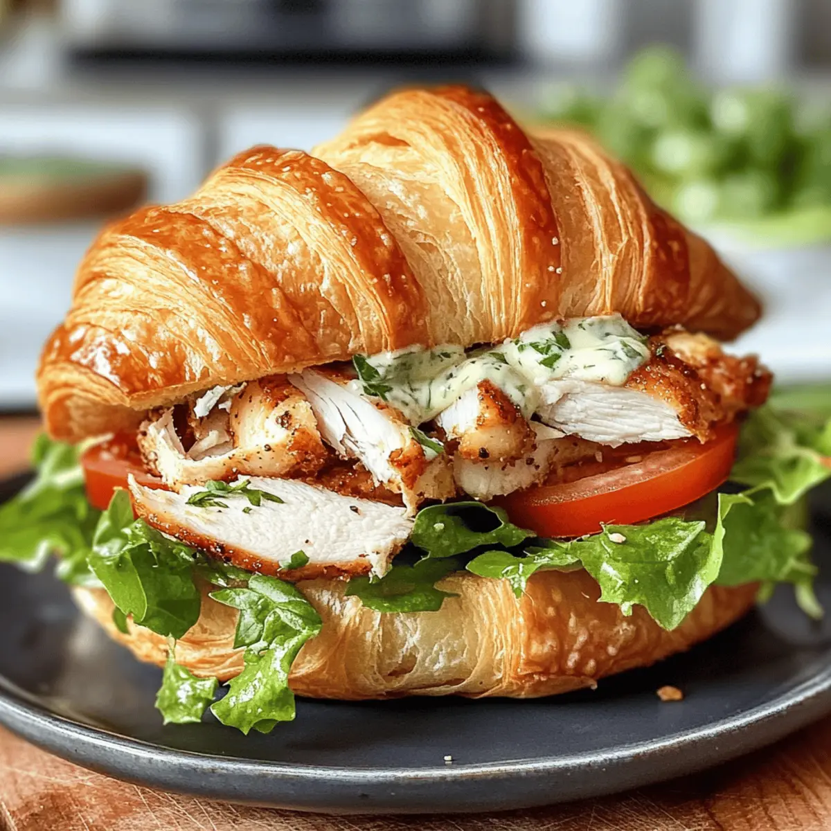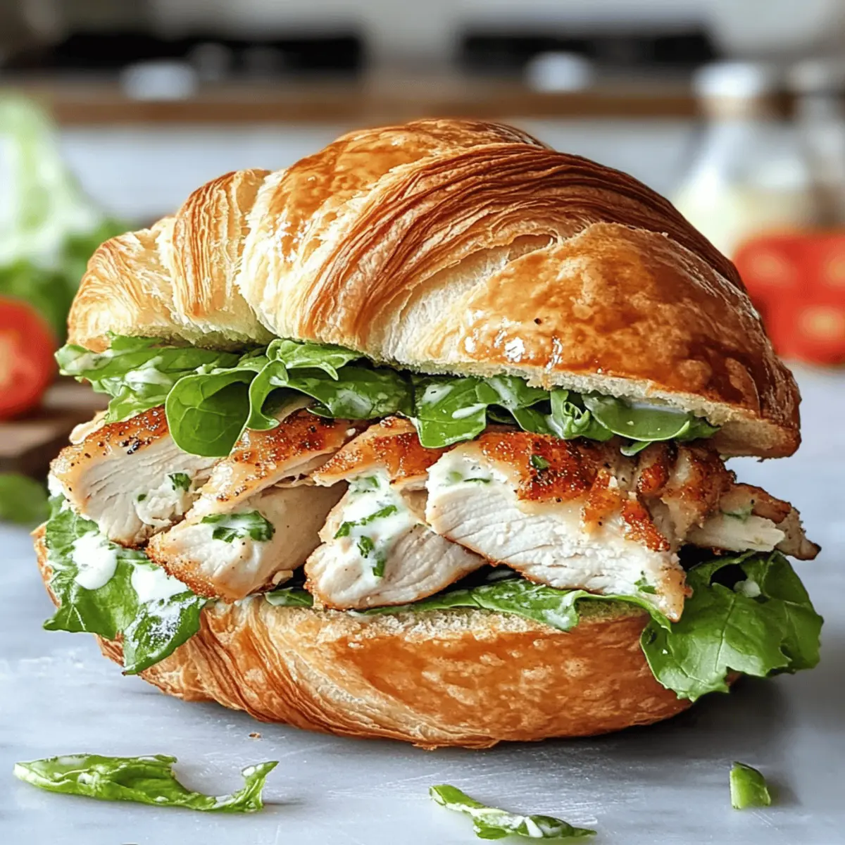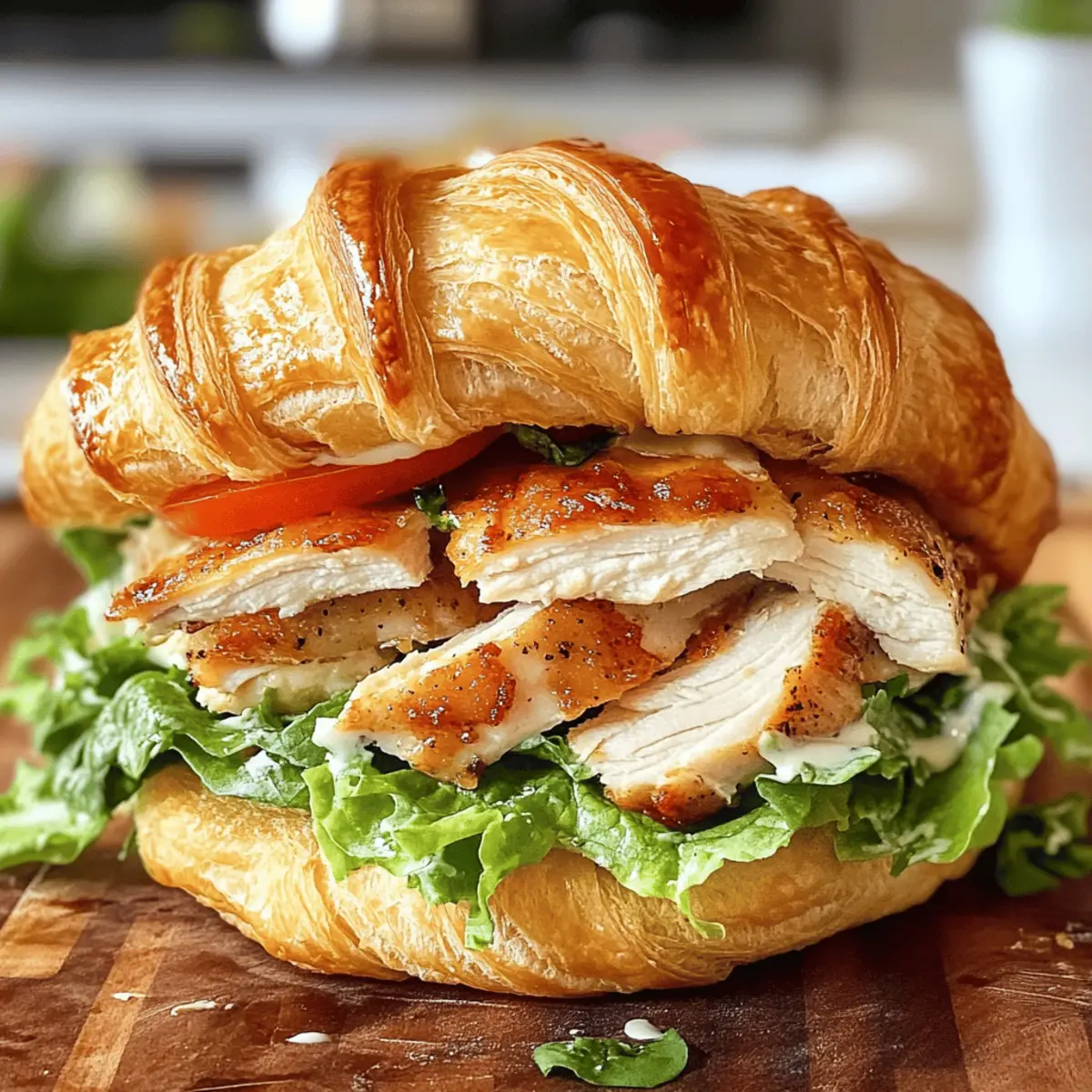 Die Vorstellung eines Croissants, das nicht nur buttrig und knusprig ist, sondern auch die Aromen eines klassischen Caesar-Salats umfasst, lässt mein Herz höher schlagen. Der Chicken Caesar Croissant Sandwich ist die perfekte Lösung für alle, die eine schmackhafte, unkomplizierte Mahlzeit suchen – ideal für ein schnelles Mittagessen oder ein entspanntes Brunch mit Freunden. Notwendig ist nur ein wenig Vorbereitung, und schon kann man Freunde und Familie begeistern. Das Beste daran? Du kannst das Rezept ganz einfach nach deinem Geschmack anpassen: Ob mit zartem Hühnchen, gegrilltem Gemüse oder einer pflanzlichen Proteinquelle – diese Leckerei lässt sich ganz individuell gestalten. Bereit, die Küche mit diesem köstlichen Sandwich zu erobern? Let’s go! Warum wirst du dieses Rezept lieben? Einfachheit pur: Die Zubereitung des Chicken Caesar Croissant Sandwiches ist kinderleicht und benötigt nur wenige Schritte. Vielseitigkeit: Egal ob Hühnchen, gegrilltes Gemüse oder pflanzliche Proteine, du kannst das Rezept ganz nach deinem Geschmack anpassen. Kräftige Aromen: Die Kombination aus zartem Huhn, frischem Römersalat und cremigem Caesar-Dressing bietet ein Geschmackserlebnis, das begeistert. Ideale schnelle Mahlzeit: Perfekt für ein schnelles Mittagessen oder einen entspannten Brunch – dieses Sandwich macht immer Eindruck. Crowd-Pleaser: Egal ob bei einer Zusammenkunft oder für dich allein, jeder wird das leckere Aroma und die Texturen lieben! Wenn du Lust auf andere kreative Sandwich-Variationen hast, schau dir auch unser Chicken Caesar Sandwich oder das Ciabatta Sandwich Rezept an. Chicken Caesar Croissant Zutaten • Entdecke die köstlichen Zutaten für dein Chicken Caesar Croissant Sandwich! Für die Croissants Croissants – Sie bieten eine buttrige und flaumige Basis; du kannst auch Ciabatta oder Baguette verwenden, wenn du etwas Robusteres möchtest. Für die Füllung Gekochtes Hühnchen – Liefert wertvolles Protein und herzhaften Geschmack; ersetze es durch gegrilltes Gemüse oder pflanzliche Proteine für eine vegetarische Option. Römersalat – Sorgt für einen frischen Crunch; keine Alternativen empfohlen, außer du hast spezifische Vorlieben. Caesar-Dressing – Gibt Cremigkeit und Würze; eine hausgemachte Variante kann verwendet werden oder du greifst auf die praktische, gekaufte Version zurück. Tomaten/Gurken/Avocado – Optionale Zutaten für zusätzlichen Geschmack und Textur, die Frische und Nährstoffe verstärken. Genieße die einfache Zubereitung des Chicken Caesar Croissant Sandwich und verwöhne deine Familie und Freunde mit diesem außergewöhnlichen Gericht! Schritt-für-Schritt-Anleitung für das Chicken Caesar Croissant Sandwich Schritt 1: Croissant vorbereiten Schneide die Croissants in der Mitte auf, um eine Tasche für die Füllung zu schaffen. Achte darauf, dass du das Croissant nicht ganz durchtrennst, damit die Füllung später nicht herausfällt. Lege die aufgeschnittenen Croissants auf ein Backblech und lasse sie kurz zur Seite, während du die Füllung vorbereitest. Schritt 2: Hühnchen und Dressing mischen In einer großen Schüssel gib das gekochte Hühnchen und füge das Caesar-Dressing hinzu. Mische alles gut mit einem Löffel oder einer Gabel, bis das Hühnchen gleichmäßig mit dem Dressing bedeckt ist. Diese Mischung sollte cremig und appetitlich aussehen, was für das Chicken Caesar Croissant Sandwich perfekt ist. Schritt 3: Sandwich zusammenstellen Setze die Chicken-Dressing-Mischung großzügig in die vorbereiteten Croissants ein. Achte darauf, dass jede Tasche gut gefüllt ist. Füge dann frischen Römersalat hinzu, um zusätzlichen Crunch und Geschmack zu verleihen. Wenn gewünscht, kannst du auch optional geschnittene Tomaten, Gurken oder Avocado für mehr Frische und Textur hinzufügen. Schritt 4: Servieren Genieße die Chicken Caesar Croissant Sandwiches sofort, solange die Croissants noch frisch und knusprig sind. Wenn du sie im Voraus zubereitest, wickele sie fest in Frischhaltefolie und lagere sie im Kühlschrank. Diese Sandwiches sind vielseitig und ideal für einen schnellen Lunch oder ein entspanntes Brunch mit Freunden! Was passt gut zum Chicken Caesar Croissant Sandwich? Die perfekte Ergänzung zu diesem köstlichen Sandwich macht dein Mittagessen oder Brunch zu einem unvergesslichen Erlebnis! Frischer Römersalat: Ein einfacher Römersalat mit Zitronen-Vinaigrette bringt eine knackige Frische, die die Aromen des Sandwiches wunderbar ergänzt. Cremige Kartoffelsalat: Dieser klassisch cremige Kartoffelsalat sorgt für die nötige Sättigung und harmoniert geschmacklich hervorragend mit der leichten Würze des Caesar-Dressings. Knusprige Chips: Die Kombination aus einem knusprigen Snack und dem weichen Croissant sorgt für einen spannenden Kontrast, der jede Bissen aufregend macht. Tomatensuppe: Eine heiße, würzige Tomatensuppe schafft eine gelungene Balance zu dem buttrigen Croissant und verstärkt die Aromen deines Sandwiches. Mediterraner Quinoasalat: Mit eingelegten Oliven und Feta verleiht dieser bunte Salat deinem Essen eine frische Note und bringt zusätzliche Textur. Kalte Limonade: Ein spritziges Getränk wie selbstgemachte Limonade erfrischt und ergänzt das Geschmackserlebnis perfekt an warmen Tagen. Jede dieser Begleitungen hebt dein Chicken Caesar Croissant Sandwich auf die nächste Stufe – perfekt für gesellige Runden oder ein entspanntes Wochenende! Variationen & Alternativen Entdecke zahlreiche Möglichkeiten, dein Chicken Caesar Croissant Sandwich nach deinem Geschmack anzupassen! Vegetarische Option: Ersetze das Hühnchen durch gegrilltes Gemüse oder Kichererbsen für eine köstliche pflanzliche Variante. Diese Alternativen bieten tolle Texturen und Aromen. Proteinreich: Tausche das Hühnchen gegen Thunfisch aus; er hat einen intensiven Geschmack und ergänzt die Cremigkeit des Dressings perfekt. Ideal, wenn du etwas Abwechslung suchst! Kreative Garnituren: Füge knusprige Croutons hin