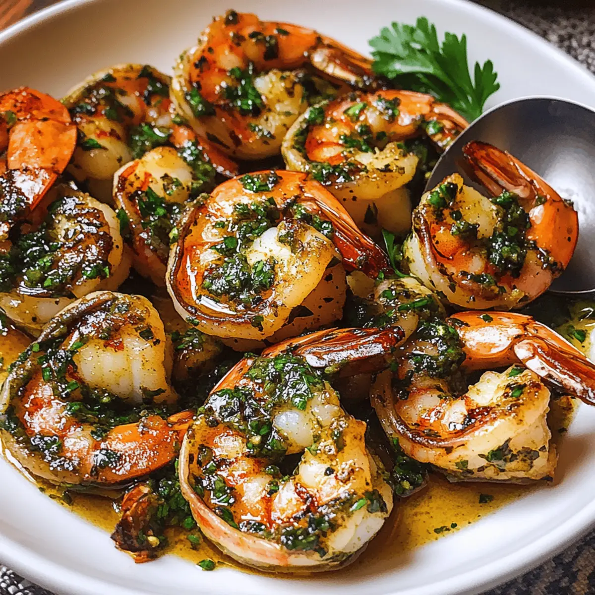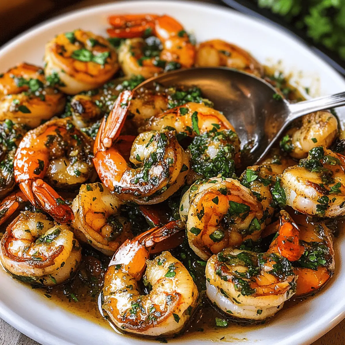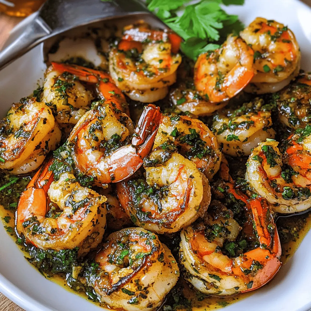 Es gibt nichts Besseres, als den verlockenden Duft von frisch zubereitetem Essen, der durch die Küche zieht. Heute präsentiere ich euch das Rezept für Pan Seared Chimichurri Shrimp – ein einfaches und authentisches Gericht, das nicht nur euren Gaumen verwöhnt, sondern auch blitzschnell zubereitet ist. Die Kombination aus zarten, saftig gebratenen Garnelen und der spritzigen Chimichurri-Sauce, die aus frischen Kräutern und Knoblauch besteht, sorgt für ein unverwechselbares Geschmackserlebnis. Diese köstliche Kreation eignet sich perfekt für ein entspanntes Abendessen mit Freunden oder als schnelles Highlight unter der Woche. Seid ihr bereit, euren Teller mit einem Hauch Argentinien zu füllen? Warum schmeckt Chimichurri so einzigartig? Einfache Zubereitung: Die Zubereitung ist unkompliziert und erfordert keine speziellen Kochkünste, ideal für jeden. Frische Kräuter: Die Verwendung von frischen Kräutern bringt eine lebendige Note und fördert die Gesundheit. Vielseitigkeit: Genießt die Garnelen in Tacos oder mit knusprigem Brot – die Möglichkeiten sind endlos! Schneller Genuss: In weniger als 30 Minuten habt ihr ein köstliches Gericht auf dem Tisch. Crowd-Pleaser: Perfekt für gesellige Abende oder Familie – jeder wird von diesem Gericht begeistert sein! ergänzt perfekt mit einem Avocado Toast Radieschen als Beilage! Chimichurri Garnelen Zutaten Für die Chimichurri-Sauce Petersilie – sorgt für Frische und lebhaften Geschmack; verwende am besten leuchtend grüne Blätter, nicht welken. Knoblauch – bringt Pungency und Tiefe ins Spiel; frischer Knoblauch schmeckt besser als aus dem Glas. Fresno-Pfeffer – fügt milde Schärfe und Farbe hinzu; kann durch Jalapeño ersetzt werden, wenn Fresno nicht verfügbar ist. Oregano – verleiht der Chimichurri erdige Noten. Olivenöl extra vergine – ist entscheidend für die Reichhaltigkeit und das Emulgieren der Chimichurri; wähle ein qualitativ hochwertiges Öl für besseren Geschmack. Rotweinessig – sorgt für Säure und Frische; weißer Weinessig kann alternativ verwendet werden. Salz & Pfeffer – unverzichtbar für das Würzen; nach Geschmack anpassen. Für die Garnelen Garnelen – Hauptquelle des Proteins; wähle riesige, geschälte und entdarmte Garnelen für die besten Ergebnisse. Kann mit Jakobsmuscheln oder anderem weißem Fisch ersetzt werden. Honig – fügt eine süße Note hinzu, um die Aromen auszubalancieren; wähle eine milde Sorte wie Klee. Räucherpaprika – bringt Wärme und Farbe zu den Garnelen; alternativ kann auch normale Paprika verwendet werden. Schritt-für-Schritt-Anleitung für Chimichurri Garnelen Step 1: Zutaten hacken Hackt die Petersilie, den Knoblauch und den Fresno-Pfeffer von Hand fein. Vermeidet es, eine Küchenmaschine zu verwenden, um die beste Textur und die lebendigen Aromen zu erhalten. Dies dauert etwa 5 Minuten. Legt die gewürfelten Zutaten in eine Schüssel, um sie für die Chimichurri-Sauce vorzubereiten. Step 2: Chimichurri-Sauce zubereiten Vermischt die gehackten Zutaten mit Oregano, Salz, Pfeffer, Olivenöl und Rotweinessig in einer Schüssel. Rührt alles gut um, bis sich die Zutaten gut vermischen. Lasst die Sauce mindestens 1 Stunde stehen, damit sich die Aromen harmonisch entfalten können. Diese frische Chimichurri-Sauce wird der Star eures Gerichts! Step 3: Garnelen vorbereiten Nehmt die riesigen Garnelen und schält sowie entdarmt sie gründlich. Alle Garnelen in eine Schüssel geben und mit Olivenöl, zusätzlichem Knoblauch, Honig, geräucherter Paprika, Salz und Pfeffer vermengen. Lasst die Garnelen für etwa 20 Minuten marinieren, damit sie alle Aromen aufnehmen können. Step 4: Garnelen kochen Erhitzt eine Pfanne oder Grillpfanne auf hoher Stufe, bis sie heiß ist. Legt die marinierten Garnelen in einer einzigen Schicht in die Pfanne und bratet sie für 2-3 Minuten auf jeder Seite, bis sie opak und durchgegart sind. Achtet darauf, dass die Garnelen eine schöne goldene Kruste erhalten, um den besten Geschmack zu garantieren. Step 5: Servieren Übertragt die gekochten Garnelen auf einen Servierteller und löffelt die Chimichurri-Sauce darüber. Reserviert etwas von der Sauce, um sie als Dip dazu zu reichen. Diese geschmackvollen Chimichurri Garnelen sind nun bereit, genossen zu werden! Tipps zur Vorbereitung für Chimichurri Garnelen Chimichurri Garnelen sind die perfekte Wahl für alle, die ihre Mahlzeiten im Voraus planen möchten! Ihr könnt die Chimichurri-Sauce bis zu 24 Stunden im Voraus zubereiten, indem ihr die Zutaten hackt und kombiniert. So haben die Aromen genügend Zeit, um sich zu entfalten. Die Garnelen können ebenfalls vorbereitet werden: einfach schälen, entdarmen und in Würze marinieren. Diese können bis zu 3 Tage im Kühlschrank aufbewahrt werden. Um die Qualität zu erhalten, mariniert die Garnelen nicht länger als nötig und sorgt dafür, dass sie vor dem Kochen Zimmertemperatur erreichen. Wenn ihr bereit seid, die Chimichurri Garnelen zu genießen, bratet sie einfach für 2-3 Minuten auf jeder Seite an – und schon habt ihr ein schmackhaftes Gericht mit minimalem Aufwand! Tipps für die besten Chimichurri Garnelen Manuelles Hacken: Hackt die Kräuter und den Knoblauch von Hand, um die perfekte Textur zu erhalten und zu vermeiden, dass sie matschig werden. Marinierzeit beachten: Übermarinieren der Garnelen vermeiden; 20 Minuten sind genug, um die Aromen einzuziehen. Heißes Kochen: Eine heiße Pfanne verwenden, um die Garnelen schnell zu braten und ein schönes Anbraten zu erzielen – niemals die Pfanne überfüllen! Frische Zutaten: Nutzt frische Kräuter und Gewürze, um den authentischen Geschmack der Chimichurri Garnelen zu gewährleisten. Variationen: Experimentiert mit anderen Meeresfrüchten wie Jakobsmuscheln für eine leckere Abwechslung. Lagerungstipps für Chimichurri Garnelen Raumtemperatur: Die Garnelen sollten nicht länger als 2 Stunden bei Raumtemperatur stehen gelassen werden, um die Lebensmittelsicherheit zu gew