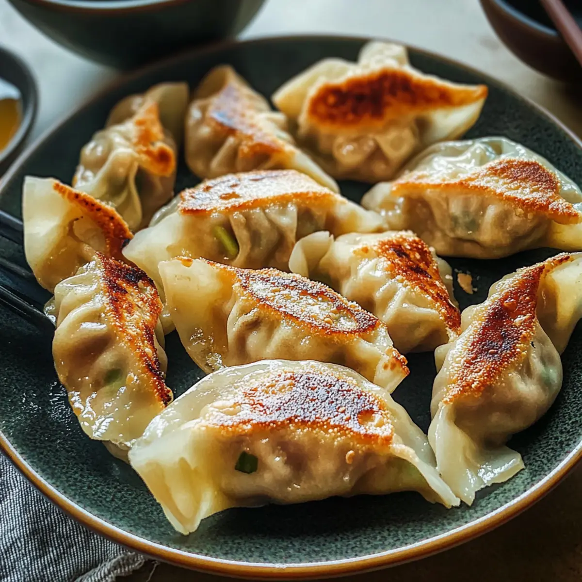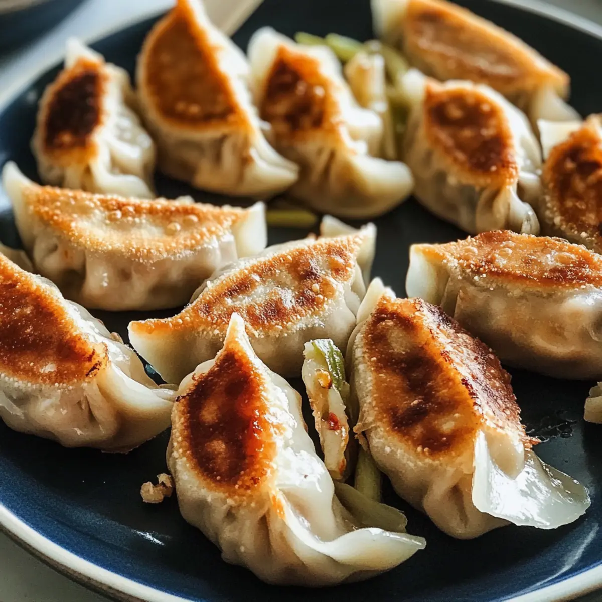 In einem kleinen Strandcafé in China beobachtete ich, wie die Köche mit Leichtigkeit frische Hühnerdumplings zubereiteten, ihre Hände flink und präzise. Diese chinesischen Hühnerdumplings sind nicht nur ein Genuss für die Sinne, sondern auch ein perfektes Gericht für jede Gelegenheit! Mit saftigem, gewürzt gefülltem Hühnchen und bunten Gemüsevariationen in zarten Teigwrapping, sind sie eine echte Freude für Freunde und Familie. Eines der besten Dinge an diesen chinesischen Hühnerdumplings ist, dass sie sich hervorragend im Voraus zubereiten und einfrieren lassen. So hast du immer einen schnellen Leckerbissen zur Hand, wenn das Verlangen nach einer köstlichen und gesunden Mahlzeit kommt. Bist du bereit, in die Welt des Dumpling-Kochens einzutauchen und das Geheimnis ihrer Knusprigkeit zu entdecken? Warum lieben alle chinesische Hühnerdumplings? Vielfalt in der Füllung: Diese chinesischen Hühnerdumplings bieten eine exquisite Mischung aus saftigem Hühnerfleisch und buntem Gemüse, die jeden Bissen zu einem Erlebnis machen. Einfach vorzubereiten: Bereite sie im Voraus zu und friere sie ein – so hast du immer eine gesunde Option zur Hand, wenn du wenig Zeit hast. Gesellige Mahlzeiten: Perfekt zum Teilen mit Freunden und Familie, diese Dumplings bringen alle zusammen und sorgen für glückliche Gesichter. Perfekte Konsistenz: Außen knusprig und innen saftig, kombinieren sie die besten Texturen für ein unvergessliches Geschmackserlebnis. Entdecke auch die Kunst der Knoblauchbutter Steakspitzen als eine tolle Ergänzung zu deinem kulinarischen Repertoire! Zutaten für chinesische Hühnerdumplings • Um sicherzustellen, dass deine chinesischen Hühnerdumplings perfekt gelingen, sind hier die wesentlichen Zutaten aufgelistet: Dumpling-Teig: – Essentiell zum Formen der Dumplings; du kannst fertige Shanghai-Style Wrapper oder selbstgemachte verwenden. Gemahlenes Hähnchen (1/2 lb): – Sorgt für die Hauptproteine und Feuchtigkeit; für mehr Saftigkeit kannst du Hähnchenschenkel oder eine Mischung mit Schweinefleisch verwenden. Hellsojasauce (1 EL): – Fügt Salzigkeit und Umami-Geschmack hinzu; kannst auch normale Sojasauce als Ersatz verwenden. Shaoxing-Wein (1 EL): – Verbessert das Aroma und die Geschmacksfülle; benutze trockenen Sherry, wenn der Wein nicht verfügbar ist. Geriebener Ingwer (2 TL): – Gibt deinem Füllung eine warme, würzige Note. Gehackte Frühlingszwiebeln (4): – Verleiht Frische und intensiviert den Geschmack. Geraspelte Karotte (1 kleine, 4 oz/110 g): – Für Süße und Farbe in der Füllung. Dose/frische Erbsen (1/2 Tasse): – Addiert Süße und eine angenehme Textur; falls du Dosen verwendest, achte darauf, das überschüssige Wasser abzulassen. Salz (1 TL): – Wichtig zur Würzung der Füllung. Maisstärke (1 TL): – Hilft, die Füllung zu binden und Feuchtigkeit zu halten. Weißer Pfeffer (1/4 TL): – Fügt eine subtile Schärfe hinzu. Sesamöl (1 EL): – Verleiht Geschmack und Reichhaltigkeit; füge es am Ende hinzu, um die Füllung nicht matschig werden zu lassen. Erdnuss-/Pflanzenöl: – Zum Braten der Dumplings. Schritt-für-Schritt-Anleitung für krosse chinesische Hühnerdumplings Step 1: Füllung Vorbereiten In einer Schüssel das gemahlene Hähnchen mit der hellen Sojasauce und dem Shaoxing-Wein vermengen, bis die Mischung klebrig wird. Diese Mischung sollte dann abgedeckt im Kühlschrank für etwa 20 Minuten marinieren, damit die Aromen gut durchziehen können und das Hähnchen saftig bleibt. Step 2: Zutaten Kombinieren Füge nach der Marinierzeit den geriebenen Ingwer, die gehackten Frühlingszwiebeln, die geraspelte Karotte, die Erbsen, das Salz, die Maisstärke und das Sesamöl zur Hähnchenmischung hinzu. Gut durchmischen, bis alle Zutaten gleichmäßig verteilt sind. Dies sorgt für eine geschmackvolle und feuchte Füllung für die chinesischen Hühnerdumplings. Step 3: Dumplings Formen Nehme einen Dumpling-Wrapper und lege etwa einen Esslöffel der Füllung in die Mitte. Befeuchte die Ränder des Wrappers leicht mit Wasser, sodass sie besser haften. Klappe den Wrapper zusammen, drücke die Ränder fest und pinche sie gut zu, um die Füllung einzuschließen. Lege die geformten Dumplings auf ein mit Mehl bestäubtes Blech, um ein Kleben zu verhindern. Step 4: Dumplings Einfrieren Wenn du die Dumplings nicht sofort kochen möchtest, lege sie auf ein mit Folie bedecktes Blech und friere sie für mindestens eine Stunde ein, bis sie fest sind. Daraufhin kannst du sie in einen Gefrierbeutel umfüllen für eine langfristige Lagerung von bis zu einem Monat. So hast du immer eine schnelle und gesunde Option zur Hand. Step 5: Dumplings Kochen Erhitze in einer beschichteten Pfanne ausreichend Erdnuss- oder Pflanzenöl bei mittlerer Hitze. Lege die Dumplings so hinein, dass sie sich nicht berühren. Gieße dann vorsichtig etwa 1/4 Tasse Wasser in die Pfanne und decke sie sofort ab. Lass sie für 2-4 Minuten dünsten, bis das Wasser verdampft und die Dumpling-Unterseite knusprig und goldbraun ist. Step 6: Dumplings Servieren Nachdem die Dumplings schön knusprig sind, nimm den Deckel ab und lasse sie ein paar Minuten ohne Deckel braten, um die Unterseite zu knuspriger Konsistenz zu bringen. Serviere die krossen chinesischen Hühnerdumplings heiß, beispielsweise mit Chinkiang-Essig oder einer einfachen Dipsauce, um ihren Geschmack zu verbessern. Was passt zu krossen chinesischen Hühnerdumplings? Diese herzhaften, knusprigen Hühnerdumplings lassen sich wunderbar in ein vollmundiges Menü integrieren und verführen deine Sinne mit einer Vielzahl an köstlichen Begleitgerichten. Chinkiang-Essig: Ein spritziger Dip, der die Aromen der Dumplings perfekt ergänzt und einen extra Kick verleiht. Gurkensalat: Knackig und frisch, dieser leicht gewürzte Salat bietet eine erfrischende Abwechslung zu den heißen Dumplings und sorgt für eine schöne Textur. Asiatische Nudeln: Diese bieten eine herzliche Basis mit einer leichten Sojasauce,