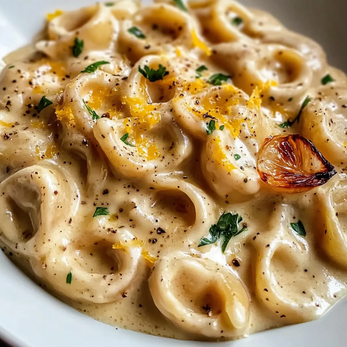 Cremige geröstete Knoblauch- und Zitronenpasta genießen