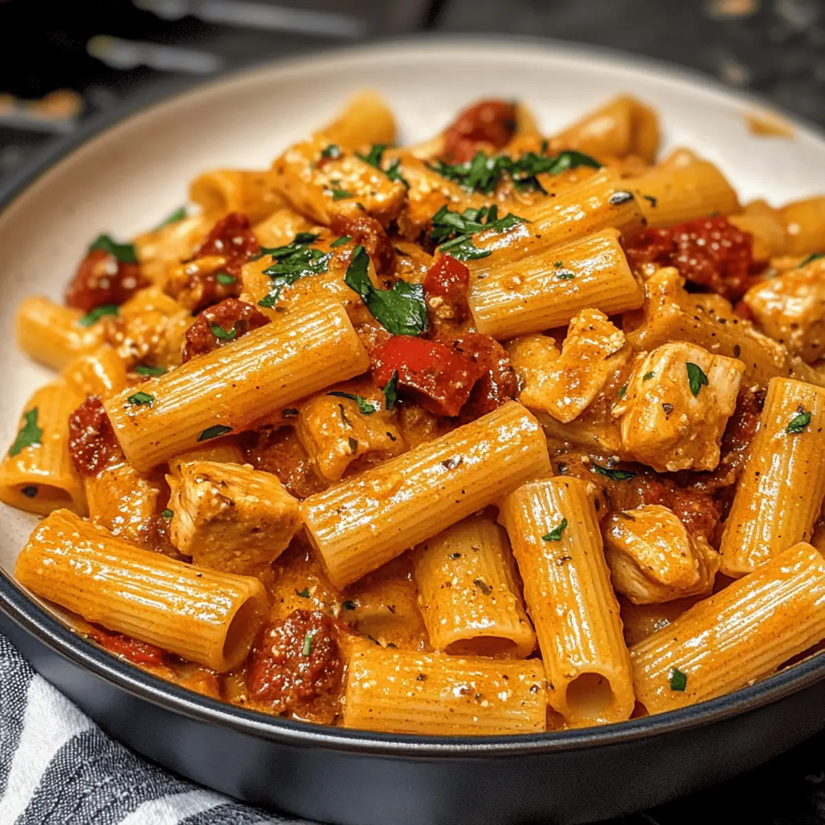 Reiche Textur: Die cremige Tomaten-Sahnesauce verwandelt jede Portion in eine luxuriöse Mahlzeit, die den Genuss des italienischen Essens in Ihr Zuhause bringt. Probieren Sie auch das leckere Spinat Hähnchen Pasta oder das Honig Pfeffer Hähnchen Pasta für noch mehr Abwechslung!