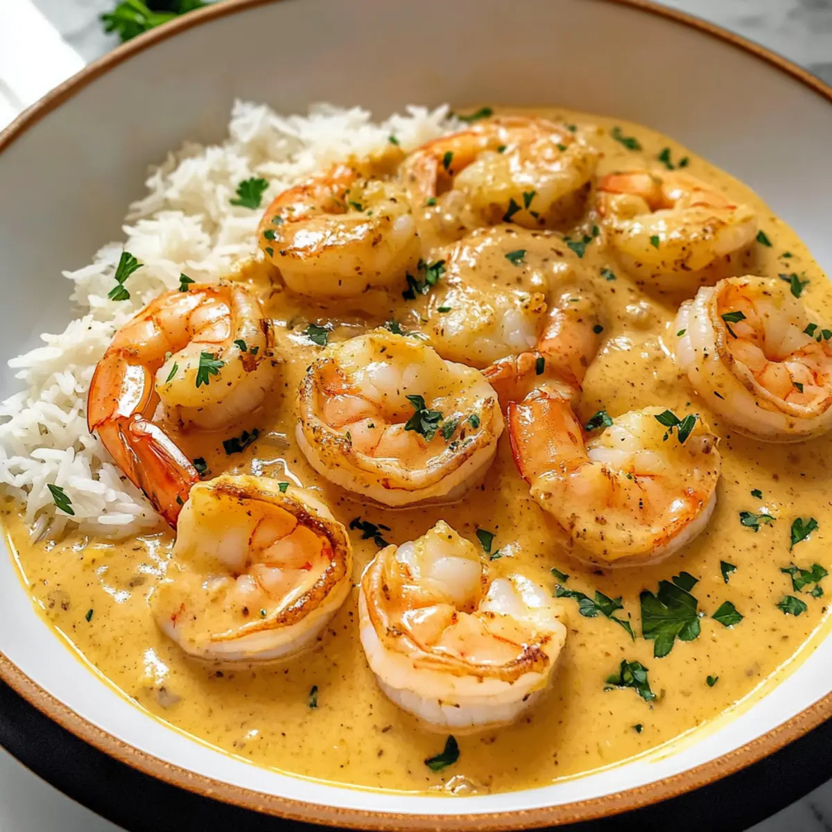 Nimm die Pfanne vom Herd und garniere das Gericht mit frisch gehackter Petersilie. Serviere die cremigen Kokosnussgarnelen heiß, idealerweise über gedämpftem Reis oder Pasta, damit du die köstliche Sauce auch aufnehmen kannst.