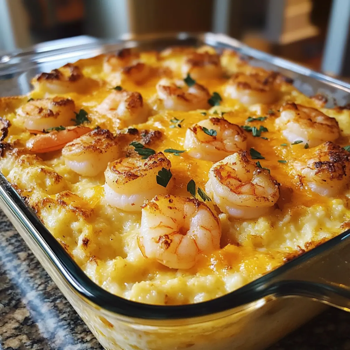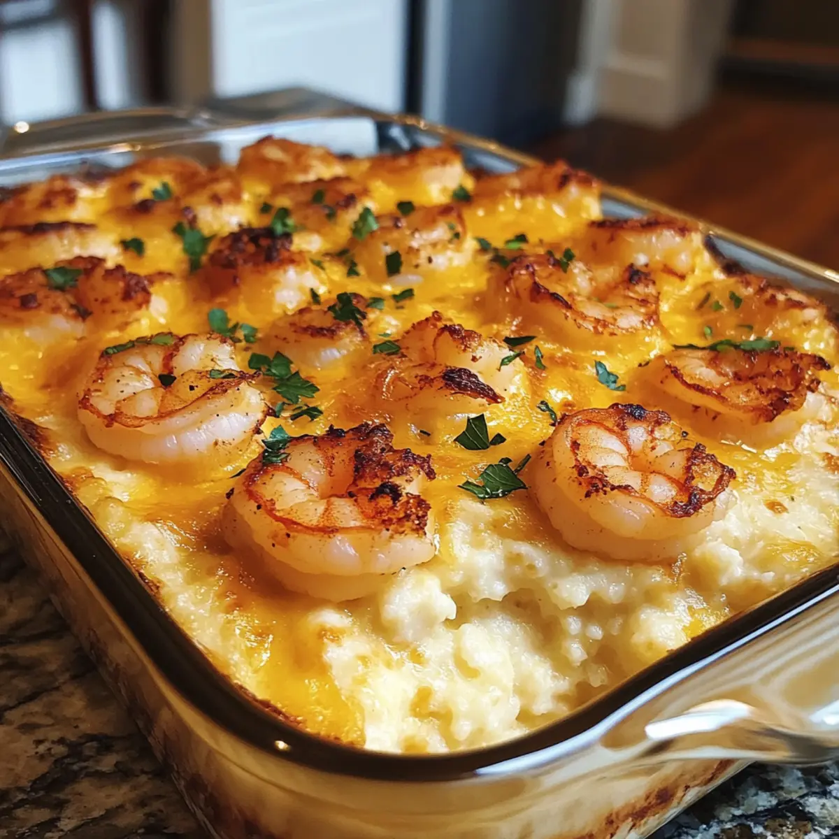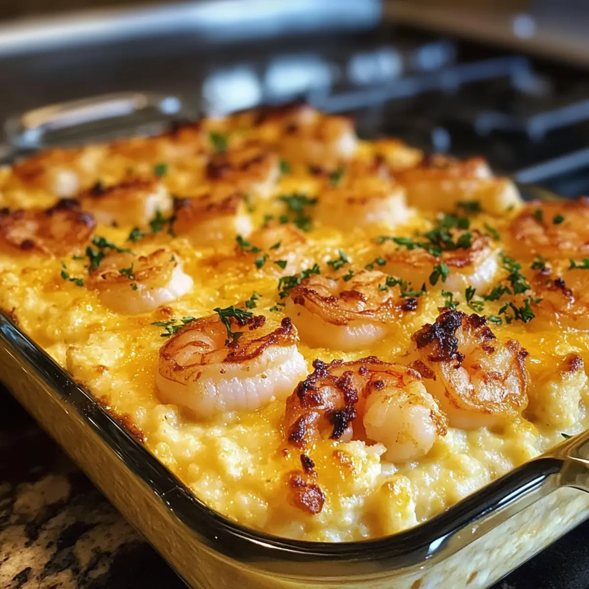 Ein einfaches und köstliches Rezept für cremigen Shrimp & Grits Auflauf, perfekt für gesellige Abende.