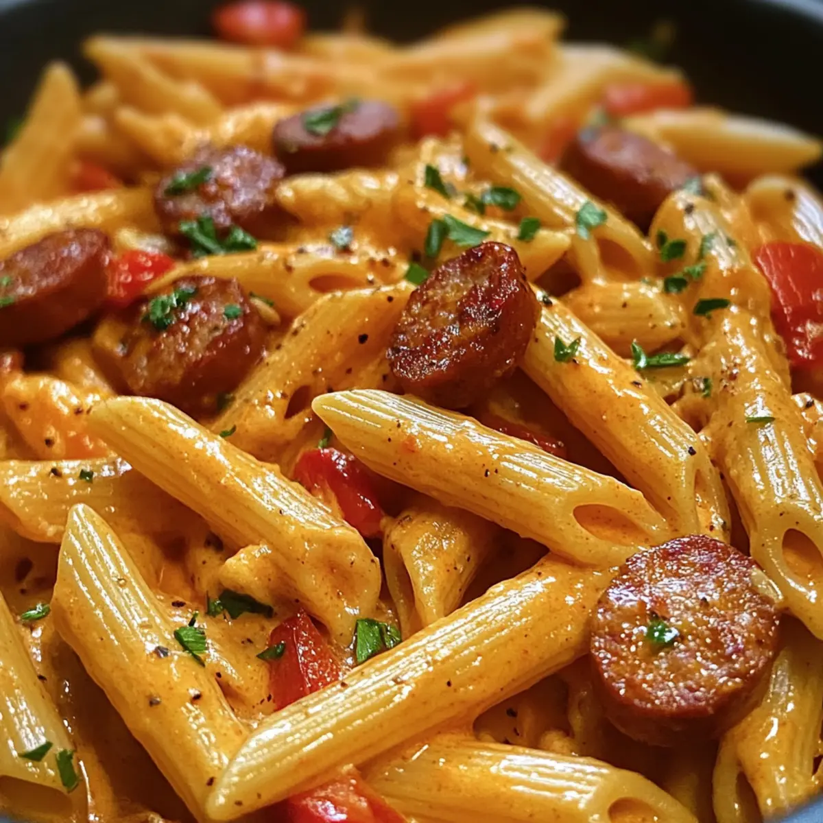 Als die Sonne strahlend über das Louisiana-Hochland schien, stellte ich fest, dass nichts den Tag mehr erhellen würde als eine köstliche, selbstgemachte Mahlzeit. Diese cremige würzige Cajun-Wurst-Pasta ist nicht nur eine Hommage an die Aromen des Südens, sondern auch eine wahre Zeitersparnis in der Küche! In nur einem Topf zaubere ich eine cremige, würzige Sauce, die die zarten Penne-Pasta und die rauchige Wurst perfekt umhüllt. Perfekt für stressige Wochentage oder gemütliche Zusammenkünfte mit Freunden – dieses Gericht ist in weniger als 30 Minuten fertig! Und das Beste? Es ist so zufriedenstellend und sättigend, dass ich mühelos den Hunger aller Gäste stillen kann. Neugierig, wie einfach es zuzubereiten ist? Lass uns gleich loslegen! Warum wirst du dieses Rezept lieben? Einfachheit: Die Zubereitung dieser cremigen würzigen Cajun-Wurst-Pasta ist denkbar unkompliziert und benötigt nur einen Topf, sodass du wenig Zeit mit dem Abwasch verbringen musst. Vielseitigkeit: Du kannst die Wurst nach deinem Geschmack auswählen – ob knusprige Hähnchenwurst oder pflanzliche Alternativen, jeder findet hier seine Lieblingsversion. Würziger Genuss: Die perfekte Kombination aus Cajun-Gewürzen und cremiger Sauce wird dich in zwei Welten versetzen und den Gaumen verzaubern! Familienfreundlich: Dieses Gericht ist ideal für gesellige Abende mit Freunden oder der Familie, denn es bietet jedem einen herzhaften Biss und wird garantiert geliebt. Gesundes Kochen: Ersetze die Sahne durch Kokosmilch oder füge frisches Gemüse hinzu, um die Nährstoffe zu steigern und einen gesünderen Genuss zu erzielen. Wenn du nach weiteren Ideen suchst, wie du diese tolle Pasta verfeinern kannst, schau dir gerne meine Vorschläge für Variationen an, um noch mehr Geschmack zu entdecken! Cremige würzige Cajun-Wurst-Pasta Zutaten • Perfekt, um deinen Hunger zu stillen und die Geschmacksknospen zu begeistern! Für die Pasta Penne-Pasta – Sie bildet die Grundlage des Gerichts und sorgt für eine herzhafte Textur; du kannst auch Vollkorn- oder gefärbte Pasta verwenden. Hähnchen- oder Gemüsebrühe – Sie bringt Geschmack und Feuchtigkeit; Gemüsebrühe ist eine hervorragende vegetarische Option. Für die Sauce Rauchige Wurst – Sie verleiht dem Gericht einen herzhaften Geschmack; probiere auch Hähnchenwurst oder pflanzliche Alternativen aus. Cajun-Gewürz – Dieses Gewürz sorgt für die charakteristische Würze; du kannst die Menge nach deinem Geschmack anpassen oder sogar selbst herstellen. Sahne – Sie macht die Sauce reich und cremig; für eine leichtere Variante kannst du auch Milch oder Kokosmilch verwenden. Parmesan-Käse – Er rundet das Gericht mit einem salzigen, nussigen Geschmack ab; ersetze ihn durch Hefeflocken für eine vegane Option. Für die Farbe und den Geschmack Paprika und Zwiebeln – Sie sorgen für Farbe und Süße; du kannst auch andere Gemüsesorten wie Spinat oder Zucchini hinzufügen. Knoblauch – Er bringt eine aromatische Tiefe; gerösteter Knoblauch kann für einen süßeren Geschmack verwendet werden. Die cremige würzige Cajun-Wurst-Pasta wird dich und deine Liebsten zusammenbringen – bereit, diese Aromen zu entdecken? Lass uns kochen! Schritt-für-Schritt-Anleitungen für die Cremige würzige Cajun-Wurst-Pasta Step 1: Gemüsesaucenbasis vorbereiten Erhitze bei mittlerer Hitze einen großen Topf und gib einen Esslöffel Öl hinein. Füge die gewürfelte Zwiebel und die gewürfelte Paprika hinzu und brate sie 5 Minuten lang, bis sie weich und leicht goldbraun sind. Achte darauf, dass das Gemüse nicht anbrennt, damit die Aromen sich gut entfalten können. Step 2: Wurst anbraten Gib die in Scheiben geschnittene rauchige Wurst in den Topf und brate sie etwa 5 Minuten lang, bis sie schön braun und leicht knusprig ist. Dies wird der cremigen würzigen Cajun-Wurst-Pasta einen herzhaften Geschmack verleihen. Rühre gelegentlich um, damit die Wurst gleichmäßig gart. Step 3: Gewürze und Knoblauch hinzufügen Jetzt kommt der aromatische Teil! Füge den gehackten Knoblauch und das Cajun-Gewürz hinzu und koche alles eine weitere Minute, bis die Gewürze angenehm duften. Achte darauf, dass du rührst, damit der Knoblauch nicht verbrennt, da er sonst bitter wird. Step 4: Flüssigkeiten einrühren Gieße nun die Hühnerbrühe und die Sahne in den Topf und bringe das Ganze zum Köcheln. Reduziere die Hitze und lass die Mischung 2-3 Minuten köcheln, bis sie leicht eindickt. Dies schafft die Basis für die cremige Soße deiner cremigen würzigen Cajun-Wurst-Pasta. Step 5: Penne-Pasta kochen Füge nun die Penne-Pasta hinzu und koche sie gemäß den Anweisungen auf der Verpackung, in der Regel etwa 10-12 Minuten. Rühre gelegentlich um, damit die Pasta nicht zusammenklebt. Nach dem Kochen sollte die Pasta al dente sein und die Sauce aufnehmen. Step 6: Käse unterrühren Sobald die Pasta fertig ist, ziehe den Topf vom Herd und gib nach Belieben geriebenen Parmesan-Käse hinzu. Rühre gut um, bis der Käse geschmolzen und die Soße schön cremig ist. Die cremige würzige Cajun-Wurst-Pasta sollte jetzt eine samtige Konsistenz haben. Step 7: Abschmecken und Servieren Schmecke die Pasta ab und füge nach Bedarf etwas mehr Cajun-Gewürz oder Salz hinzu. Serviere die cremige würzige Cajun-Wurst-Pasta sofort, garniert mit frischen Kräutern oder extra Käse, falls gewünscht. Diese köstliche, würzige Mahlzeit ist jetzt bereit, genossen zu werden! Variationen zur cremigen würzigen Cajun-Wurst-Pasta Lass deiner Kreativität freien Lauf und passe das Rezept nach deinem Geschmack an! Vegetarisch: Ersetze die Wurst durch gewürzte Linsen oder Quinoa für eine fleischfreie Variante, die genauso sättigend ist. Scharfer Genuss: Füge gehackte Jalapeños oder eine Prise Cayennepfeffer hinzu, um das Gericht aufzuheizen und deine Geschmacksnerven zu kitzeln. Diese kleinen Änderungen können einen großen Unterschied machen. Nussige Note: Verwende anstelle von Parmesan geröstete Pini