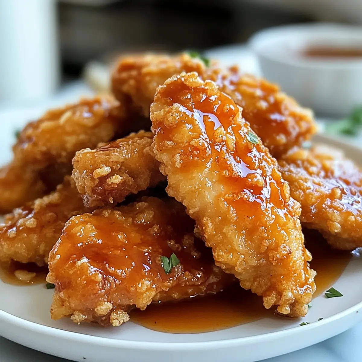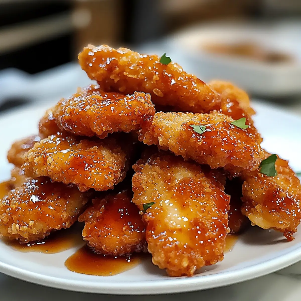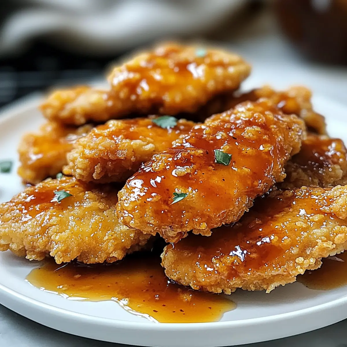 Der Duft von frisch gebackenem Hähnchen weht durch die Küche und bringt alle zusammen – das ist der perfekte Moment für mein Crispy Gebackenes Heißes Honig Hähnchen! Mit einer knusprigen Cornflake-Hülle und einer verführerischen süß-würzigen Glasur wird dieses Gericht zu einem Hit bei jeder Zusammenkunft. Die Zubereitung ist nicht nur einfach und schnell, sondern auch unglaublich vielseitig: Ob glutenfrei oder vegan, die Variationen ermöglichen es jedem, dieses gemütliche Komfortessen zu genießen. Egal, ob für ein entspanntes Abendessen unter der Woche oder für den nächsten Spieleabend – dieses Rezept wird eure Geschmacksnerven kitzeln und eure Liebsten begeistern. Seid ihr bereit, euren Kochlöffel zu schwingen und etwas wirklich Einzigartiges zu zaubern? Warum ist dieses Gericht ein Muss? Einzigartiger Geschmack: Die Kombination aus knusprigem Hähnchen und süß-würziger Honigglasur schafft ein Geschmackserlebnis, das einfach unwiderstehlich ist. Einfache Zubereitung: Die Schritte sind unkompliziert, sodass auch Kochanfänger schnell zum Ziel kommen. Vielseitige Optionen: Egal, ob ihr glutenfreie oder vegane Varianten bevorzugt, dieses Rezept passt sich euren Bedürfnissen an. Perfekte Textur: Die gelungene Balance von Crunch und zartem Hähnchen sorgt für ein unvergessliches Mundgefühl. Familienfreundlich: Dieses Gericht begeistert sowohl Kinder als auch Erwachsene – der perfekte Hit für jeden Anlass! Einfache Lagerung: Reste sind in einem luftdichten Behälter bis zu drei Tage haltbar und behalten ihre Knusprigkeit, wenn ihr sie im Ofen aufwärmt. Verpasst nicht die Gelegenheit, zusätzlich unsere Lagertipps für Hähnchen zu entdecken, um eure Zubereitung noch effektiver zu gestalten! Zutaten für Crispy Gebackenes Heißes Honig Hähnchen • Entdecke, wie einfach es ist, dieses köstliche Gericht zuzubereiten! Für das Hähnchen Hähnchenbrust – Die Hauptproteinquelle; Hähnchenschenkel sind saftiger. Salz und schwarzer Pfeffer – Verstärken den Geschmack; frische Zutaten sorgen für das beste Ergebnis. Antihaft-Kochspray – Verhindert Anhaften; ein leichter Ölnebel kann als Alternative verwendet werden. Für die Panade Mehl – Grundbaustein für die Panade; Mandelmehl eignet sich hervorragend als glutenfreier Ersatz. Hellbrauner Zucker – Sorgt für Süße in der Panade; Kokosblütenzucker ist eine Alternative mit niedrigem glykämischen Index. Eier – Binden die Panade; können durch Leinsamen-Eier für eine vegane Option ersetzt werden. Scharfe Sauce – Gibt der Eimischung Würze; je nach Vorliebe anpassen. Cornflakes – Sorgt für den perfekten Crunch; glutenfreie Varianten sind verfügbar. Paprika – Verleiht milden Geschmack und Farbe; geräucherte Paprika erhöht die Geschmackstiefe. Gewürzmischung – Eine Kombination aus Salz, Chili-Pulver, schwarzem Pfeffer und Cayenne-Pfeffer zur Geschmacksverbesserung. Für die Honigglasur Honig – Sorgt für Süße und Feuchtigkeit; Ahornsirup kann für eine vegane Version verwendet werden. Zusätzliche scharfe Sauce – Für extra Schärfe; nach Belieben auswählen. Butter – Fügt der Glasur Reichhaltigkeit hinzu; pflanzliche Butter kann als milchfreie Variante dienen. Hellbrauner Zucker (für die Glasur) – Süßt die Sauce; Rohrzucker ist ein geeigneter Ersatz. Apfelessig – Balanciert die Säure der Sauce; Zitronensaft kann ebenfalls verwendet werden. Knoblauchpulver, Zwiebelpulver, Senfpulver – Würzen die Sauce; frische Alternativen können die Aromen intensivieren. All diese Zutaten sind entscheidend für die Zubereitung des köstlichen Crispy Gebackenes Heißes Honig Hähnchens, das jedem Geschmack gerecht wird! Schritt-für-Schritt-Anleitung für Crispy Gebackenes Heißes Honig Hähnchen Step 1: Ofen vorheizen Heizt euren Ofen auf 220 °C (425 °F) vor, um die perfekte Temperatur für knuspriges Hähnchen zu erreichen. Ein gut vorgeheizter Ofen hilft dem Hähnchen, außen schön braun und knusprig zu werden, während es innen saftig bleibt. Bereitet währenddessen ein Backblech mit antihaftbeschichtetem Kochspray vor. Step 2: Cornflakes zerkleinern Nehmt eine Schüssel und zerdrückt die Cornflakes zu kleinen Stückchen, um die knusprige Panade für das Crispy Gebackene Heiße Honig Hähnchen vorzubereiten. Ihr könnt einen Gefrierbeutel verwenden und mit einem Nudelholz darauf klopfen, damit sie gleichmäßig klein sind. Achtet darauf, keine großen Stücke zu lassen, um eine gleichmäßige Beschichtung zu gewährleisten. Step 3: Panierstation einrichten Stellt drei Schalen auf eure Arbeitsfläche auf. Füllt die erste mit einer Mischung aus Mehl und hellbraunem Zucker, die zweite mit verquirlten Eiern und scharfer Sauce, und die dritte mit den zerdrückten Cornflakes, die ihr mit Gewürzt etwas Paprika und Salz würzt. Diese Vorbereitung macht die Panierung des Hähnchens schnell und einfach. Step 4: Hähnchen vorbereiten Schneidet die Hähnchenbrustfilets in gleichmäßige Stücke und klopft sie sanft, um eine einheitliche Dicke zu erreichen. Dies sorgt dafür, dass das Hähnchen gleichmäßig gart. Vergesst nicht, die Hähnchenstücke nach dem Klopfen trocken zu tupfen, damit die Panade in der nächsten Phase gut haftet. Step 5: Hähnchen würzen und panieren Würzt die Hähnchenstücke mit Salz und schwarzem Pfeffer. Taucht sie dann nacheinander in die Mehlmischung, in die Eimischung und schließlich in die Cornflake-Panade. Drückt die Cornflakes gut an, damit sie an den Hähnchen haften bleiben. Dieser Schritt sorgt für die knusprige Textur, die unser Crispy Gebackenes Heißes Honig Hähnchen auszeichnet. Step 6: Hähnchen auf dem Backblech anordnen Legt die panierten Hähnchenstücke gleichmäßig auf das vorbereitete Backblech. Achtet darauf, dass zwischen den Hähnchenstücken genügend Platz ist, damit die Luft zirkulieren kann und alles gleichmäßig knusprig wird. Besprüht die Oberseite der Hähnchenstücke leicht mit Antihaftkochspray, um die Kruste zu verbessern. 