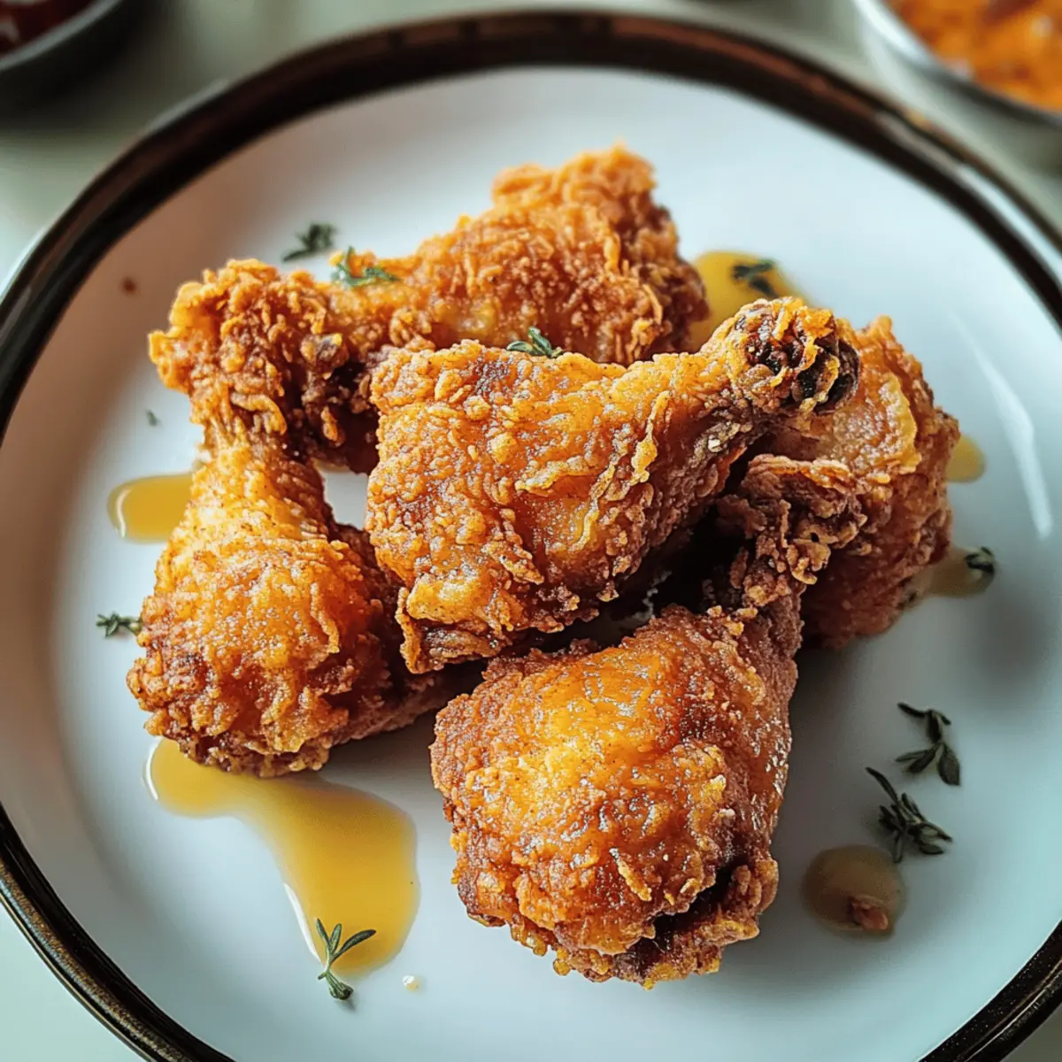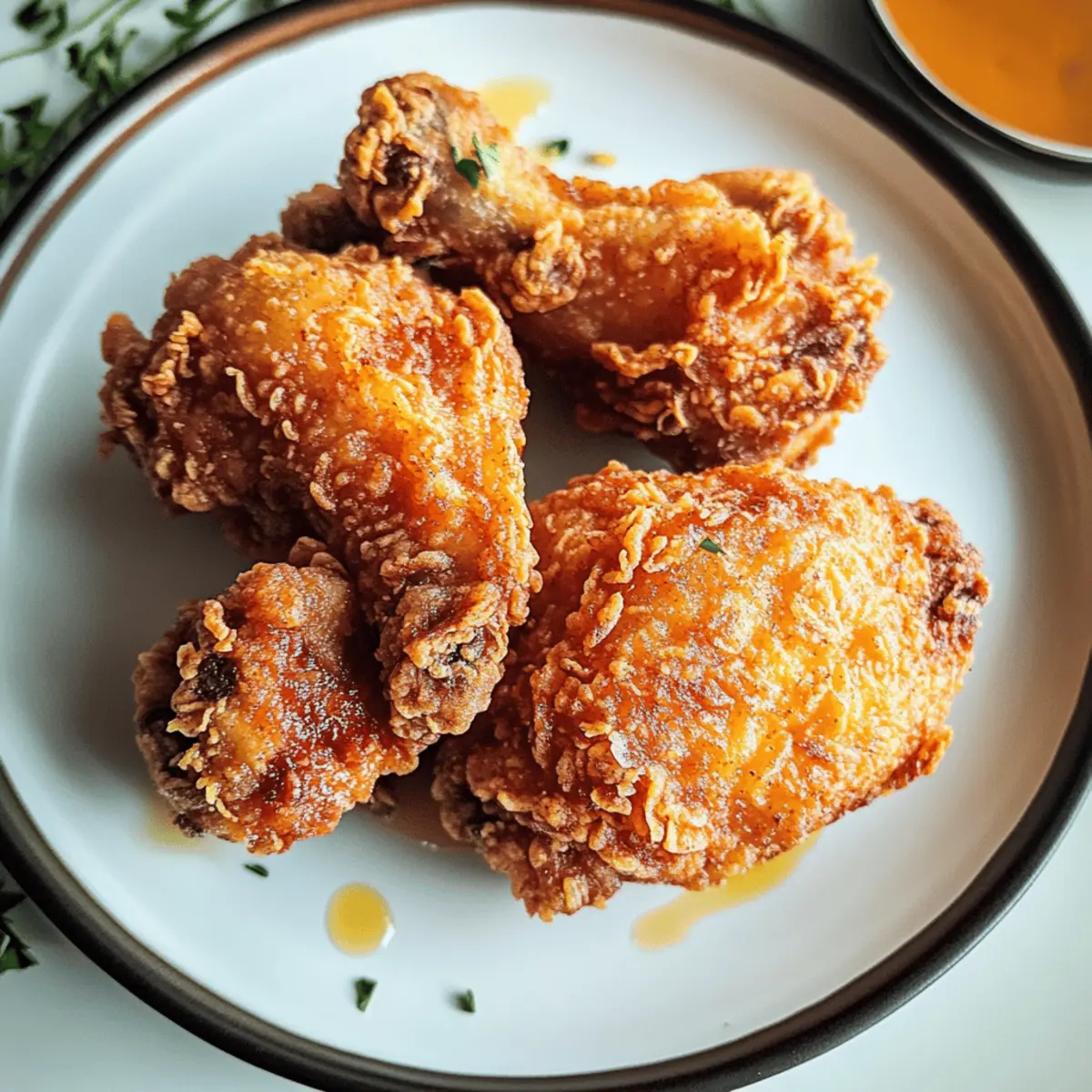 Die knusprige, würzige Buttermilch-Hühnchen ist mehr als nur ein Gericht; sie ist eine kulinarische Umarmung, die jedem Festmahl einen Hauch von Extravaganz verleiht. Das Geheimnis liegt in der perfekten Kombination aus Buttermilchmarinade und einer geheimen Gewürzmischung, die dem Hühnchen nicht nur eine goldene Knusprigkeit verleiht, sondern auch einen verführerischen Kick. Diese saftigen Stücke sind nicht nur einfach zuzubereiten, sondern auch ein absoluter Hit bei jeder Zusammenkunft – ideal für alle, die leidenschaftlich gerne kochen und die schnelle Küche satt haben. Bereit, euch in ein Geschmackserlebnis zu stürzen, das eure Gäste begeistern wird? Lasst uns gleich loslegen! Warum wirst du dieses Rezept lieben? Einfachheit: Die Zubereitung ist unkompliziert und benötigt nur grundlegende Kochfähigkeiten. Würziges Geschmackserlebnis: Die Mischung aus Gewürzen und der Buttermilchmarinade sorgt für einen intensiven, unvergesslichen Geschmack, der jedes Gericht bereichert. Perfekte Knusprigkeit: Mit unserer speziellen Mischung wird das Hühnchen außen herrlich knusprig, während es innen saftig bleibt. Vielfältige Serviermöglichkeiten: Ob als BBQ-Highlight oder in einem köstlichen Spicy Chicken Sandwich, die Möglichkeiten sind endlos. Vielleicht magst du auch unser Jalapeno Popper Rezept ausprobieren! Begeisterung garantiert: Dieses Rezept ist ein Publikumsmagnet – es wird sicher von Freunden und Familie geliebt. Buttermilch-Hühnchen Zutaten Für die Marinade • Buttermilch – sorgt für Feuchtigkeit und einen herrlichen Geschmack; kann durch Joghurt ersetzt werden. • Heißsoße – verleiht der Marinade eine würzige Note; die Menge kann je nach gewünschtem Schärfegrad angepasst werden. • Knoblauchpulver – gibt einen herzhaften Geschmack; frischer gehackter Knoblauch kann verwendet werden. • Zwiebelpulver – bringt eine subtile Süße; Zwiebelflakes sind ein gute Alternative. Für die Panade • Allzweckmehl – bildet die knusprige Beschichtung; glutenfreies Mehl ist eine geeignete Option. • Maisstärke – trägt zu einer knusprigeren Textur bei; kann nicht ersetzt werden. • Cayennepfeffer – sorgt für Schärfe; die Menge sollte nach Geschmack angepasst werden. • Getrockneter Oregano, getrockneter Thymian, Kreuzkümmel, Chilipulver – perfektionieren den Geschmack; können nach persönlichem Geschmack angepasst werden. Für das Hühnchen • Hühnchenstücke (Schlegel, Oberkeulen, Flügel) – Hauptzutat; je nach Vorliebe wählen. • Pflanzenöl – zum Frittieren; ein hohes Rauchpunkt ist wichtig; kann durch Raps- oder Erdnussöl ersetzt werden. Das besondere an diesem Buttermilch-Hühnchen ist die harmonische Verbindung aus Aromen, die jedes Biss zu einem Genuss macht! Schritt-für-Schritt-Anleitungen für knuspriges, würziges Buttermilch-Hühnchen Schritt 1: Buttermilchmarinade vorbereiten Geben Sie die Buttermilch in eine große Schüssel und fügen Sie die heiße Sauce hinzu. Rühren Sie gut um, bis die Sauce gleichmäßig in der Buttermilch verteilt ist. Die Mischung sollte cremig und gut vermischt erscheinen. Diese Marinade sorgt dafür, dass das Hühnchen saftig und würzig wird, während es die Aromen durchdringt. Schritt 2: Gewürze hinzufügen In die Buttermilchmischung das Knoblauchpulver, Zwiebelpulver, geräuchertes Paprikapulver, Pfeffer und Salz einstreuen. Mit einem Schneebesen gut umrühren, bis alle Gewürze gleichmäßig verteilt sind. Diese Gewürzmischung verleiht dem Hähnchen seinen charakteristischen Geschmack. Achten Sie darauf, dass keine Klumpen bleiben. Schritt 3: Hühnchen marinieren Legen Sie die Hühnchenstücke in die Buttermilchmischung und stellen Sie sicher, dass sie gleichmäßig bedeckt sind. Es ist wichtig, dass jedes Stück gut eingetaucht ist. Decken Sie die Schüssel ab und stellen Sie sie für mindestens 2 Stunden oder über Nacht in den Kühlschrank. Dies gibt der Marinade genügend Zeit, um in das Hühnchen einzuziehen. Schritt 4: Paniermischung vorbereiten In einer separaten Schüssel das Allzweckmehl, die Maisstärke, Cayennepfeffer, Oregano, Thymian, Kreuzkümmel und Chilipulver vermengen. Rühren Sie alles mit einem Schneebesen um, bis die Mischung homogen ist. Diese Paniermischung sorgt für die knusprige Textur, die Sie beim Frittieren des Hühnchens wünschen. Schritt 5: Hühnchen panieren Nehmen Sie die Hühnchenstücke aus der Buttermilch, lassen Sie die überschüssige Marinade abtropfen und tauchen Sie sie in die Paniermischung. Drücken Sie leicht an, damit die Mischung gut haftet. Die Hühnchenstücke sollten gleichmäßig und dick mit der Panade bedeckt sein, um eine perfekte Knusprigkeit zu erreichen. Schritt 6: Öl erhitzen Erhitzen Sie das Pflanzenöl in einer tiefen Pfanne bei mittlerer Temperatur bis es 175 °C erreicht. Verwenden Sie ein Küchenthermometer, um die Temperatur sicherzustellen. Wenn das Öl heiß ist, ist es bereit, das Hühnchen zu frittieren, sodass es schön sprudelnd aussieht und an den Rändern leicht schimmert. Schritt 7: Hühnchen frittieren Legen Sie die Hühnchenstücke in das heiße Öl und achten Sie darauf, nicht zu viele Stücke auf einmal hinzuzufügen. Frittieren Sie das Hühnchen für etwa 12-15 Minuten, bis es goldbraun und knusprig ist. Nutzen Sie ein thermometer während des Frittiervorgangs, um sicherzustellen, dass das Hühnchen eine innere Temperatur von 74 °C erreicht. Schritt 8: Hühnchen abtropfen lassen Entfernen Sie das frittierte Hühnchen mit einer Zange und legen Sie es auf ein Drahtgitter, um überschüssiges Öl abtropfen zu lassen. Lassen Sie das Hühnchen einige Minuten ruhen, bevor Sie es servieren, damit es seinen Saft und die Knusprigkeit bewahrt. Damit wird sichergestellt, dass jedes Stück zart und voll im Geschmack ist. Bereite dein Buttermilch-Hühnchen im Voraus vor! Die knusprige, würzige Buttermilch-Hühnchen ist perfekt für die Mahlzeitvorbereitung! Du kannst die Buttermilchmarinade sowie die Zubereitung der Pa