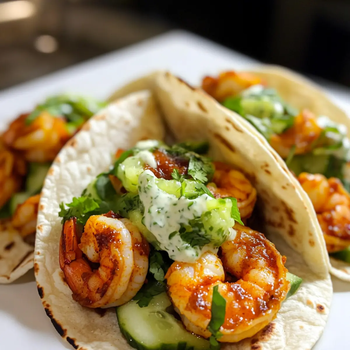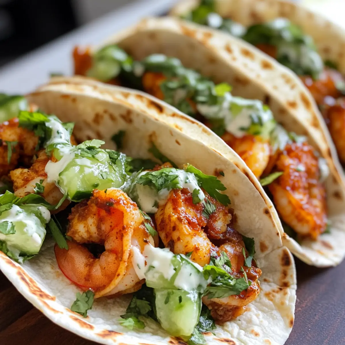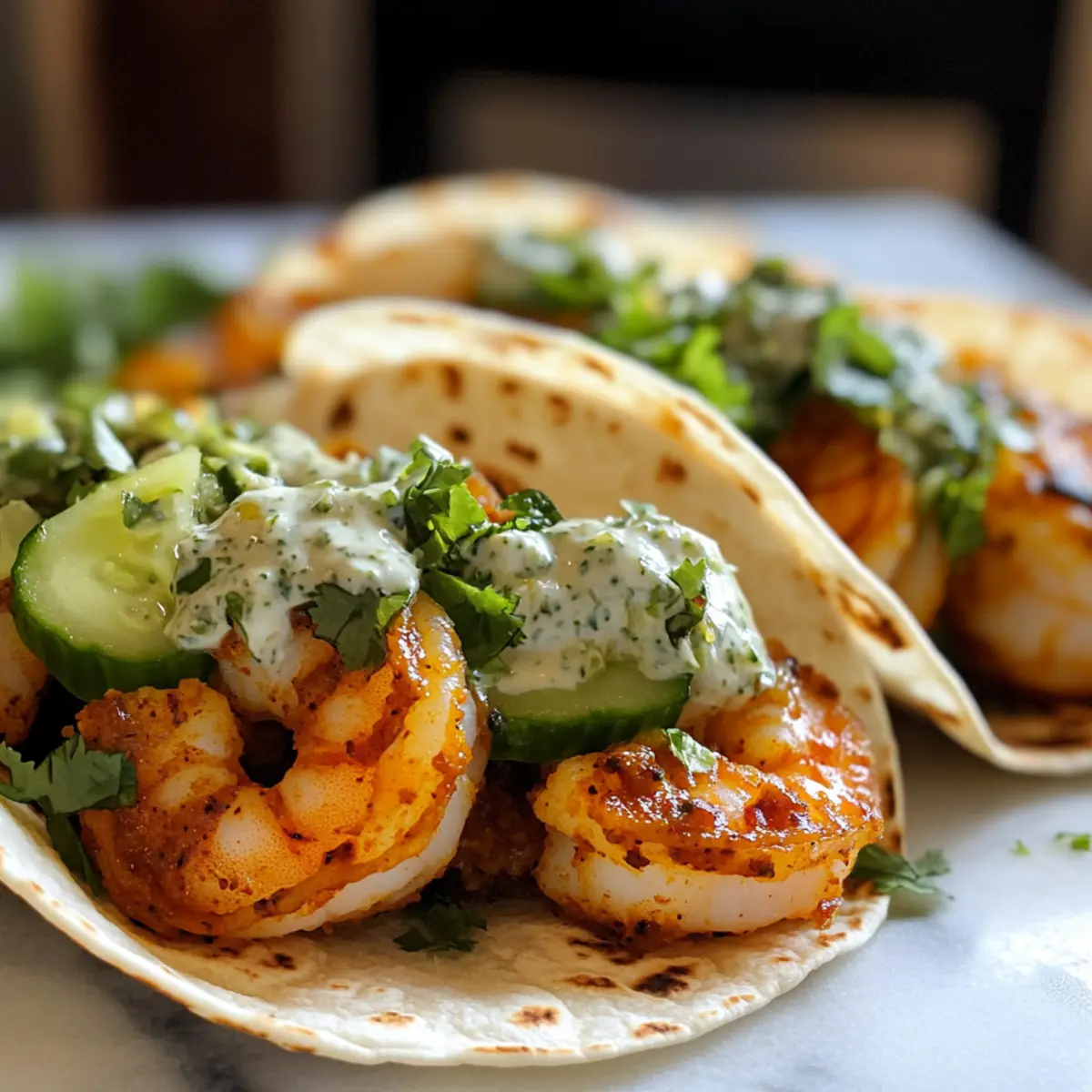 In einem kleinen Strandcafé in Jamaika entdeckte ich die köstlichsten Tacos, die man sich nur vorstellen kann. Die Kombination aus zartem Curry-Garnelen, einer erfrischenden Gurkenchutney und einer cremigen Sauce hat mich sofort in ihre Bahn gezogen. Diese Curry Garnelen Tacos bringen den Geschmack der Karibik direkt in deine Küche. Mit einer Zubereitungszeit von nur 30 Minuten sind sie der perfekte Begleiter für einen schnellen Abend, der gleichzeitig deine Geschmacksnerven kitzelt. Das Beste daran? Sie sind nicht nur schnell gemacht, sondern auch ein echter Publikumsliebling, ideal für jeden Anlass. Bist du bereit, deine Taco-Abende auf das nächste Level zu heben? Warum wirst du diese Tacos lieben? Einzigartiger Geschmack: Diese Curry Garnelen Tacos vereinen die Aromen der Karibik mit einer modernen Note, perfekt fürs Taco-Fieber. Schnell und einfach: In nur 30 Minuten fertig, sind sie ideal für jeden, der wenig Zeit hat, aber großartigen Geschmack möchte. Vielseitige Optionen: Ob du die Garnelen durch Hähnchen oder Tofu ersetzen oder weitere Toppings wie Avocado hinzufügen möchtest, das Rezept lässt viel Spielraum für Kreativität. Perfekte Textur: Der Kontrast zwischen saftigen Garnelen, knusprigem Gurkenchutney und cremiger Sauce sorgt für ein unvergessliches Geschmackserlebnis. Beliebter Hit: Diese Tacos sind toll für Familienessen oder Partys – jeder wird nach dem Rezept fragen! Lass dich inspirieren außer durch die Traditionellen Tacos, auch durch die Aromen Jamaikas. Zutaten • • Curry Garnelen Tacos Zutaten Für die Garnelen Rohgarnelen – Stelle sicher, dass sie geschält und entdarmt sind, um die Zubereitung zu erleichtern. Curry-Pulver – Passt gut zu den Garnelen und gibt ihnen eine schöne Schärfe; passe die Menge nach deinem persönlichen Geschmack an. Knoblauchpulver – Verstärkt den herzhaften Geschmack der Garnelen. Salz & Pfeffer – Unverzichtbar für die Würze; nach Geschmack anpassen. Pflanzenöl – Ideal zum Braten der Garnelen; kann durch Olivenöl ersetzt werden für einen anderen Geschmack. Butter – Verleiht den Garnelen eine extra Reichhaltigkeit; kann für eine milchfreie Variante weggelassen werden. Für das Gurkenchutney Große Gurke – Erfrischend für das Chutney; könnte bei Bedarf auch durch Zucchini ersetzt werden. Saft von 1/2 Zitrone – Bringt Säure ins Spiel; Limettensaft kann als Alternative verwendet werden. Koriander – Gibt dem Chutney Frische; wenn du kein Koriander magst, kannst du Petersilie benutzen. Knoblauch (Zehe) – Frisch gerieben, um den Geschmack zu intensivieren. Scotch Bonnet-Pfeffer – Für die Schärfe; Jalapeño ist eine mildere Option. Für die cremige Sauce Mayonnaise – sorgt für eine cremige Konsistenz; griechischer Joghurt kann als leichtere Alternative verwendet werden. Limettensaft – Für zusätzliche Frische; bei Bedarf mehr hinzufügen. Honig – Bringt Süße in die Sauce; agavendicksaft ist eine vegane Ersatzoption. Gemahlener Kreuzkümmel – Verleiht warme, erdige Noten; kann weggelassen werden, wenn nicht verfügbar. Für die Tacos Kleine Mehltortillas – Perfekt für die Füllung; Mais-Tortillas sind für eine glutenfreie Variante geeignet. Römersalat – Optional für Knusprigkeit und Frische. Mit diesen Zutaten meisterst du die Zubereitung deiner Curry Garnelen Tacos im Handumdrehen! Step-by-Step Instructions for Curry Garnelen Tacos Step 1: Garnelen würzen Gib die geschälten und entdarmten Rohgarnelen in eine Schüssel. Füge Curry-Pulver, Knoblauchpulver, Salz und Pfeffer hinzu und mische alles gut durch, sodass die Garnelen gleichmäßig gewürzt sind. Lass sie für etwa 10 Minuten stehen, damit die Aromen einziehen können, während du die Pfanne vorbereitest. Step 2: Garnelen braten Erhitze in einer großen beschichteten Pfanne bei mittlerer Hitze 2 Esslöffel Pflanzenöl. Wenn das Öl heiß ist, füge die gewürzten Garnelen hinzu und brate sie für 4 bis 5 Minuten, bis sie rosa und durchgegart sind. Achte darauf, die Garnelen regelmäßig zu wenden, damit sie gleichmäßig garen und nicht anbrennen. Step 3: Gurkenchutney zubereiten Schäle und reibe die große Gurke, drücke überschüssige Flüssigkeit aus und gib sie in eine Schüssel. Füge den frisch geriebenen Knoblauch, Koriander, gehackten Scotch Bonnet-Pfeffer und den Saft von 1/2 Zitrone hinzu. Mische alles gut durch und würze das Chutney nach Geschmack mit Salz und Pfeffer, um die Aromen abzurunden. Step 4: Sauce vorbereiten In einer mittelgroßen Schüssel vermischst du die Mayonnaise mit dem Saft einer Limette, Honig und gemahlenem Kreuzkümmel. Rühre alles gut um, bis die Sauce cremig und homogen ist. Probiere die Sauce und passe den Geschmack nach Wunsch an, füge bei Bedarf mehr Limettensaft oder Honig hinzu, um den perfekten Ausgleich zu finden. Step 5: Tacos zusammenstellen Erhitze die kleinen Mehltortillas in einer trockenen Pfanne bei niedriger Hitze für etwa 30 Sekunden auf jeder Seite, bis sie warm sind. Bestreiche jede Tortilla mit der cremigen Sauce, lege eine Portion der gebratenen Curry Garnelen darauf und toppe sie großzügig mit dem Gurkenchutney. Klappe die Tortillas zusammen und serviere die Tacos sofort für den besten Geschmack. Meal Prep für Curry Garnelen Tacos Diese Curry Garnelen Tacos sind ideal für die Vorausplanung! Du kannst die Garnelen bis zu 3 Tage im Voraus marinieren, um den Geschmack zu intensivieren. Einfach die gewürzten Garnelen in einem luftdichten Behälter im Kühlschrank aufbewahren, um die Frische zu bewahren. Auch das Gurkenchutney kannst du schon 24 Stunden vorher zubereiten; bewahre es kühl, damit die Aromen gut durchziehen. Wenn es Zeit zum Servieren ist, erhitze die Garnelen in einer Pfanne für ein paar Minuten und wärme die Tortillas leicht auf. So hast du ein köstliches Gericht, das trotz der Vorausplanung genauso lecker bleibt wie frisch zubereitet! Curry Garnelen Tacos: Variationen & substitutions Gestalte deine Curry Garnelen Tacos ganz n