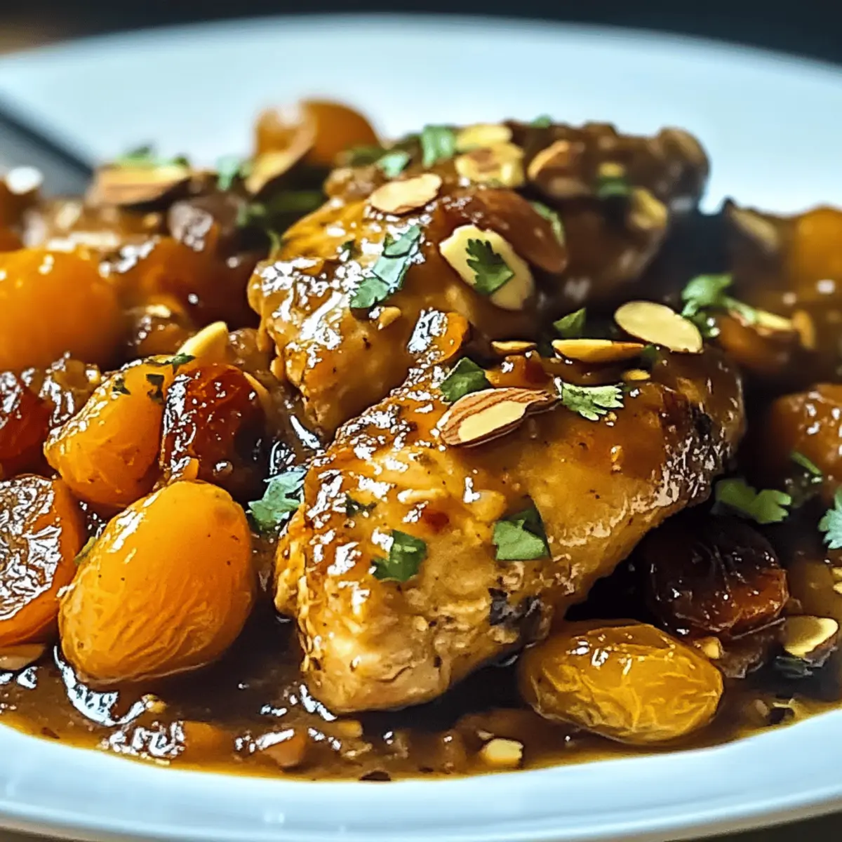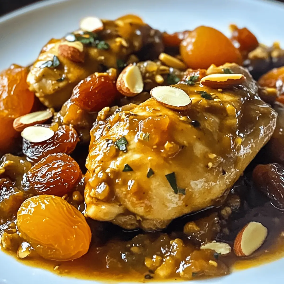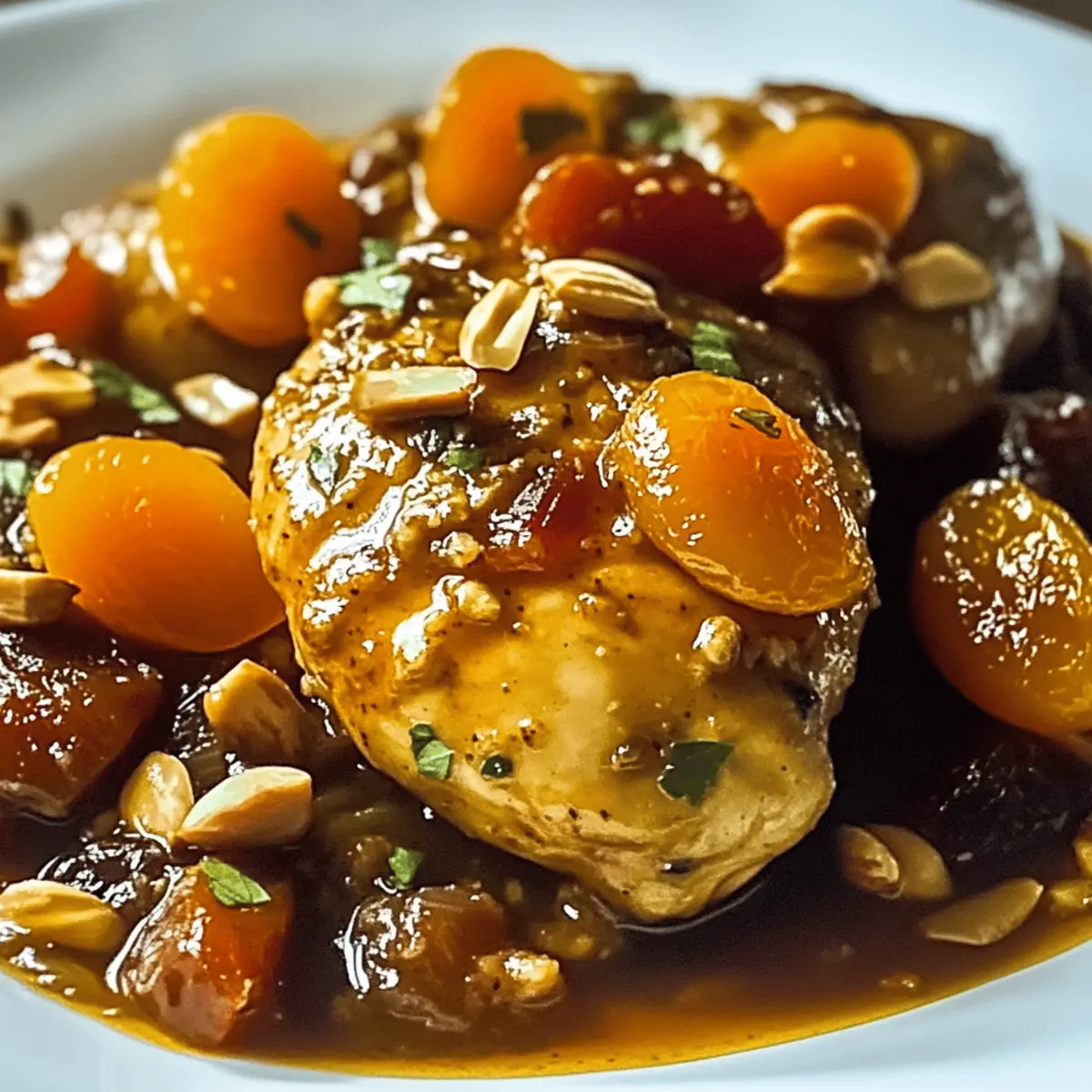 Hast du schon einmal die verführerischen Aromen Persiens auf deinem Teller erleben wollen? Mein Rezept für Savory Persian Chicken mit getrockneten Früchten und Mandeln lässt dich in eine Welt voller Gewürze eintauchen, in der köstlicher Kreuzkümmel und aromatischer Zimt harmonisch zusammenkommen. Dieses Gericht ist nicht nur einfach zuzubereiten, sondern auch ideal für glutenfreie Ansprüche und eine wahre Freude für Familie und Freunde. Perfekt für hektische Abende oder besondere Anlässe, wird es schnell zum Highlight auf deinem Tisch. Bist du bereit, dich auf eine geschmackliche Reise zu begeben? Warum wirst du dieses Rezept lieben? Vielfalt in Geschmack: Mit einer Mischung aus getrockneten Früchten und Mandeln vereint dieses Gericht die süßen und herzhaften Aromen, die die persische Küche so besonders machen. Einfache Zubereitung: Die unkomplizierten Schritte machen es dir leicht, dieses köstliche Hähnchen auch an hektischen Tagen zuzubereiten. Gesunde Wahl: Ideal für glutenfreie Diäten, wird es sowohl den anspruchsvollsten Geschmäckern als auch Gesundheitsbewussten gerecht. Perfekt zum Teilen: Ob bei einem Familienessen oder einem freundschaftlichen Gathering, dieses Rezept wird garantiert zum Gesprächsthema. Traditionelles Flair: Erlebe die authentische persische Geschmacksvielfalt, die deinem Abendessen eine besondere Note verleiht, ähnlich wie beim Marry Chicken Ramen oder dem Crack Chicken Gnocchi. Der Ausgang: Zutaten für persisches Hähnchen • Hier sind die wichtigen Zutaten, die du für ein köstliches persisches Hähnchen benötigst. Für das Hähnchen Hühnchen – Bevorzuge Oberschenkel oder Keulen, um saftige Ergebnisse zu erzielen; vermeide Brustfilets, da sie austrocknen können. Olivenöl – Ideal zum Anbraten, verleiht einen reichen Geschmack; kann bei Bedarf durch Rapsöl ersetzt werden. Für die Gewürze Kurkuma – Fügt eine goldene Farbe und erdigen Geschmack hinzu; alternativ kann Currypulver verwendet werden. Gemahlener Kreuzkümmel – Sorgt für einen warmen, nussigen Geschmack; keine direkte Substitution empfohlen. Gemahlener Zimt – Balanciert die herzhaften Noten mit subtiler Süße; Muskatnuss ist eine interessante Abwechslung. Schwarzer Pfeffer – Steigert die milde Schärfe; frisch gemahlen intensiviert das Aroma. Salz – Nach Geschmack anpassen; bevorzugt Meersalz oder koscheres Salz benutzen. Für die aromatischen Zutaten Zwiebel – In Scheiben schneiden und anbraten, bis sie goldbraun sind, um den Geschmack zu vertiefen; alternativ können Schalotten verwendet werden. Knoblauch – Fein gehackt für ein intensives Aroma; keine Substitution empfohlen. Für die Brühe und Süße Hühnerbrühe – Fügt Tiefe hinzu; für gesündere Optionen ist eine natriumarme Brühe empfehlenswert; Gemüsebrühe eignet sich für die vegetarische Version. Frischer Zitronensaft – Bringt Frische; frisch gepresst ist am besten, Flaschenware sollte vermieden werden. Getrocknete Aprikosen oder Pflaumen – Bieten einen süßen Kontrast; beide sind ideal für mehr Geschmacksvielfalt; getrocknete Feigen können als Ersatz verwendet werden. Geröstete Mandelstifte – Sorgen für einen köstlichen Crunch; können durch geröstete Kürbiskerne ersetzt werden, um das Rezept nussfrei zu gestalten. Für die Garnitur Frische Petersilie oder Koriander – Für die Garnitur, um das Gericht lebendiger zu machen; frische Minzblätter bieten eine erfrischende Abwandlung. Dieses Rezept für persisches Hähnchen wird dir nicht nur die Aromen Persiens näherbringen, sondern auch dafür sorgen, dass du und deine Lieben begeistert sein werden! Schritt-für-Schritt-Anleitung für das köstliche persische Hähnchen Schritt 1: Hähnchen vorbereiten Spüle die Hähnchenteile gründlich ab und tupfe sie mit einem Küchentuch trocken. Dies ist wichtig, um eine schöne, knusprige Haut zu erzielen. Achte darauf, dass das Hähnchen gut abgetrocknet ist, bevor du mit dem Kochen beginnst. Schritt 2: Zwiebeln anbraten Erhitze in einer großen Pfanne 2 Esslöffel Olivenöl bei mittlerer Hitze. Füge die in Scheiben geschnittenen Zwiebeln hinzu und brate sie für etwa 8-10 Minuten an, bis sie goldbraun und weich sind. Dies sorgt für eine aromatische Basis in deinem persischen Hähnchen. Schritt 3: Knoblauch und Gewürze hinzufügen Sobald die Zwiebeln goldbraun sind, rühre den gehackten Knoblauch, Kurkuma, gemahlenen Kreuzkümmel, Zimt, schwarzen Pfeffer und Salz ein. Sauté für 2-3 Minuten, bis die Gewürze aromatisch sind. Achte darauf, die Hitze nicht zu hoch einzustellen, damit die Gewürze nicht verbrennen. Schritt 4: Hähnchen anbraten Lege die Hähnchenteile mit der Hautseite nach unten in die Pfanne und brate sie 5 Minuten lang, bis sie goldbraun sind. Drehe die Hähnchenstücke um und brate sie weitere 5 Minuten auf der anderen Seite an. Diese Schritte sind entscheidend, um den vollen Geschmack in deinem köstlichen persischen Hähnchen zu entwickeln. Schritt 5: Ablöschen Gieße den frischen Zitronensaft über das Hähnchen und nutze einen Holzlöffel, um den Boden der Pfanne abzukratzen und alle köstlichen Röstaromen aufzulösen. Dadurch wird die Sauce noch geschmackvoller und du bereitet das Hähnchen perfekt für die nächsten Schritte vor. Schritt 6: Brühe und Früchte hinzufügen Füge die Hühnerbrühe und die getrockneten Früchte in die Pfanne hinzu. Bringe alles zum Köcheln und achte darauf, dass es blubbert. Dies wird die Aromen zusammenbringen und zaubert eine köstliche Soße für dein persisches Hähnchen. Schritt 7: Sanft köcheln lassen Reduziere die Hitze, decke die Pfanne ab und lasse das Hähnchen für etwa 40 Minuten sanft köcheln. Dies ermöglicht es dem Hähnchen, die Aromen zu absorbieren und schön zart zu werden. Überprüfe gelegentlich den Gargrad und rühre um, um ein Anbrennen zu verhindern. Schritt 8: Mandeln hinzufügen Nehme den Deckel ab, rühre die gerösteten Mandelstifte unter und lasse alles weitere 5-10 Minuten ohne Deck