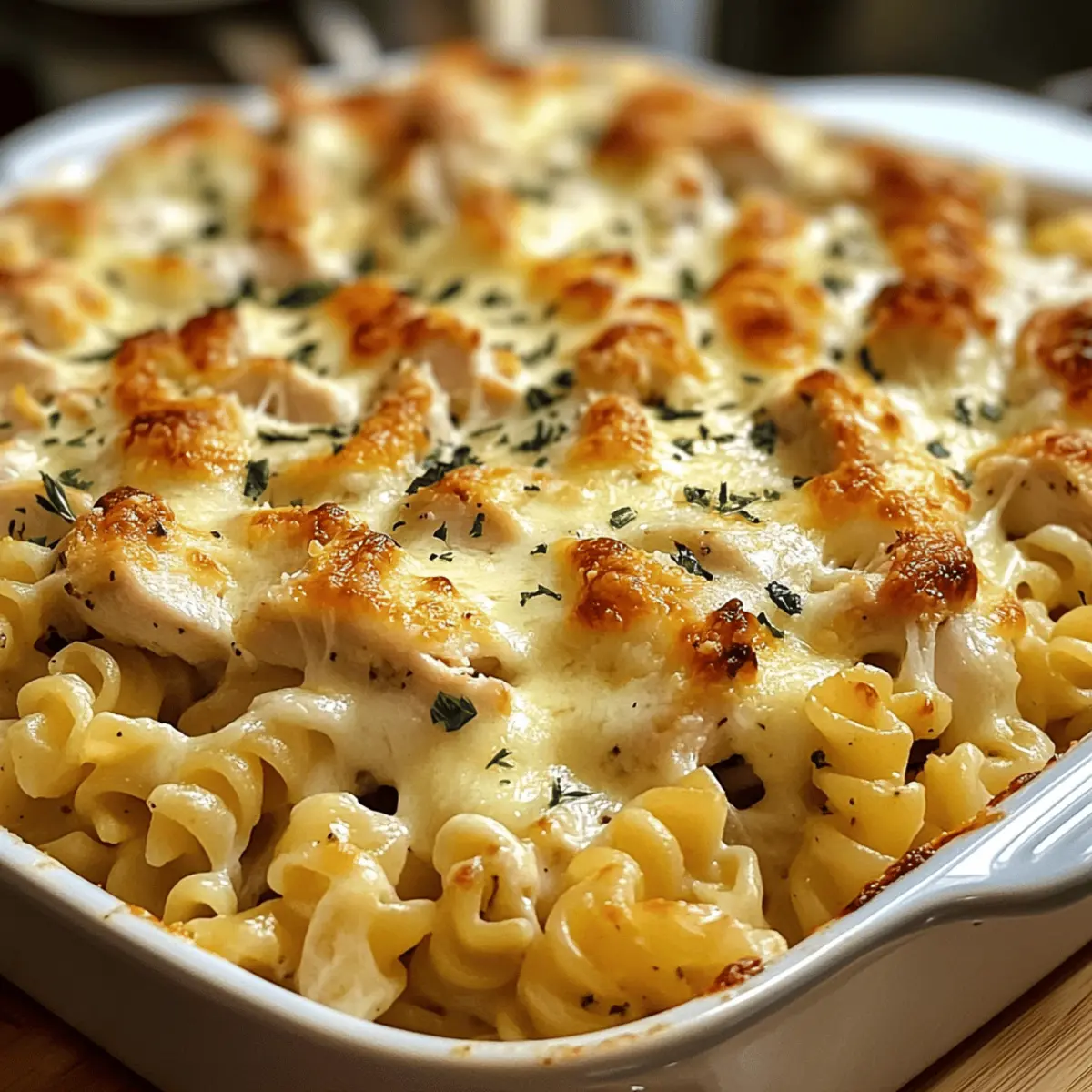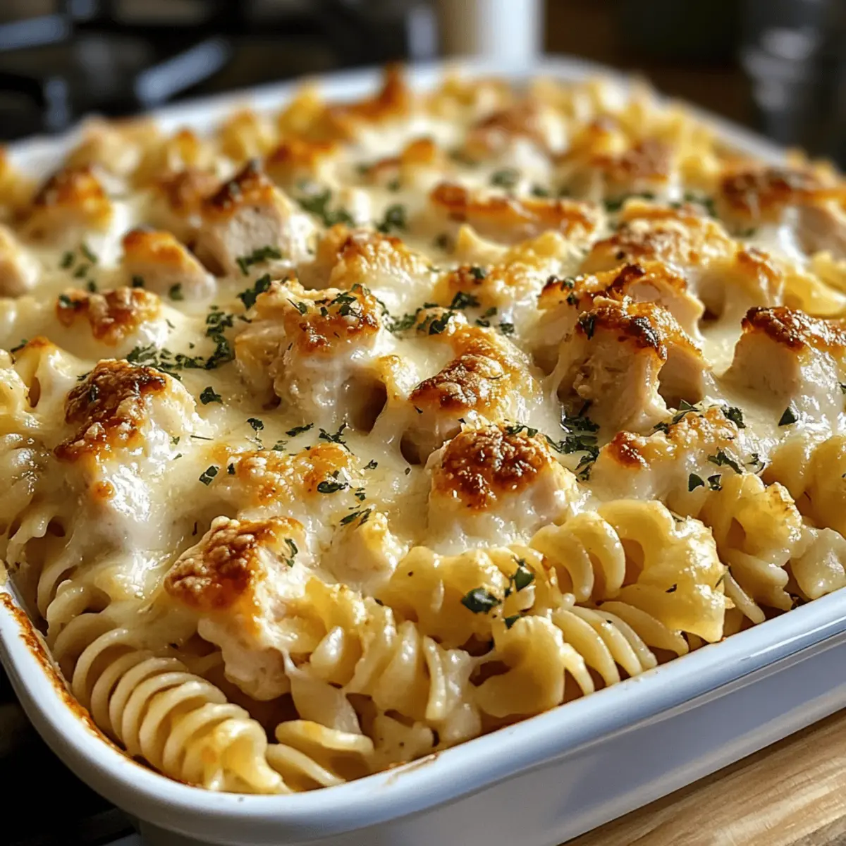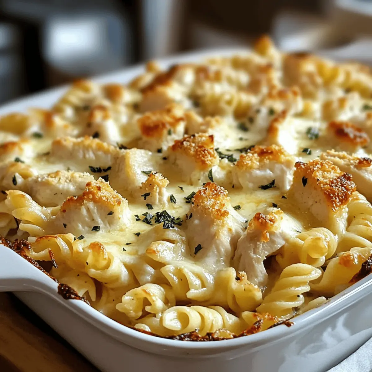 Ich war kürzlich am Abend in meiner Küche und der verlockende Duft von gebratenem Knoblauch umhüllte den Raum. Es war der perfekte Moment, um mit meiner Lieblingszutat zu experimentieren: Pasta. So entstand das Rezept für mein Cremiges Knoblauch-Parmesan-Hühnchen-Pasta-Bake – ein wahrhaftiger Seelenwärmer. Diese herzliche Auflaufform kombiniert zarte Rotini-Pasta mit saftigem Hühnchen, alles umhüllt von einer reichhaltigen Alfredo- und Knoblauch-Parmesan-Soße. Ein weiteres Plus ist, dass dieses Rezept nicht nur einfach zuzubereiten ist, sondern auch bei Familienfeiern oder gemeinsamen Abendessen alle um den Tisch versammelt. Möchtest du wissen, wie diese köstliche Kombination entsteht und wie du deine Liebsten überraschen kannst? Warum wirst du dieses Rezept lieben? Einfachheit: Die Zubereitung ist kinderleicht und erfordert nur grundlegende Kochkenntnisse. Dieses Rezept ist perfekt für alle, die sich nach einer köstlichen Mahlzeit sehnen, ohne stundenlang in der Küche zu stehen. Herzhaft und lecker: Die Kombination aus Hühnchen, Pasta und einer cremigen Knoblauch-Parmesan-Soße bietet einen Geschmack, der jeden begeistern wird. Ideal, um Familie und Freunde bei einem gemütlichen Abendessen zu verwöhnen. Vielfältig: Du kannst ganz einfach Variationen ausprobieren, wie z.B. Gemüse hinzufügen oder das Hühnchen durch eine pflanzliche Alternative ersetzen, um jedem Gaumen gerecht zu werden. Zeitersparnis: Perfekt für beschäftigte Wochentage; du kannst das Gericht sogar im Voraus zubereiten und später einfach backen. Familienfreundlich: Dieses Gericht zieht nicht nur Kinder, sondern auch Erwachsene an den Tisch. Ideal, um das gemeinsame Essen zu einem besonderen Erlebnis zu machen. Schau dir auch meine anderen Rezepte an, wie zum Beispiel den Avocado Toast Radieschen oder den Cheeseburger Auflauf Familie, um noch mehr Inspiration für deine nächste Mahlzeit zu bekommen! Zutaten für die cremige Knoblauch-Parmesan-Pasta • Um dieses köstliche Gericht zuzubereiten, sind folgende Zutaten notwendig: Für die Pasta und das Hühnchen Rotini-Nudeln – bilden die perfekte Basis für die Soße und halten sie gut fest; eine gute Alternative wären Penne oder Rigatoni. Hühnchen (gewürfelt oder zerrissen) – sorgt für eine herzliche Proteinquelle; du kannst auch fertiges Rotisserie-Hühnchen verwenden, um Zeit zu sparen. Für die Soße Alfredo-Soße – verleiht dem Gericht eine wunderbare Cremigkeit und kann auch selbst gemacht werden für einen persönlichen Touch. Knoblauch-Parmesan-Soße – bringt den reichen Geschmack von Knoblauch und Käse in die Mischung. Für den Käse und das Topping Mozzarella-Käse – sorgt für das schmelzende und cremige Erlebnis; füge mehr hinzu, wenn du es extra käsig magst. Parmesan-Käse – verleiht dem Gericht einen scharfen, nussartigen Geschmack, der perfekt mit der Soße harmoniert. Für die Würze Salz und schwarzer Pfeffer – zum Abschmecken und Verfeinern der Aromen; unerlässlich für den Geschmack. Pasta-Kochwasser – hilft, die Konsistenz der Soße anzupassen; nützlich, wenn die Mischung zu dick ist. Mit diesen Zutaten wird das Ergebnis nicht nur köstlich, sondern auch eine wahre Freude für die Familie und Freunde. Mach dich bereit, dieses komfortable Gericht zusammenzustellen und den herzlichen Duft von frisch gekochtem Essen in deiner Küche zu genießen! Schritt-für-Schritt-Anleitung für Cremige Knoblauch-Parmesan-Pasta Step 1: Backofen vorheizen Heize den Ofen auf 190 °C (375 °F) vor und fette eine 23×33 cm große Auflaufform leicht ein, um ein Ankleben zu verhindern. Während der Ofen aufheizt, hast du genug Zeit, um die Pasta zu kochen, was den gesamten Kochprozess beschleunigt und dir eine angenehme Arbeitsatmosphäre in deiner Küche beschert. Step 2: Pasta kochen Koche die Rotini-Nudeln in einem großen Topf mit kochendem, gesalzenem Wasser, bis sie al dente sind (ca. 8-10 Minuten). Denke daran, eine Tasse vom Kochwasser der Pasta aufzuheben, bevor du die Nudeln abgießt. Dies hilft dir, die Konsistenz der Soße später anzupassen, falls sie zu dick wird. Step 3: Zutaten mischen In einer großen Rührschüssel vermenge die gekochte Pasta, das gewürfelte Hühnchen, die Alfredo-Soße, die Knoblauch-Parmesan-Soße, die Hälfte des Mozzarellas und die Hälfte des Parmesans. Schmecke die Mischung mit Salz und Pfeffer ab. Wenn die Mischung zu dick ist, füge etwas von dem aufbewahrten Pasta-Wasser hinzu und vermische alles gründlich, bis eine cremige Konsistenz entsteht. Step 4: Mischung in die Auflaufform geben Übertrage die Pasta-Hühnchen-Mischung in die vorbereitete Auflaufform und verteile sie gleichmäßig. Achte darauf, dass die Mischung gut in der Form verteilt ist, damit sie gleichmäßig gart. Dies ist der Moment, in dem sich die Aromen verbinden und deins Cremige Knoblauch-Parmesan-Hühnchen-Pasta-Bake entstehen kann. Step 5: Käse hinzufügen Streue den restlichen Mozzarella und Parmesan gleichmäßig über die Oberfläche der Pasta-Mischung. So erhält dein Gericht eine köstlich schmelzende und goldene Kruste, die bei jedem Bissen für Freude sorgt. Dies wird deine Familienmitglieder an den Tisch ziehen, sobald der Duft sich im Raum entfaltet. Step 6: Backen Decke die Auflaufform mit Aluminiumfolie ab und backe das Ganze im vorgeheizten Ofen für 20-25 Minuten, bis der Käse geschmolzen und die Mischung blubbert. Halte nach den ersten 20 Minuten Ausschau, um sicherzustellen, dass nichts anbrennt, und die köstlichen Aromen perfekt miteinander verschmelzen. Step 7: Optional gratinieren Falls du eine extra knusprige Oberseite möchtest, entferne die Folie und grille das Gericht für 2-3 Minuten, wobei du aufmerksam bleibst, um ein Verbrennen zu vermeiden. Diese letzte Berührung sorgt für einen verlockenden Kontrast zur cremigen Füllung. Step 8: Ruhen lassen und servieren Lass die Cremige Knoblauch-Parmesan-Pasta für etwa 5 Minuten ruhen, bevor du sie servierst. Diese Ruhezeit lässt die Ar