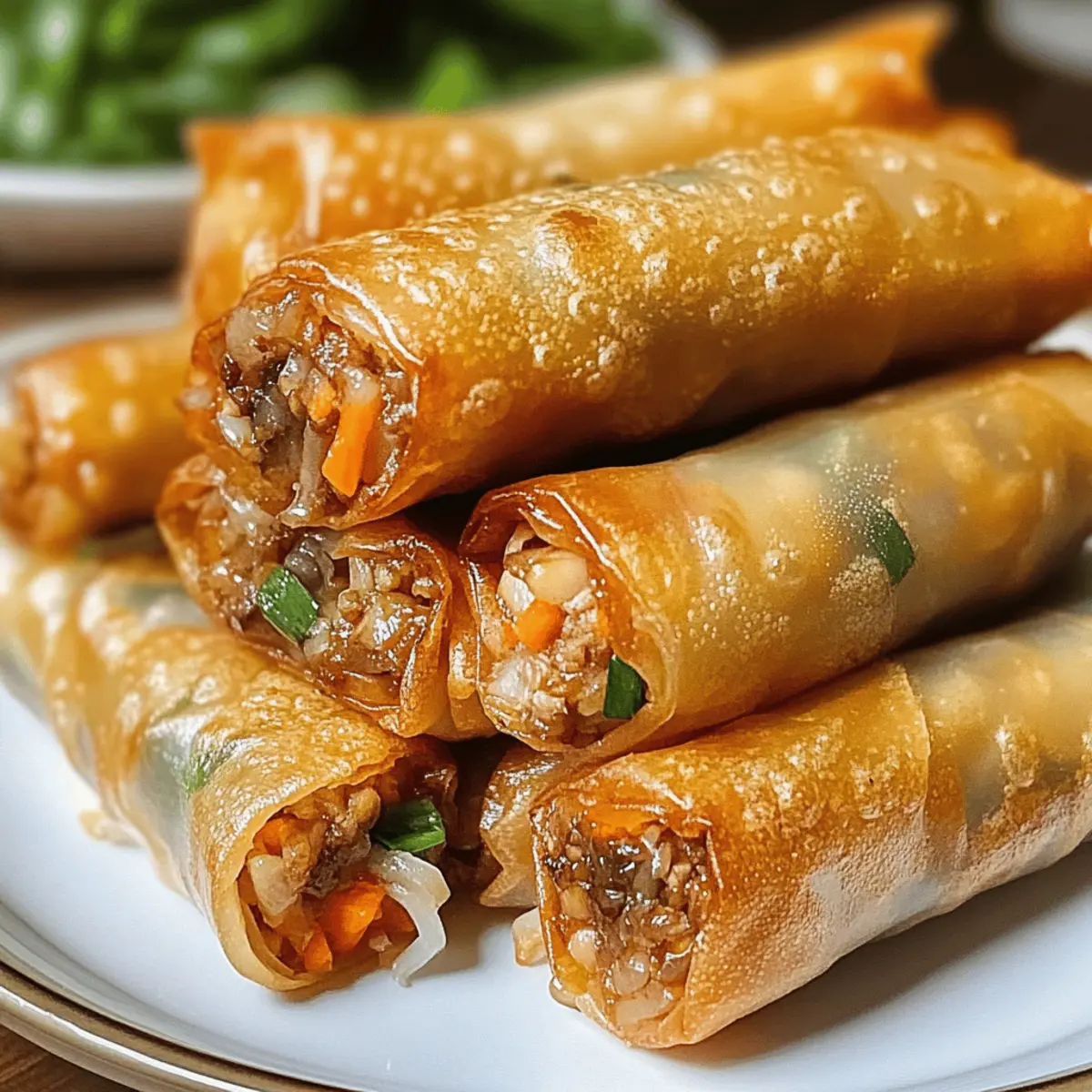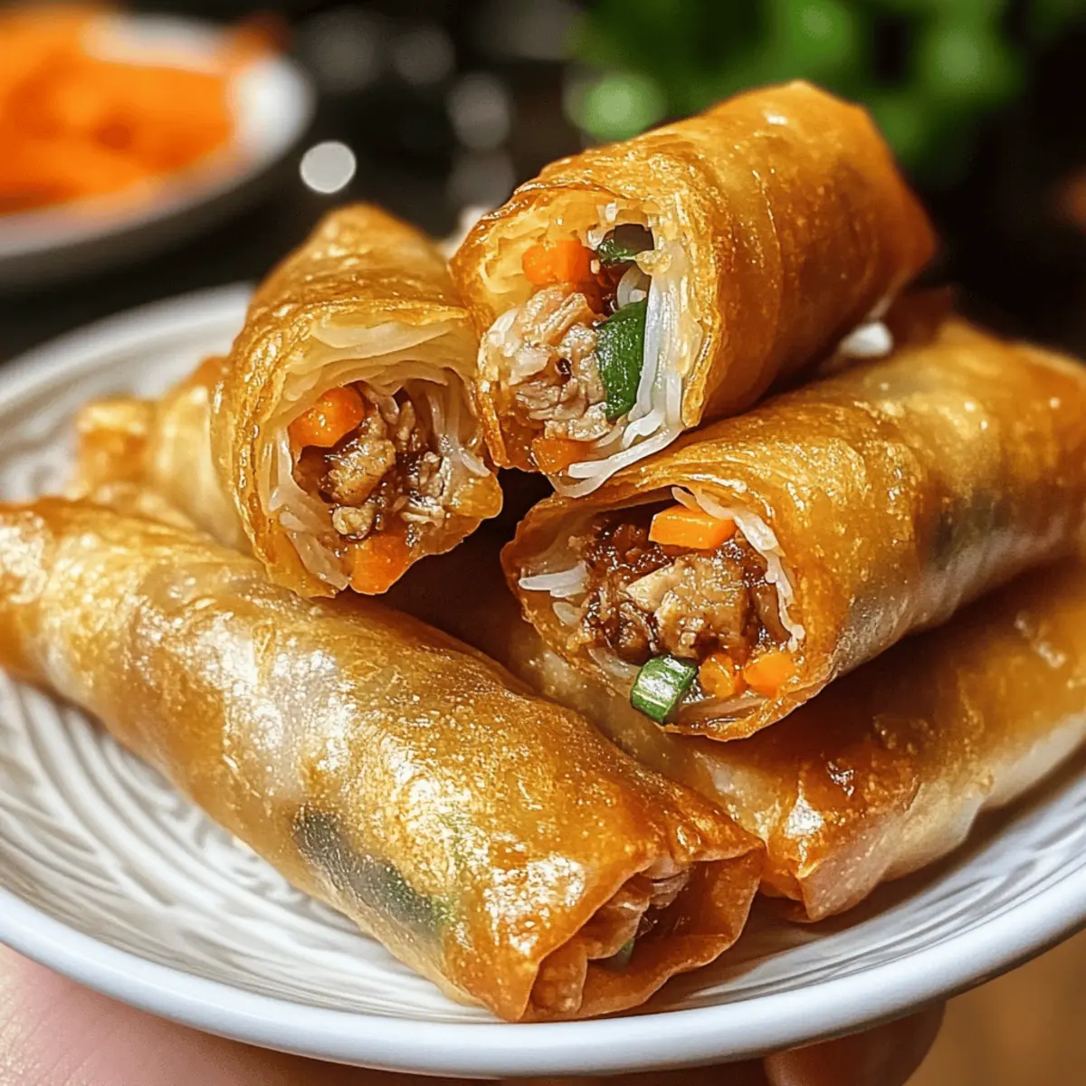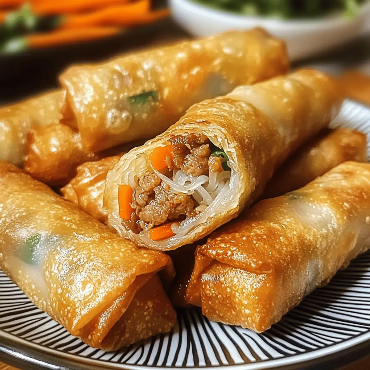 • Variationen ausprobieren: Experimentiere mit unterschiedlichen Füllungen wie Garnelen oder Tofu, um die Aromen zu variieren. So passt du die Frühlingsrollen an deine Vorlieben an!