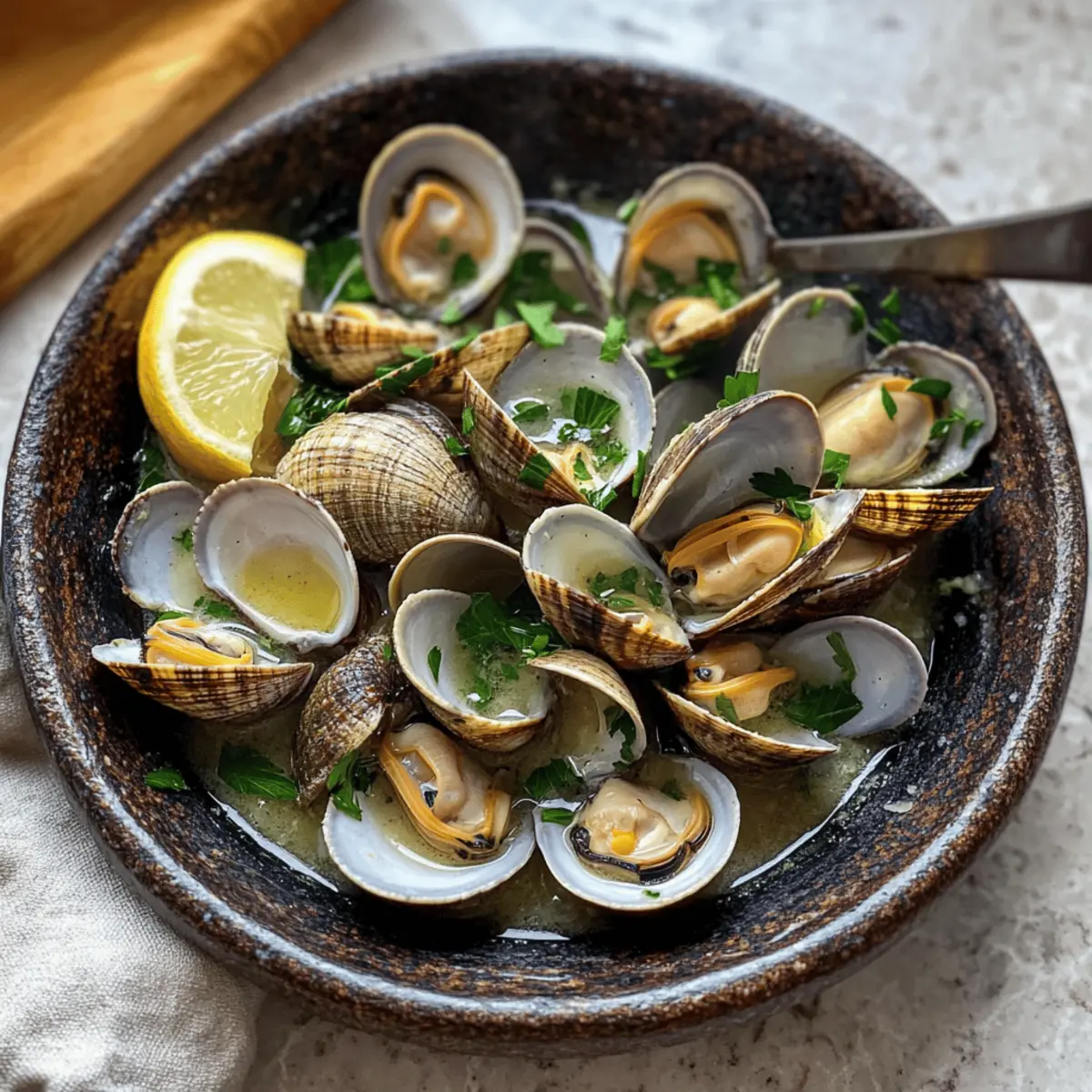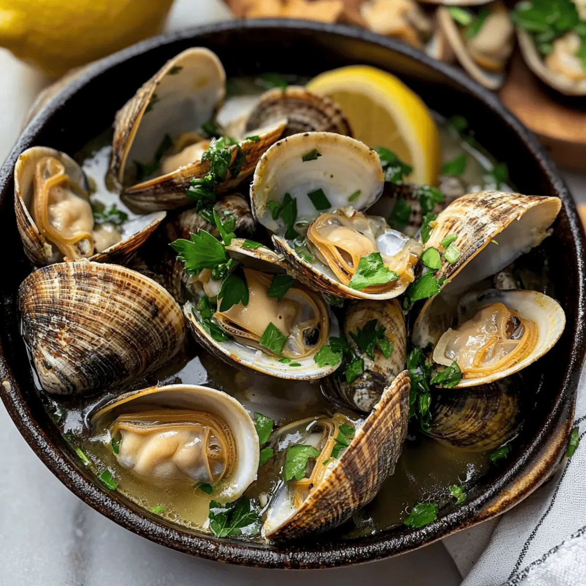 Wenn ich an einen entspannten Abend am Meer denke, kommen mir sofort die Aromen von dampfenden Muscheln mit Weißwein und Knoblauch in den Sinn. Dieses Rezept für gedämpfte Muscheln ist nicht nur ein einfacher Weg, frischen Meeresgeschmack auf den Tisch zu bringen, sondern auch eine wunderbare Gelegenheit, dein Können als Hobbykoch unter Beweis zu stellen. Die Zubereitung ist schnell und einfach – perfekt für alle, die nach einem köstlichen Gericht suchen, das sich mit knusprigem Brot wunderbar kombinieren lässt. Stell dir vor, du sitzt mit Freunden zusammen und genießt diese herzhafte Delikatesse, die die Sinne verführt. Neugierig, wie du dieses maritime Erlebnis selbst kreieren kannst? Lass uns direkt in die Zubereitung eintauchen! Warum werden Sie dieses Rezept lieben? Einfachheit: Die Zubereitung ist mühelos und benötigt nur grundlegende Kochkenntnisse, ideal für Anfänger und Profis. Frischer Geschmack: Jede Muschel entfaltet durch die Kombination von Weißwein und Knoblauch einen vollmundigen, maritime Geschmack, der Erinnerungen an den letzten Strandurlaub weckt. Vielseitigkeit: Ob als Hauptgericht oder leichtes Abendessen mit Freunden, dieses Rezept ist unglaublich anpassbar. Ergänzen Sie beispielsweise das Gericht mit frischem Spinat oder Tomaten für zusätzlichen Geschmack und Nährstoffe. Schnell zubereitet: In weniger als 30 Minuten können Sie diese Delikatesse servieren – perfekt für hektische Abende! Crowd-Pleaser: Dieses Gericht könnte Ihre Gäste umhauen und alle an den Tisch ziehen. Perfekt für gesellige Abende! Entdecken Sie auch unsere High Protein Einfach Bites oder die leckeren Nudeln Mit Sojasauce, die ebenfalls geschmacklich überzeugen! Zutaten für gedämpfte Muscheln • Entdecken Sie die perfekten Aromen! Für die Muscheln Palourde Muscheln – Frische und Hauptproteinquelle; überprüfen Sie, ob sie sauber und lebendig sind, bevor Sie sie kochen. Zitronensaft von 1 Zitrone – Bringt Helligkeit ins Gericht und fügt Säure hinzu; frischer Zitronensaft ist zu bevorzugen. Für die Brühe Ungesalzene Butter – Fügt dem Sud Reichhaltigkeit und Tiefe hinzu; kann für eine leichtere Version durch Olivenöl ersetzt werden. Olivenöl – Zum Anbraten von Gemüse; extra natives Olivenöl verstärkt den Geschmack. Schalotte – Bietet einen milden Zwiebelgeschmack; kann bei Bedarf durch gelbe Zwiebeln ersetzt werden. Knoblauchzehen – Bringt aromatische Tiefe; nutzen Sie mehr für ein intensiveres Aroma. Rote Pfefferflocken oder zerdrückte Chilis – Optionale Schärfe; weglassen für ein milderes Gericht. Weißwein – Verleiht Säure und verstärkt den Muschelgeschmack; wählen Sie einen trockenen Weißwein oder Gemüsebrühe für eine alkoholfreie Variante. Für die Garnitur Frische Petersilienblätter – Für Garnitur und zusätzlichen Geschmack; kann durch Schnittlauch ersetzt oder weggelassen werden. Genießen Sie dieses köstliche und einfache Rezept für gedämpfte Muscheln mit Weißwein, perfekt für einen entspannten Abend mit Freunden oder Familie! Schritt-für-Schritt-Anleitung für gedämpfte Muscheln mit Weißwein Step 1: Pfanne erhitzen Erhitze eine große Pfanne bei mittlerer Hitze und füge die ungesalzene Butter sowie das Olivenöl hinzu. Lasse die Butter schmelzen, bis sie leicht schäumt und eine goldige Farbe annimmt. Achte darauf, dass das Fett nicht bräunt, um die Aromen nicht zu überlagern. Step 2: Schalotten anbraten Gib die gehackten Schalotten in die Pfanne und dünste sie für 2-3 Minuten, bis sie weich und durchscheinend sind. Rühre dabei regelmäßig um, sodass sie nicht anbrennen und ihr süßlicher Geschmack zur Geltung kommt. Step 3: Knoblauch und Gewürze hinzufügen Füge den gehackten Knoblauch und optional die roten Pfefferflocken hinzu und brate alles für weitere 1-2 Minuten an. Achte darauf, dass der Knoblauch nicht zu dunkel wird, da dies den Geschmack beeinträchtigen könnte. Die Aromen sollten jetzt intensiv und einladend sein. Step 4: Weißwein und Muscheln einfüllen Gieße den Weißwein in die Pfanne und füge die gereinigten Palourde-Muscheln hinzu. Rühre alles gut um, sodass die Muscheln gleichmäßig mit der Brühe bedeckt sind. Das Publikum für die gedämpften Muscheln sollte jetzt hungrig sein! Step 5: Muscheln dämpfen Decke die Pfanne ab und lasse die Muscheln 7-9 Minuten dämpfen, bis sich alle Muscheln geöffnet haben. Du wirst den verführerischen Duft des Weins und der Gewürze wahrnehmen; öffne die Pfanne nicht zu früh, um den Dampf nicht zu verlieren. Step 6: Zitronensaft und Petersilie unterrühren Nimm die Pfanne vom Herd und füge den Zitronensaft sowie die gehackte Petersilie hinzu. Rühre die Mischung vorsichtig um, damit sich die frischen Aromen gut entfalten können und die Brühe aromatisch bleibt. Step 7: Sofort servieren Serviere die gedämpften Muscheln sofort zusammen mit knusprigem Brot, damit du die köstliche Brühe auftunken kannst. Achte darauf, die besten Stücke hervorzuheben und jede Muschel perfekt zu präsentieren – so wird das Essen zu einem unvergesslichen Erlebnis! Variationen & Substitutionen Lass deiner Kreativität freien Lauf und entdecke, wie du dieses Gericht ganz nach deinem Geschmack anpassen kannst! Andere Muschelsorten: Probiere anstelle der Palourde Muscheln auch Manila- oder Littleneck-Muscheln aus. Jede bringt ihre eigene Note mit. Cremige Brühe: Für einen reichhaltigeren Geschmack füge einen Schuss Sahne direkt nach dem Kochen hinzu. Das verleiht dem Gericht eine samtige Textur. Gemüse hinzufügen: Mische frischen Spinat oder Kirschtomaten für zusätzliche Vitamine und einen Farbkick unter die Muscheln. Dies bereichert nicht nur den Geschmack, sondern auch die Nährstoffe. Glutenfrei: Verwende glutenfreies Brot oder serviere die Muscheln über Zucchini-Nudeln. So bleibt das Gericht leicht und trotzdem zufriedenstellend! Scharf oder milde: Du kannst die roten Pfefferflocken ganz weglassen oder die Menge je nach Schärfewunsch anpassen