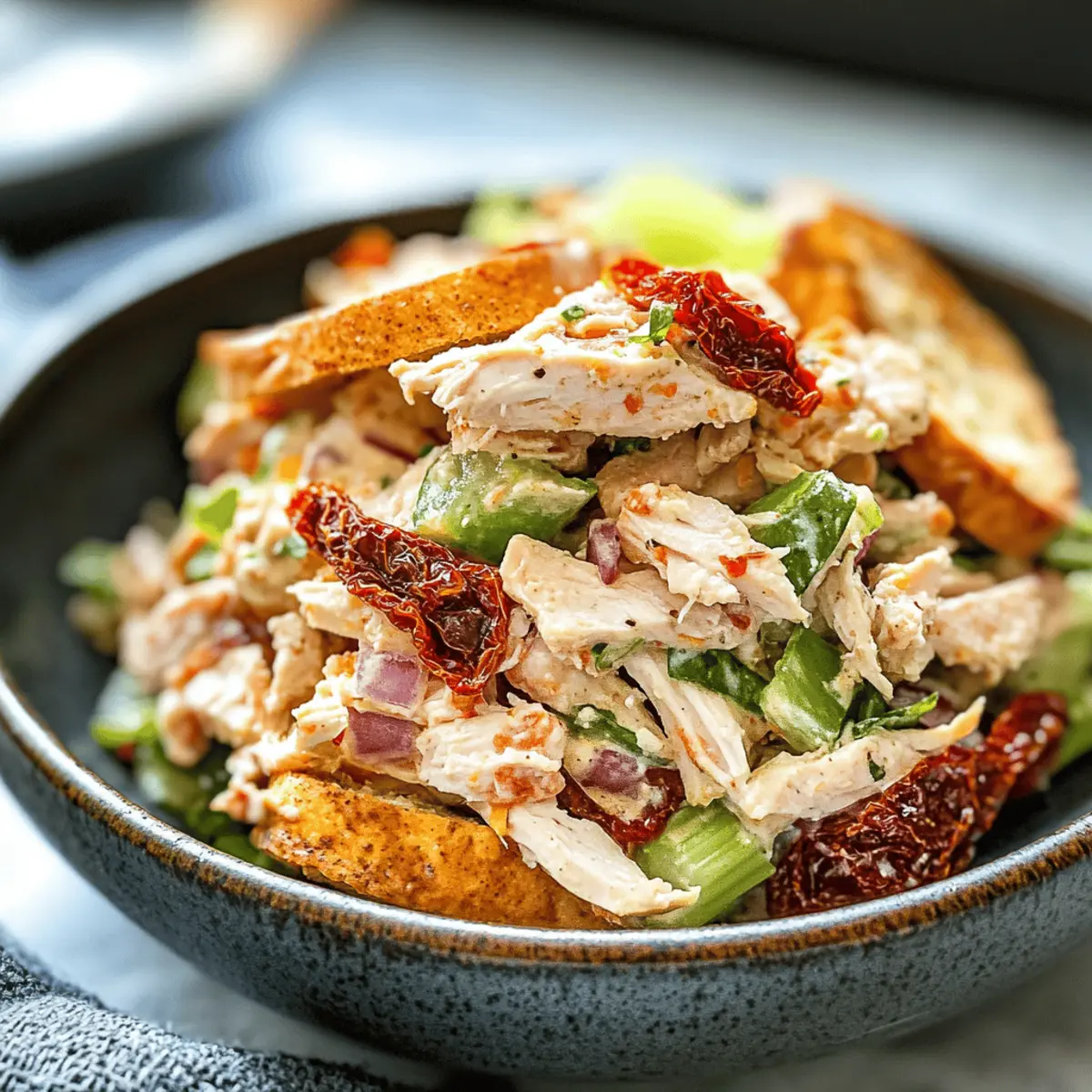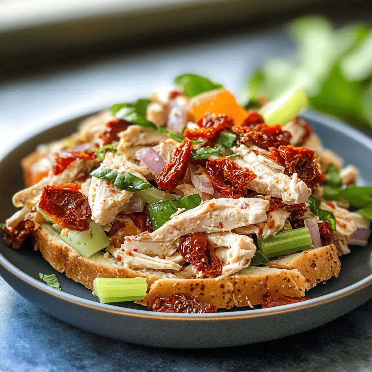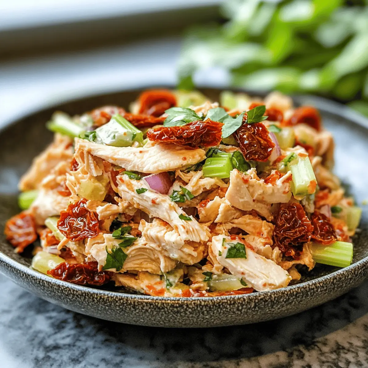 Als ich das letzte Mal durch den Markt schlenderte, wurde ich von dem verlockenden Aroma sonnengetrockneter Tomaten angezogen. Diese kleinen roten Schätze verwandeln sich in der Hand eines leidenschaftlichen Kochs in ein wahres Geschmackserlebnis. Heute teile ich mit euch mein Rezept für einen köstlichen High-Protein Sonnengetrocknete Tomaten-Hühnchen-Salat mit Zitrus-Basilikum-Dressing. Dieser Salat ist nicht nur in nur 15 Minuten zubereitet, sondern bietet auch eine gesunde und proteinreiche Option für dein Mittagessen oder ein leichtes Abendessen. Die cremige Zitrus-Basilikum-Sauce hebt die Aromen hervor und macht jeden Bissen zu einem Fest der Frische und des Geschmacks. Bist du bereit, deine Küche mit diesem sensationellen Rezept aufzupeppen? Warum ist dieser Salat so besonders? Frische Zutaten wie sonnengetrocknete Tomaten und Basilikum verleihen diesem Hähnchensalat einen einzigartigen Geschmack, der begeistert. Einfachheit ist Trumpf: In nur 15 Minuten zubereitet, eignet er sich perfekt für ein schnelles Mittagessen. Gesund und proteinreich – ideal für eine ausgewogene Ernährung! Vielseitig einsetzbar in Sandwiches oder als leichte Beilage. Entdecke auch das Rezept für unser Kinder Bueno Dessert für die süße Note nach dem Essen! Zutaten für den Sonnengetrockneten Tomaten-Hähnchensalat • Entdecke die köstlichen Zutaten, die diesen Salat zu einem unschlagbaren Genuss machen! Für den Salat Zerissene Hähnchenbrust – Hauptproteinquelle, perfekt für eine gesunde Mahlzeit. Sonnengetrocknete Tomaten in Öl – Verleihen dem Salat einen tangigen Geschmack; wähle die julienne geschnittenen für eine einfache Handhabung. Sellerie – Sorgt für einen knackigen Biss in jedem Löffel. Rote Zwiebel – Fügt Süße und Textur hinzu; ersetze diese durch Frühlingszwiebeln für einen milderen Geschmack. Für das Dressing Griechischer Joghurt – Cremige Basis, die das Gericht aufhellt und den Proteingehalt erhöht. Mayonnaise – Unverzichtbar für die klassische Cremigkeit des Hähnchensalats. Frisches Basilikum – Hebt den Geschmack mit frischen, aromatischen Noten hervor. Knoblauch – Verleiht dem Dressing Tiefe; verwende eine gehackte Zehe. Zitronensaft – Bringt die Aromen zum Strahlen und verstärkt die Sonnengetrockneten Tomaten. Salz & schwarzer Pfeffer – Essenzielle Gewürze, die den Geschmack perfekt abrunden. Schritt-für-Schritt-Anleitung für den High-Protein Sonnengetrockneten Tomaten-Hähnchensalat Schritt 1: Hähnchen vorbereiten Beginne mit der Zubereitung des Hähnchens. Wenn du hausgemachtes Hähnchen verwendest, koche es in einem Topf mit leicht gesalzenem Wasser für etwa 20 Minuten, bis es durchgegart ist. Lass das Hähnchen abkühlen und zerrisse es dann mit zwei Gabeln oder zerbrich das fertige, bereits zerrissene Hähnchen in einer großen Schüssel. Schritt 2: Gemüse vorbereiten Nimm die sonnengetrockneten Tomaten und schneide sie in kleine Stücke. Würfle den Sellerie und die rote Zwiebel fein. Gib alles zusammen mit dem zerrissenen Hähnchen in die große Schüssel. Du solltest eine ansprechende Mischung aus bunten Zutaten und Texturen sehen, die den Salat aufhellt und geschmacklich bereichert. Schritt 3: Dressing zubereiten In einer separaten Schüssel vermischst du den griechischen Joghurt, die Mayonnaise, das gehackte Basilikum, den Knoblauch und den Zitronensaft. Würze das Dressing mit Salz und schwarzem Pfeffer. Rühre alles gut um, bis die Mischung cremig und gleichmäßig ist. Der High-Protein Sonnengetrocknete Tomaten-Hähnchensalat erhält dadurch einen frischen, aromatischen Kick. Schritt 4: Alles vermengen Gieße das Dressing über die Hähnchen-Gemüse-Mischung und verwende eine große Gabel oder einen Löffel, um alles sanft zu vermengen. Achte darauf, dass das Dressing gleichmäßig verteilt ist und jede Zutat gut bedeckt wird. Du solltest eine cremige Konsistenz erreichen, die die verschiedenen Aromen hervorragend vereint. Schritt 5: Servieren Der High-Protein Sonnengetrocknete Tomaten-Hähnchensalat kann sofort serviert werden. Genieße ihn auf knusprigen Keksen, in einem Sandwich mit frischen Blättern oder als Wrap in einer Tortilla. Achte darauf, dass du die frischen und lebendigen Farben des Salats zur Geltung bringst, um das Essen einladend zu gestalten. Aufbewahrungstipps für den Sonnengetrockneten Tomaten-Hähnchensalat Kühlschrank: Bewahre den Salat in einem luftdichten Behälter im Kühlschrank auf, wo er bis zu 3 Tage frisch bleibt. Zimmertemperatur: Dieser Salat sollte nicht länger als 2 Stunden bei Raumtemperatur stehen, um die Frische zu gewährleisten. Einfrieren: Es wird nicht empfohlen, diesen Salat einzufrieren, da die Textur der Zutaten nach dem Auftauen beeinträchtigt wird. Wiedererwärmung: Der Salat kann kalt serviert werden; ein erneutes Erwärmen ist nicht notwendig, um seine Frische und Aromen zu bewahren. Variationen & Ersatzmöglichkeiten für den Sonnengetrockneten Tomaten-Hähnchensalat Lass deiner Kreativität freien Lauf und passe dieses Rezept ganz nach deinem Geschmack an! Vegetarisch: Ersetze das Hähnchen durch gekochte Kichererbsen oder Linsen für einen sättigenden, pflanzlichen Genuss. Diese Option bietet reichlich Protein und Ballaststoffe. Glutenfrei: Nutze glutenfreie Cracker oder genieße den Salat in einem Salatblatt anstelle von Brot oder Wraps. So bleibt der Genuss auch für Glutenunverträgliche unbeschwert. Nussiger Crunch: Füge gehackte Mandeln oder Walnüsse hinzu, um dem Salat zusätzlichen Biss und gesunde Fette zu verleihen. Die Nüsse bringen eine wunderbare Textur ins Spiel. Avocado: Mische gewürfelte Avocado unter, um eine cremige, reichhaltige Ergänzung zu schaffen. Sie bringt gesunde Fette und schmeckt köstlich zu den sonnengetrockneten Tomaten. Schärfe: Für einen zusätzlichen Kick kannst du etwas gehackte Jalapeño oder eine Prise Chiliflocken im Dressing hinzufügen. So wird der Salat sofort pikant und spannend. Zitrusfrüchte: Ergänze frische Grap