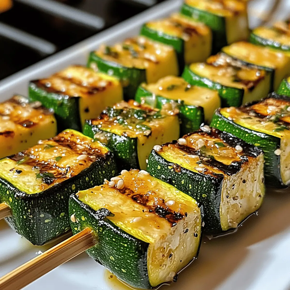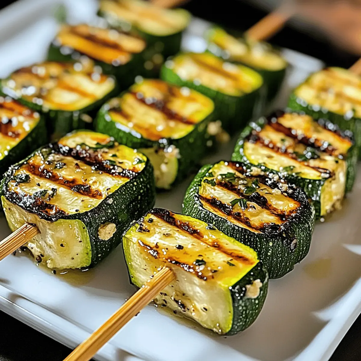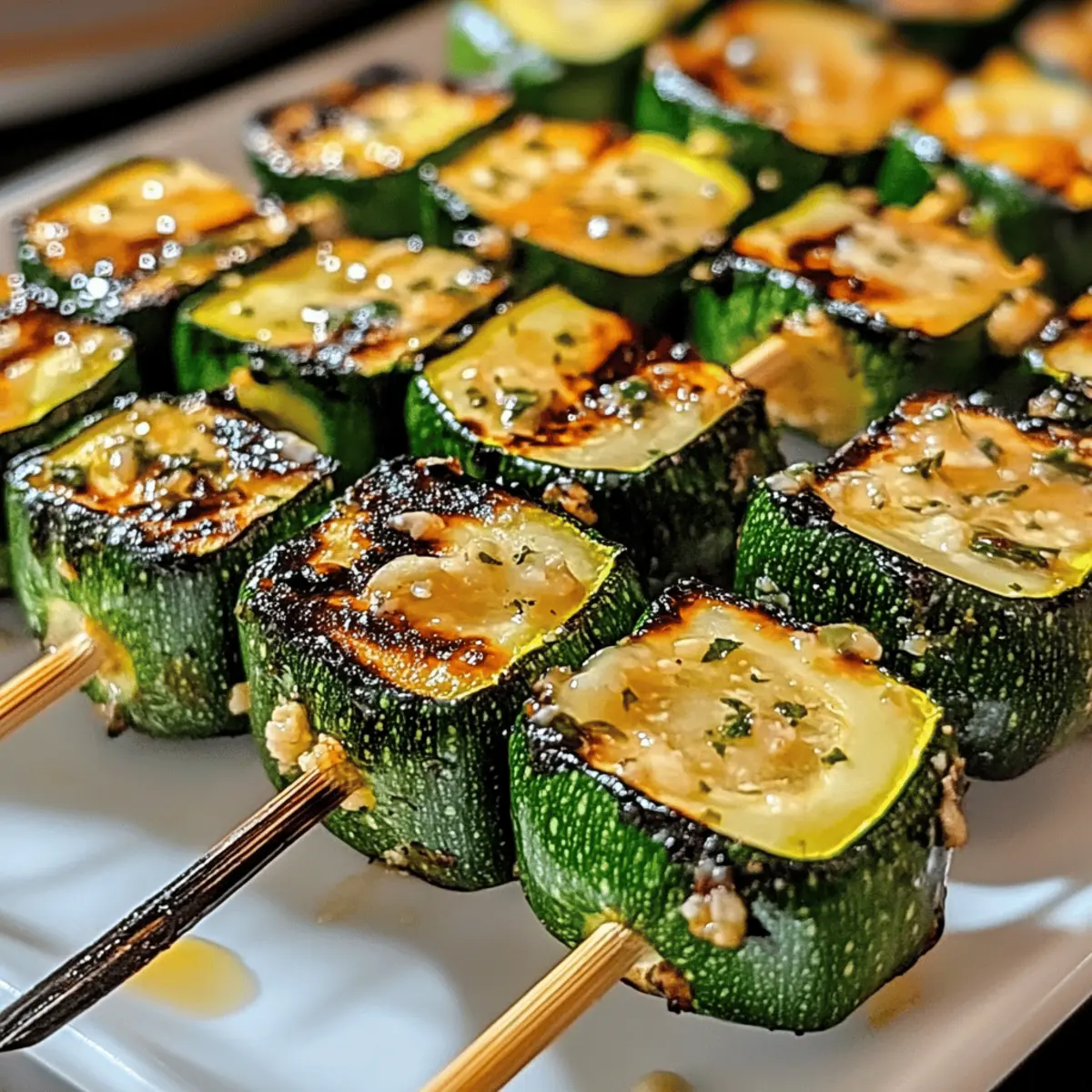 Als ich letzte Woche nach dem perfekten Rezept für eine Sommergrillparty suchte, fiel mein Blick auf die frischen Zucchini in meinem Kühlschrank. In diesem Moment wurde mir klar, dass ich die köstlichen und unkomplizierten Knoblauchbutter-Zucchini-Spieße zaubern musste. Dieses Rezept ist nicht nur blitzschnell zubereitet, sondern auch ein echter Hit bei jedem Grillfest. Die Kombination von zartem Gemüse und aromatischer Knoblauchbutter macht diese Spieße zu einer gesunden Beilage, die jedem Gericht eine besondere Note verleiht. Egal, ob für ein gemütliches Abendessen oder eine farbenfrohe Grillrunde mit Freunden, diese Grillspieße sind immer eine Augenweide und eine kulinarische Freude. Wer hätte gedacht, dass so etwas Einfache so viel Begeisterung auslösen kann? Lassen Sie uns gemeinsam in die Welt dieser unwiderstehlichen Zucchini-Spieße eintauchen und herausfinden, wie Sie sie ganz nach Ihrem Geschmack variieren können! Warum lieben Sie diese Zucchini-Spieße? Einfachheit: Die Zubereitung ist kinderleicht und erfordert nur grundlegende Kochfähigkeiten. Würziger Geschmack: Die Kombination aus Knoblauchbutter und frischen Zucchini verleiht diesen Spießen einen unvergleichlichen Geschmack. Anpassungsfähig: Sie können Zucchini durch Paprika oder Pilze ersetzen und so neue Aromen entdecken. Schnell zubereitet: Perfekt für spontane Grillabende oder als gesunde Beilage zu jeder Mahlzeit. Gesund: Diese Spieße sind kalorienarm und reich an Nährstoffen – ideal für eine ausgewogene Ernährung. Genießen Sie auch meine anderen köstlichen Rezepte wie Kunst Der Espresso oder ein schnelles Kinder Bueno Dessert, um Ihr kulinarisches Repertoire zu erweitern! Zutaten für Knackige Zucchini-Spieße Für die Zucchini-Spieße • Zucchini – Frische, mittelgroße bis große Zucchini sorgen für gleichmäßiges Garen. • Ungesalzene Butter – Verleiht den Spießen reichhaltige Feuchtigkeit; kann durch Olivenöl für eine milchfreie Option ersetzt werden. • Ge presster Knoblauch – Intensiver Geschmack; passen Sie die Menge nach Ihrem Geschmack an, frische Kräuter wie Thymian können das Aroma unterstützen. • Olivenöl – Für eine zusätzliche Geschmacksnote und eine gleichmäßige Beschichtung. • Salz und Pfeffer – Für die perfekte Würze; je nach Vorliebe anpassen. Optional für Topping • Frischer Zitronensaft – Ein Spritzer sorgt für einen erfrischenden Kontrast zu den buttery Aromen. • Parmesan – Eine Prise für eine herzhaftere Note, wenn gewünscht. Diese Zutaten verwandeln einfache Zucchini in ein Grillvergnügen, das Sie nicht missen möchten. Schritt-für-Schritt-Anleitung für Knackige Zucchini-Spieße mit Knoblauchbutter Step 1: Zucchini vorbereiten Waschen Sie die Zucchini gründlich und schneiden Sie sie in dicke Runden oder Halbmonden, damit sie gleichmäßig garen. Die gleichmäßigen Stücke sorgen für eine schöne Textur und vermeiden, dass einige Teile übergart werden, während andere noch roh sind. Legen Sie die geschnittenen Zucchini beiseite und machen Sie sich bereit für die Zubereitung der aromatischen Knoblauchbutter. Step 2: Knoblauchbutter zubereiten Schmelzen Sie die ungesalzene Butter in einem kleinen Topf bei mittlerer Hitze. Fügen Sie den gepressten Knoblauch hinzu und lassen Sie ihn 1-2 Minuten bei sanfter Hitze köcheln, bis er wohlriechend ist, aber vermeiden Sie, dass er bräunt. Diese zarte Knoblauchbutter wird den Zucchini-Spießen einen wunderbaren, intensiven Geschmack verleihen. Step 3: Zucchini würzen Geben Sie die geschnittenen Zucchini in eine große Schüssel und beträufeln Sie sie mit etwas Olivenöl, dann fügen Sie die vorbereitete Knoblauchbutter hinzu. Streuen Sie Salz und Pfeffer nach Geschmack über die Zucchini und vermengen Sie alles gut, damit jedes Stück gleichmäßig mit den vertiefenden Aromen überzogen ist. Step 4: Spieße zusammenstellen Stecken Sie die gewürzten Zucchini-Stücke auf die Spieße. Wenn Sie Holzspieße verwenden, stellen Sie sicher, dass Sie diese vorher 30 Minuten in Wasser eingeweicht haben, um ein Anbrennen auf dem Grill zu verhindern. Platzieren Sie die Spieße in einer Anordnung, die eine gleichmäßige Garung während des Grillens ermöglicht. Step 5: Grillen Heizen Sie Ihren Grill auf mittelhohe Temperatur (ca. 200°C) vor. Legen Sie die Zucchini-Spieße auf den Grill und grillen Sie sie 8-10 Minuten lang, dabei regelmäßig wenden, bis sie zart sind und schöne Grillstreifen aufweisen. Halten Sie ein Auge darauf, damit sie nicht übergaren, und genießen Sie den herrlichen Duft, der sich entfaltet. Step 6: Servieren Nehmen Sie die Zucchini-Spieße vom Grill und drücken Sie frisch gepressten Zitronensaft darüber, um die Aromen aufzufrischen. Servieren Sie die Knoblauchbutter-Zucchini-Spieße sofort heiß als gesunde Beilage oder als Teil eines festlichen Grillbuffets. Ihr herzhaftes Aroma wird Ihre Gäste begeistern! Was passt zu Knoblauchbutter-Zucchini-Spießen? Diese unwiderstehlichen Spieße sind der perfekte Start für ein köstliches Sommeressen, das Ihre Sinne verzaubert. Gegrillte Hähnchenschenkel: Saftige Hähnchenschenkel ergänzen die Zucchini hervorragend und sorgen für ein reichhaltiges, herzhaftes Hauptgericht, das alle begeistert. Pasta mit Pesto: Ein leichter Pesto-Nudelsalat verleiht dem Essen Frische und die perfekte Balance zur Butterigkeit der Spieße. Bunte Grillgemüseplatte: Eine Mischung aus saisonalem Gemüse wie Paprika und Auberginen bringt Farben und zusätzliche Aromen auf den Tisch. Einfache Quinoa-Salat: Quinoa getoppt mit frischen Kräutern und Zitronensaft macht diese Kombination leicht und gesund. Zitronencocktail: Ein spritziger Zitronencocktail passt perfekt zu den Aromen der Zucchini und erfrischt an heißen Sommertagen. Vanilleeis mit Beeren: Zum Dessert sorgt eine Kugel Vanilleeis mit frischen Beeren für einen süßen, fruchtigen Abschluss, der jedem Mahl eine besondere Note verleiht. Lagerungstipps für Zucchini-Spieße Raumt