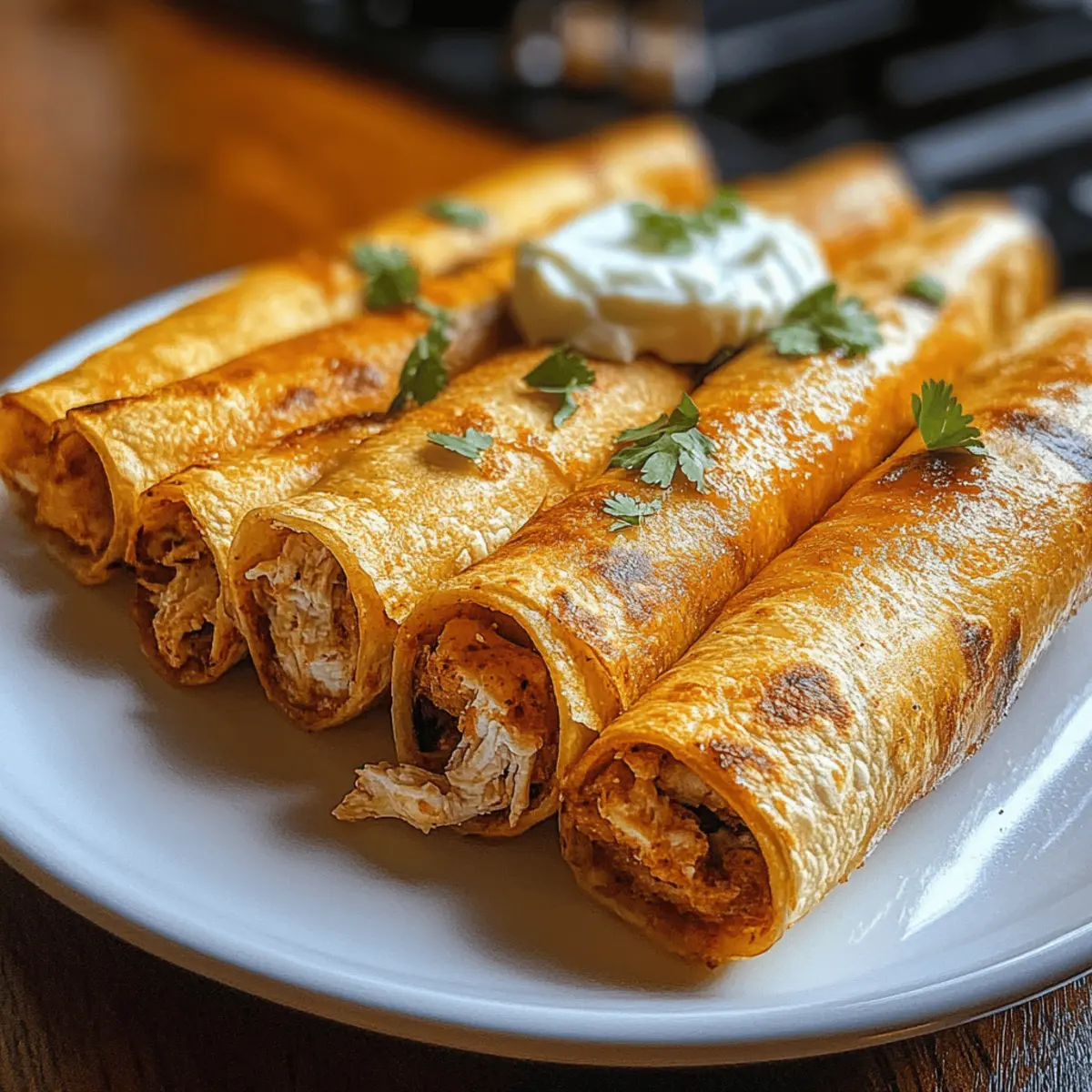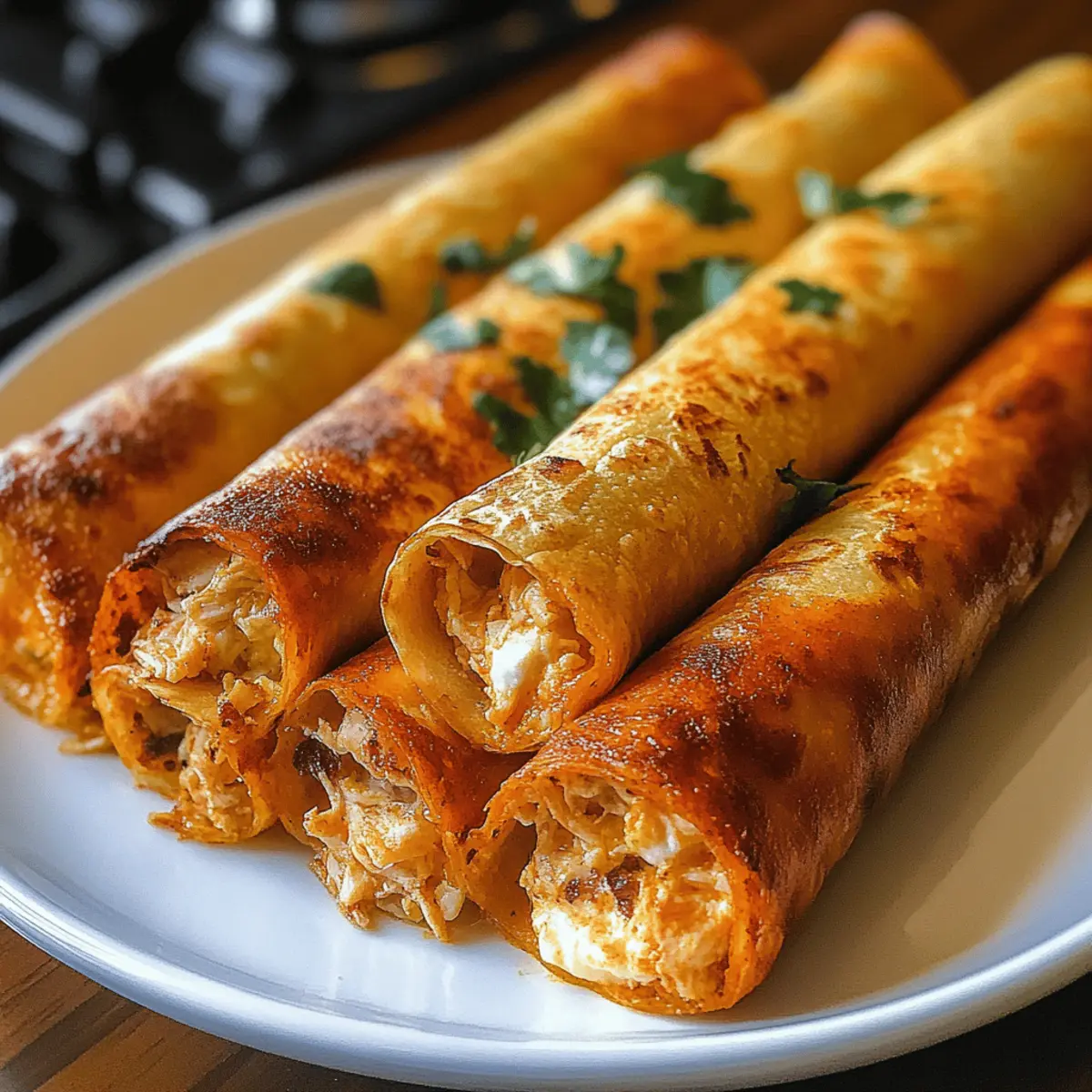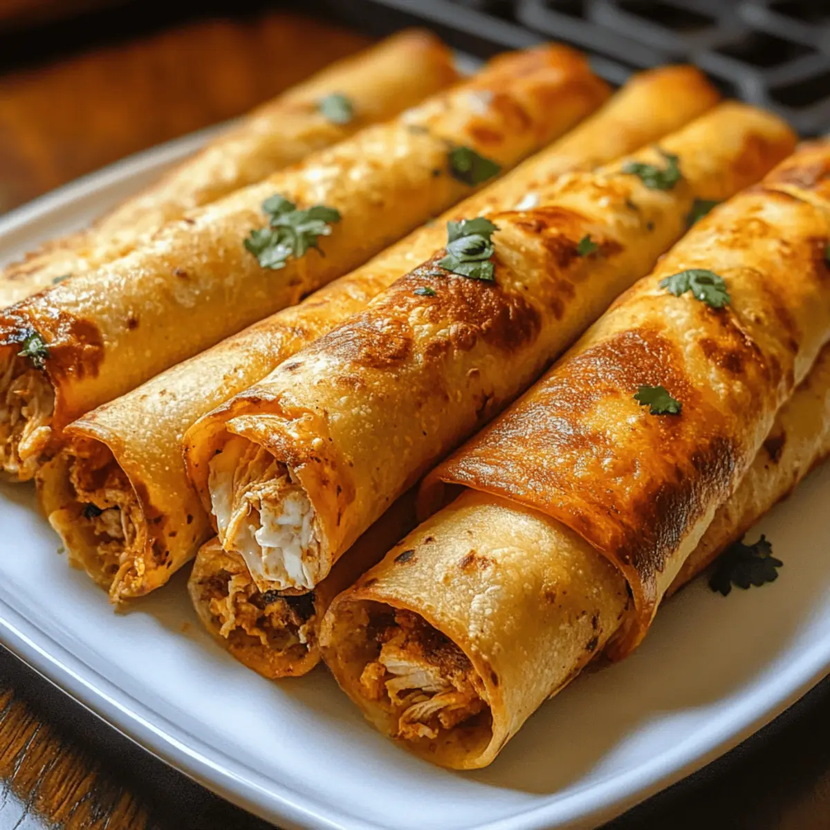 Eines Abends, während ich in der Küche stand und meine unverzichtbaren Snacks vorbereitete, kreuzten sich meine Gedanken mit dem knusprigen, goldbraunen Anblick von Taquitos, die im Ofen brutzelten. Crunchy Oven-Baked Chicken Taquitos sind nicht nur ein köstlicher Snack, sondern auch unglaublich vielseitig und schnell zubereitet – ein echtes Lebensretter-Rezept für hektische Tage. Mit einer Füllung aus zartem, gewürztem Hähnchen und leckerem Käse sind sie perfekt für gesellige Abende oder entspannte Familienessen. Sie lassen sich zudem leicht anpassen, sodass du mit verschiedenen Füllungen experimentieren kannst, sei es mit saftigem Rindfleisch, herzhaftem pulled pork oder sogar einer vegetarischen Variante. Neugierig, wie du diese köstlichen Happen selbst zubereiten kannst? Lass uns gemeinsam in die Welt der Taquitos eintauchen! Warum sind Taquitos so unwiderstehlich? Vielseitigkeit: Diese Crunchy Oven-Baked Chicken Taquitos sind nicht nur einmalig, sondern lassen sich auch mit verschiedenen Füllungen anpassen poput Rindfleisch oder einer vegetarischen Option. Einfachheit: Mit wenigen Zutaten und in nur 30 Minuten zubereitet, sind sie ideal für jede Gelegenheit, sei es ein ruhiger Abend oder eine herzliche Feier. Gesund: Mit rotisserie Hähnchen und der Möglichkeit von Low-Fat-Cream Cheese, bieten sie einen köstlichen, aber gesunden Snack. Knuspriger Genuss: Das goldbraune Äußere und die cremige Füllung sorgen für den perfekten Crunch bei jedem Bissen, der den Gaumen verwöhnt. Entdecke auch diese köstlichen Möglichkeiten wie Popper Huehnchen Taquitos oder Brazilian Coconut Chicken, um dein Speiseangebot zu erweitern! Der Ausgang der Zutaten für Taquitos Für die Füllung Zerfleddertes Hähnchen – Das Hauptprotein, idealerweise von einer Rotisserie, um Zeit zu sparen und Geschmack zu maximieren. Frischkäse – Sorgt für Cremigkeit und bindet die Füllung. Kann durch fettarmen Frischkäse für eine gesündere Option ersetzt werden. Geriebener Käse (Cheddar oder mexikanische Mischung) – Schmilzt gut und verbessert den Geschmack und die Textur. Mische verschiedene Käsesorten nach Vorlieben. Salsa – Fügt Feuchtigkeit und Geschmack hinzu. Wähle je nach Schärfegrad milde oder scharfe Salsa; frische Salsa sorgt für eine chunkigere Textur. Taco-Gewürz – Eine Gewürzmischung zur Geschmacksanreicherung. Kann durch individuelle Gewürze wie Kreuzkümmel oder Chili-Flocken ersetzt werden. Frischer Limettensaft – Bringt Frische in die Füllung. Kann auch durch Zitronensaft ersetzt werden. Frischer Koriander (optional) – Bietet eine kräuterartige Note. Lass ihn weg, wenn du kein Koriander-Fan bist, oder ersetze ihn durch Petersilie. Für die Tortillas Mehl-Tortillas – Die Basis zum Rollen der Taquitos. Verwende Maistortillas für eine glutenfreie Variante. Kochspray oder Olivenöl – Hilft, die Knusprigkeit beim Backen zu erreichen. Jedes neutrale Öl eignet sich als Alternative. Der Ausgang für deine Crunchy Oven-Baked Chicken Taquitos ist jetzt bereit – die Kombination aus diesen Zutaten sorgt für einen unvergleichlichen Geschmack, den du selbst erleben kannst! Schritt-für-Schritt-Anleitung für Crunchy Oven-Baked Chicken Taquitos Step 1: Ofen vorheizen Heize deinen Ofen auf 220°C (425°F) vor. Ein gut vorgeheizter Ofen sorgt dafür, dass die Crunchy Oven-Baked Chicken Taquitos gleichmäßig knusprig werden. Nutze ein Backthermometer, um die richtige Temperatur zu überprüfen und verzichte nicht auf diesen Schritt, um das beste Ergebnis zu erzielen. Step 2: Backblech vorbereiten Lege ein Backblech mit Backpapier aus oder sprühe es leicht mit Kochspray ein, um ein Ankleben der Taquitos zu verhindern. Diese Vorbereitung sorgt dafür, dass die Hähnchentaquitos beim Backen schön knusprig werden und die Reinigung danach viel einfacher ist. Step 3: Füllung mischen In einer großen Schüssel vermenge das zerfledderte Hähnchen, den Frischkäse, den geriebenen Käse, die Salsa, das Taco-Gewürz, den Limettensaft und falls gewünscht den Koriander. Rühre gut um, bis die Mischung cremig und gleichmäßig gewürzt ist. Diese Füllung ist das Herzstück deiner Taquitos und verleiht ihnen den unwiderstehlichen Geschmack. Step 4: Tortillas vorbereiten Um die Tortillas leichter zu rollen, erwärme sie für etwa 20 Sekunden in einer Pfanne oder in der Mikrowelle. Dies macht sie geschmeidig und verhindert, dass sie brechen. Achte darauf, dass die Tortillas nicht zu heiß werden; sie sollten nur leicht warm sein, damit sie sich gut formen lassen. Step 5: Füllen und Rollen Platziere eine kleine Menge der Füllung auf dem unteren Drittel einer Tortilla. Rolle die Tortilla straff auf und sichere sie, wenn nötig, mit einem Zahnstocher. Lege die gerollten Taquitos mit der Naht nach unten auf das vorbereitete Backblech. Wiederhole diesen Vorgang, bis alle Tortillas gefüllt und gerollt sind. Step 6: Mit Öl besprühen Sprühe oder bestreiche die Taquitos leicht mit Olivenöl oder Kochspray, um sicherzustellen, dass sie beim Backen knusprig und goldbraun werden. Achte darauf, alle Seiten gut zu bedecken, damit die Crunchy Oven-Baked Chicken Taquitos gleichmäßig gebräunt werden. Step 7: Backen Schiebe das Backblech in den vorgeheizten Ofen und backe die Taquitos 15 Minuten lang. Danach wende sie vorsichtig und backe sie weitere 10–15 Minuten, bis sie goldbraun und knusprig sind. Halte ein Auge darauf, damit sie nicht zu dunkel werden. Step 8: Servieren Nehme die Taquitos aus dem Ofen und lasse sie kurz abkühlen. Serviere die Crunchy Oven-Baked Chicken Taquitos heiß mit Dipps wie Guacamole, Sauerrahm oder Salsa. Diese perfekt gewürzten Happen sind ideal für jeden Anlass! Experten Tipps für die besten Taquitos Vorbereitung ist alles: Stelle sicher, dass du alle Zutaten bereithältst, um einen reibungslosen Ablauf beim Füllen und Rollen der Taquitos zu gewährleisten. Vermeide Überfüllung: Fülle die Tortillas nicht zu voll, da sie sonst beim Rollen au