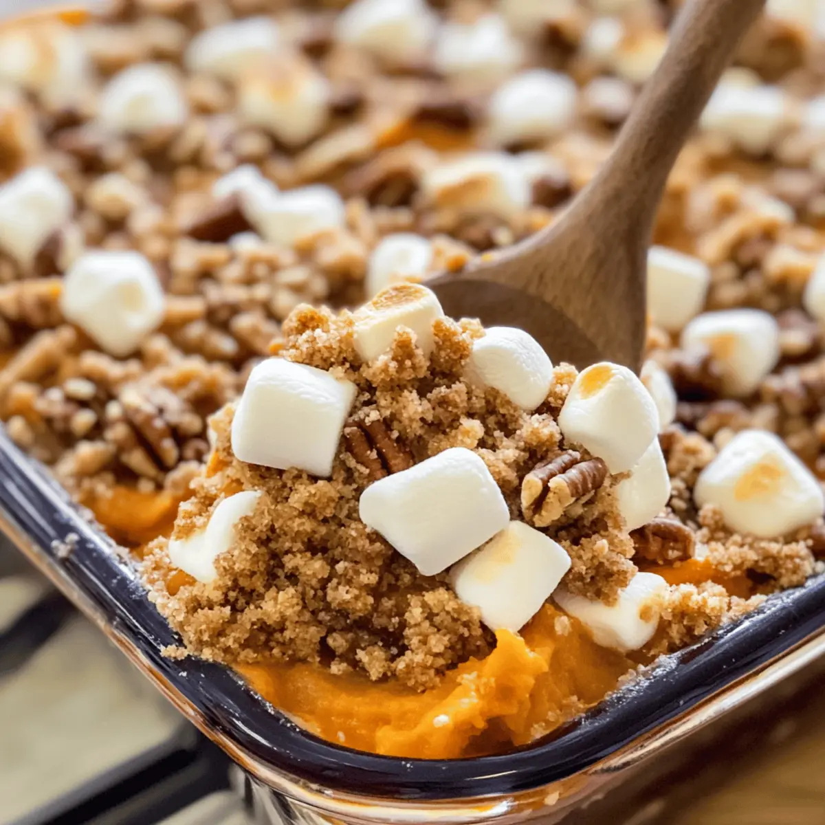 Inmitten der festlichen Vorbereitungen für Thanksgiving oder Weihnachten, gibt es einen unverzichtbaren Klassiker, der immer wieder die Herzen erobert: die Classic Sweet Potato Casserole mit Marshmallows und Pecan Streusel. Diese köstliche Beilage ist nicht nur ein wahrer Genuss, sondern bietet auch den perfekten Kontrast zwischen der cremigen Süßkartoffelfüllung und dem knusprigen Topping. Die Zubereitung ist einfach und lässt sich wunderbar im Voraus planen, was Ihnen wertvolle Zeit während der Feiertage spart. Wenn Sie also nach einem Gericht suchen, das sowohl Tradition als auch Begeisterung auf den Tisch bringt, sind Sie hier genau richtig! Welches Besteck werden Sie wählen, um diesen Comfort Food-Klassiker zu genießen? Warum werden Sie diesen Süßkartoffelauflauf lieben? Einfachheit: Die Zubereitung des Süßkartoffelauflaufs erfordert nur grundlegende Kochkenntnisse und ist kinderleicht. Aromenmix: Kombinieren Sie süße und herzhafte Aromen durch die perfekte Mischung aus Marshmallows und knusprigen Pekannüssen. Vielseitigkeit: Variieren Sie das Rezept, indem Sie die Pekannüsse durch Granola ersetzen oder die Marshmallows weglassen – die Möglichkeiten sind endlos! Vorbereitungsfreundlich: Bereiten Sie den Auflauf im Voraus zu und reduzieren Sie den Stress in der Küche, damit Sie mehr Zeit mit Ihren Lieben verbringen können. Familienliebling: Dieses Gericht ist ein Hit bei Gästen und bringt alle zusammen – perfekt für Feiertagsessen oder gemütliche Abende. Das macht diesen Süßkartoffelauflauf nicht nur köstlich, sondern auch zu einem echten Highlight auf dem Tisch! Süßkartoffelauflauf Zutaten Hinweis: Entdecken Sie mit diesen Zutaten, wie einfach es ist, den perfekten Süßkartoffelauflauf zuzubereiten! Für die Füllung Süßkartoffeln – die Basis des Auflaufs, die Süße und Cremigkeit bringt; verwenden Sie auch Dosen-Süßkartoffeln für mehr Komfort. Brauner Zucker – sorgt für zusätzlichen Süße und verstärkt die Karamellnoten in der Füllung; weißer Zucker ist ebenfalls eine gute Alternative. Eier – binden die Mischung für eine luftige Textur; können durch eine ei-freie Alternative ersetzt werden, wenn notwendig. Milch – sorgt für Cremigkeit und Geschmeidigkeit in der Füllung; jede pflanzliche Milch funktioniert auch hier als Ersatz. Butter – bringt Reichhaltigkeit und Geschmack; verwenden Sie je nach Vorliebe gesalzene oder ungesalzene Butter. Zimt und Muskatnuss – warme Gewürze, die das Geschmacksprofil prägen; passen Sie die Menge nach Ihrem Geschmack an. Für das Topping Pekannüsse – bieten eine knusprige Textur im Topping; können durch Walnüsse ersetzt oder weggelassen werden, um das Rezept nussfrei zu halten. Marshmallows – bringen einen süßen, schmelzenden Kontrast; können für eine traditionellere und herzhaftere Variante weggelassen werden. Mit diesen Zutaten, die nicht nur lecker, sondern auch nahrhaft sind, gelingt Ihnen der perfekte Süßkartoffelauflauf mühelos. Bereiten Sie sich auf ein unvergessliches Festessen vor! Schritt-für-Schritt-Anleitung für den Süßkartoffelauflauf Schritt 1: Ofen vorheizen Heizen Sie den Ofen auf 175 °C vor und bereiten Sie eine 23×33 cm große Auflaufform vor, indem Sie sie leicht mit Butter einfetten. Dies schafft die perfekte Basis für die Crema der Süßkartoffel und sorgt dafür, dass der Auflauf gleichmäßig gart. Schritt 2: Pekannüsse rösten Verteilen Sie die Pekannüsse auf einem Backblech und rösten Sie sie im vorgeheizten Ofen für etwa 5-7 Minuten, bis sie duften und leicht goldbraun sind. Behalten Sie sie im Auge, um ein Anbrennen zu vermeiden. Lassen Sie sie anschließend abkühlen und hacken Sie sie grob für das Topping. Schritt 3: Süßkartoffeln kochen Bringen Sie einen großen Topf mit Wasser zum Kochen und fügen Sie die geschälten und gewürfelten Süßkartoffeln hinzu. Kochen Sie die Süßkartoffeln etwa 15-20 Minuten oder bis sie weich sind und leicht mit einer Gabel zerdrückt werden können. Gießen Sie das Wasser ab und pürieren Sie die Süßkartoffeln ordentlich, bis eine glatte Masse entsteht. Schritt 4: Zimtfüllung zubereiten In einer Schüssel vermengen Sie die geschmolzene Butter, das Mehl, den braunen Zucker und den Zimt. Mischen Sie alles, bis es krümelig ist. Diese Füllung wird später zwischen den Schichten der Süßkartoffelmasse verteilt und sorgt für zusätzlichen Geschmack und Textur. Schritt 5: Süßkartoffelfüllung mischen Kombinieren Sie das pürierte Süßkartoffeln mit braunem Zucker, geschmolzener Butter, Eiern, Milch und den übrigen Gewürzen in einer großen Schüssel. Rühren Sie die Mischung gründlich um, bis sie vollständig homogen und cremig ist. Dies wird die Hauptfüllung für den Süßkartoffelauflauf sein. Schritt 6: Erste Schicht auftragen Geben Sie die Hälfte der Süßkartoffelmischung gleichmäßig in die vorbereitete Auflaufform. Glätten Sie die Oberfläche mit einem Löffel oder einer Spachtel, damit die nächste Schicht gut haften kann. Diese Basis sorgt für die cremige Grundlage des Auflaufs. Schritt 7: Zweite Schicht einfüllen Streuen Sie die Hälfte der Zimtfüllung über die erste Schicht der Süßkartoffeln. Diese Schicht fügt Textur und einen unerwarteten Crunch hinzu, der den cremigen Süßkartoffelauflauf perfekt ergänzt. Achten Sie darauf, die Mischung gleichmäßig zu verteilen. Schritt 8: Letzte Schicht und Topping Fügen Sie die restliche Süßkartoffelmischung darüber und drücken Sie leicht an, um eine feste Schicht zu bilden. Streuen Sie das restliche Zimtfüllung und die gerösteten Pekannüsse gleichmäßig darauf. Toppen Sie den Auflauf abschließend mit den Marshmallows, die ihm eine süße, schmelzende Note verleihen. Schritt 9: Backen Backen Sie den Auflauf im vorgeheizten Ofen für 30 Minuten, bis er goldbraun und sprudelnd aussieht. Überprüfen Sie den Auflauf nach 20 Minuten; wenn die Marshmallows zu dunkel werden, decken Sie ihn locker mit Aluminiumfolie ab. Schri