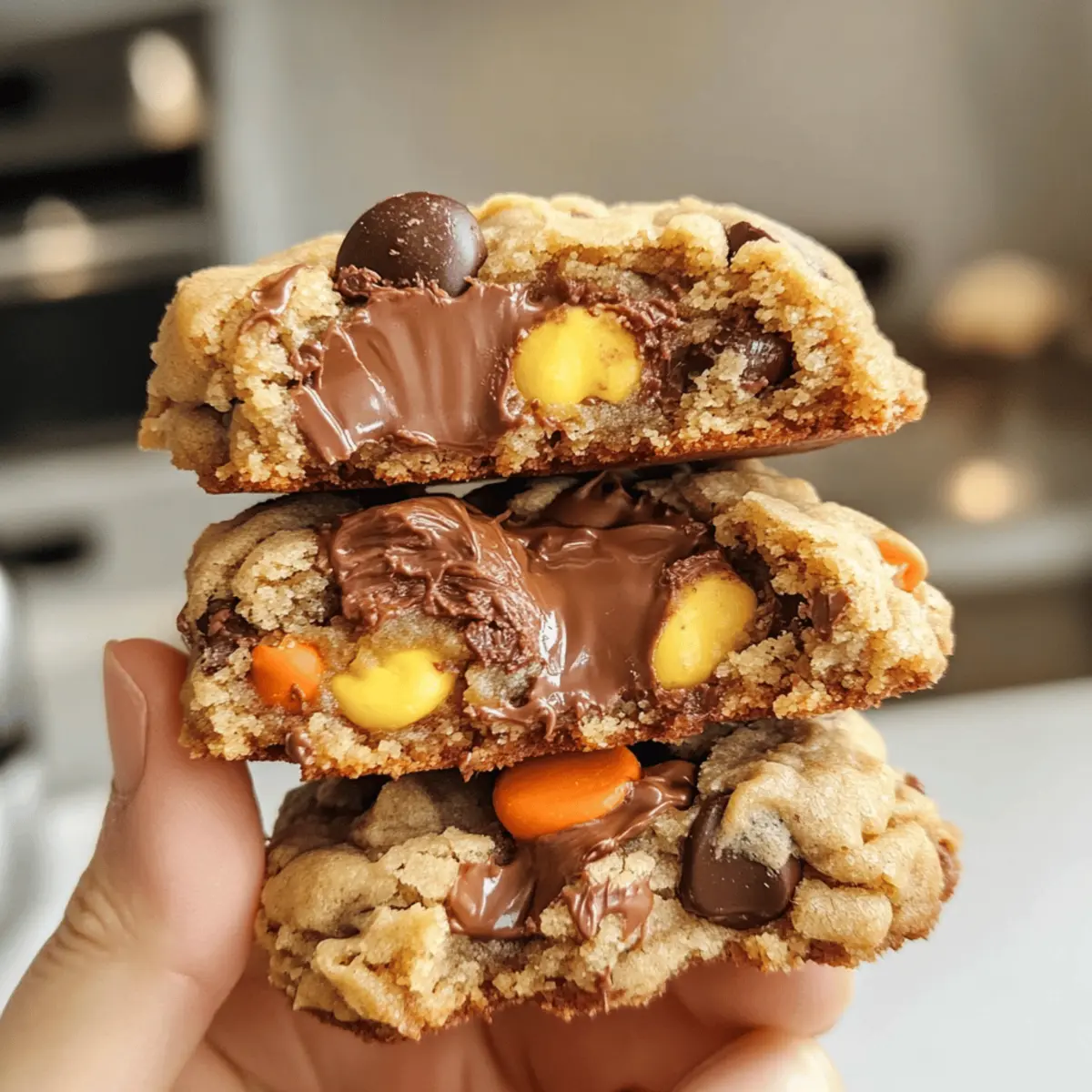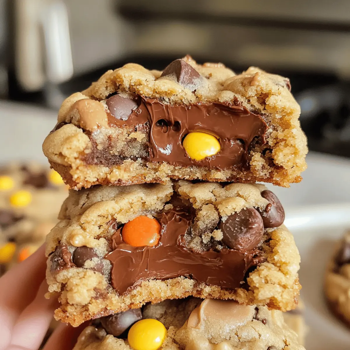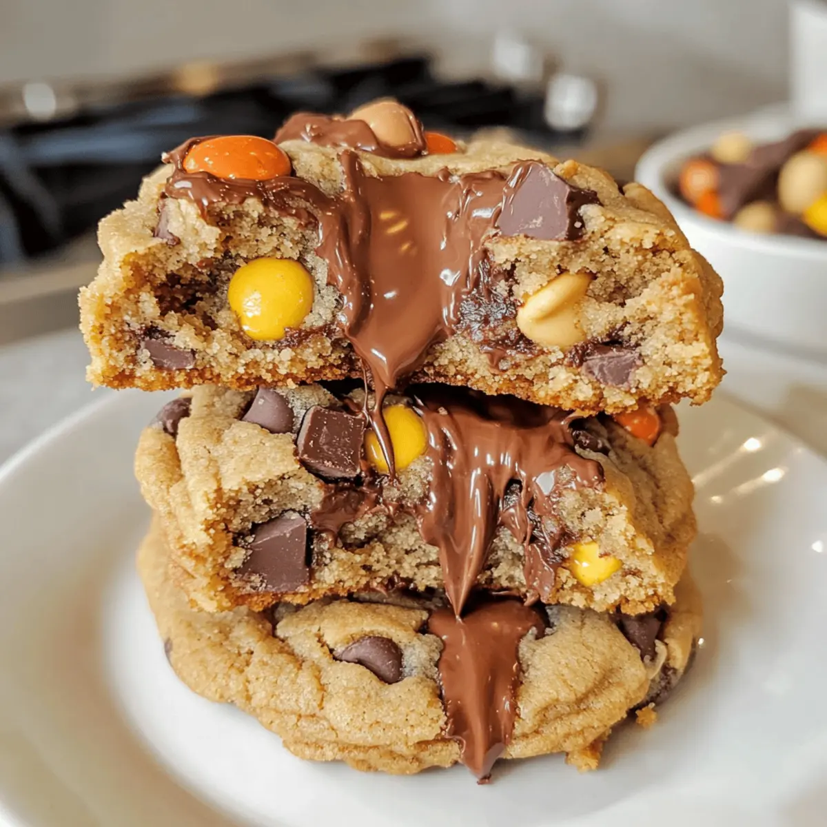 Beim ersten Biss in diese köstlichen, gefüllten Erdnussbutter-Nutella-Kekse wird Ihre Geschmacksknospen in eine Welt des Genusses entführt. Die Kombination aus dem cremigen Charme von Nutella, dem herzhaften Knusper der Schokoladenstückchen und dem unverwechselbaren Geschmack von Erdnussbutter macht diese Kekse zu einer unwiderstehlichen Nascherei. Dieses Rezept für „Gooey Stuffed Peanut Butter Nutella Cookies“ bedeutet, dass Sie eine genussvolle Leckerei in nur einer Schüssel zaubern, was die Zubereitung zum Kinderspiel macht. Ihre weiche, chewy Textur und der warme, schmelzende Kern machen sie zum perfekten Highlight jeder Kaffeetafel oder Veranstaltung. Egal, ob Sie eine kleine Belohnung für sich selbst oder eine süße Überraschung für Freunde oder Familie zaubern möchten, diese Kekse sind stets ein Hit! Bereit, eine unvergessliche Keks-Aktion zu starten? Warum sind diese Kekse so besonders? Einzigartig: Diese gefüllten Peanut Butter Nutella Kekse sind ein absolutes Geschmackserlebnis! Einfachheit pur: Sie benötigen nur eine Schüssel, was die Zubereitung schnell und unkompliziert macht. Vielfältiger Genuss: Egal ob als Snack für zwischendurch oder als Dessert, sie passen zu jeder Gelegenheit. Überraschender Kern: Der schmelzende Nutella-Kern sorgt für ein wow-Erlebnis bei jedem Biss. Crowd-Pleaser: Ihre Freunde und Familie werden von diesen köstlichen Keksen begeistert sein! Wenn Sie nach anderen verlockenden Rezeptideen suchen, probieren Sie auch unser Double Chocolate Protein oder die Hähnchen Kofta aus! Der Ausstoß: Zutaten für die Kekse Für den Keks-Teig Ungesalzene Butter – sorgt für Reichhaltigkeit und Feuchtigkeit; verwende europäische Butter für eine cremigere Textur. Erdnussbutter – verleiht den Keksen Geschmack und trägt zur chewy Textur bei; kann durch Mandel- oder Cashewbutter ersetzt werden, jedoch variiert der Geschmack. Zucker – süßt die Kekse und trägt zur Textur bei. Brauner Zucker – sorgt für mehr Feuchtigkeit und einen Hauch von Karamellgeschmack; kann durch normalen braunen Zucker ersetzt werden. Eier – binden die Zutaten und helfen beim Aufgehen für eine weiche Textur. Allzweckmehl – sorgt für Struktur; kann für eine glutenfreie Variante durch Mandelmehl ersetzt werden (kann die Textur verändern). Backnatron – unterstützt das Aufgehen und sorgt für eine leichtere Textur. Backpulver – arbeitet mit Backnatron für optimale Lockerung. Maisstärke – macht die Kekse extra weich und chewy. Gemahlener Zimt & Muskatnuss – fügt Wärme und Tiefe des Geschmacks hinzu. Koscheres Salz – hebt den Geschmack hervor; bei Verwendung von feinem Salz halbieren. Für die Füllung Nutella – bietet einen schmelzenden, schokoladigen Kern; vor dem Einfüllen anfrieren, um die Handhabung zu erleichtern. Reese’s Pieces – sorgt für Knusprigkeit und einen zusätzlichen Hauch von Erdnussbuttergeschmack; können durch Erdnussbutterstückchen ersetzt werden, wenn gewünscht. Halbsüße Schokoladenstückchen – verleiht den Keksen Reichhaltigkeit und Schokoladengeschmack; sowohl weiße als auch dunkle Schokoladenstückchen können verwendet werden. Bereit, mit diesem einfachen Rezept für köstliche gefüllte Kekse loszulegen? Genießen Sie den Genuss der selbstgemachten Leckerei! Step-by-Step Instructions für Gooey Stuffed Peanut Butter Nutella Cookies Step 1: Nutella vorbereiten Löffeln Sie Nutella auf einen mit Backpapier ausgelegten Teller und frieren Sie es 20-30 Minuten ein, bis es fest ist. Dies erleichtert das Einfüllen des schmelzenden Kerns in die Kekse. Achten Sie darauf, dass das Nutella gut gefroren ist, sodass es beim Backen nicht ausläuft. Step 2: Teig mischen Schlagen Sie kalte ungesalzene Butter und beide Zuckersorten in einer großen Schüssel mit einem Handmixer 3-4 Minuten lang hell und cremig. Fügen Sie die Eier nacheinander hinzu und mixen Sie sie gut ein, bis die Masse gut vermischt und schaumig ist. Step 3: Trockene Zutaten kombinieren Mischen Sie in einer separaten Schüssel das Allzweckmehl, Backnatron, Backpulver, Maisstärke, Salz, Zimt und Muskatnuss. Rühren Sie die trockenen Zutaten in die Butter-Zucker-Mischung, bis alles gerade so kombiniert ist. Vermeiden Sie das Übermixen, um eine zarte Textur zu gewährleisten. Step 4: Schokoladenstückchen hinzufügen Fügen Sie die Reese’s Pieces und die halbsüßen Schokoladenstückchen in die Teigmischung hinzu und falten Sie sie sanft unter. Dadurch wird der Cookie-Teig noch schokoladiger und leckerer. Bereiten Sie sich jetzt darauf vor, die Keksformen zu erstellen! Step 5: Keksbällchen formen Teilen Sie den Keksteig in 8 große Portionen und formen Sie diese zu Bällchen. Legen Sie die Bällchen auf eine Platte und kühlen Sie sie 30 Minuten im Kühlschrank, damit der Teig fester wird und beim Backen die Form behält. Step 6: Kekse füllen Nehmen Sie die gekühlten Keksbällchen und drücken Sie eine Mulde in jedes Bällchen. Setzen Sie ein Stück des gefrorenen Nutella in die Mulde und umschließen Sie es sorgfältig mit dem Teig. Achten Sie darauf, dass die Füllung vollständig eingehüllt ist, damit sie beim Backen nicht austritt. Step 7: Backen Heizen Sie den Ofen auf 205°C vor. Legen Sie die gefüllten Kekse auf ein mit Backpapier ausgelegtes Backblech und backen Sie sie 11-13 Minuten lang, bis sie goldbraun sind. Die Kekse sollten außen leicht fest, innen jedoch noch weich und gooey sein. Step 8: Abkühlen lassen Lassen Sie die Kekse nach dem Backen mindestens 15 Minuten auf dem Blech abkühlen, damit sie die perfekte Konsistenz erreichen und nicht zu zerbrechlich sind. Servieren Sie die Kekse warm, um den schmelzenden Nutella-Kern in vollen Zügen zu genießen. Expertentipps für köstliche Kekse Butter richtig kalt: Verwenden Sie kalte Butter für eine bessere Luftigkeit während des Mischens und verhindern Sie, dass der Teig zu flüssig wird. Teig nicht übermixen: Achten Sie darauf, den Teig nur so lange zu mischen, bis die Zutat