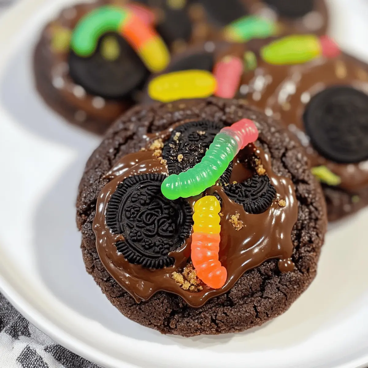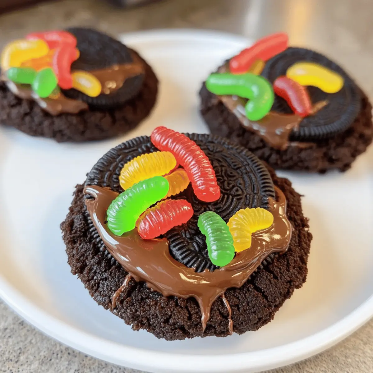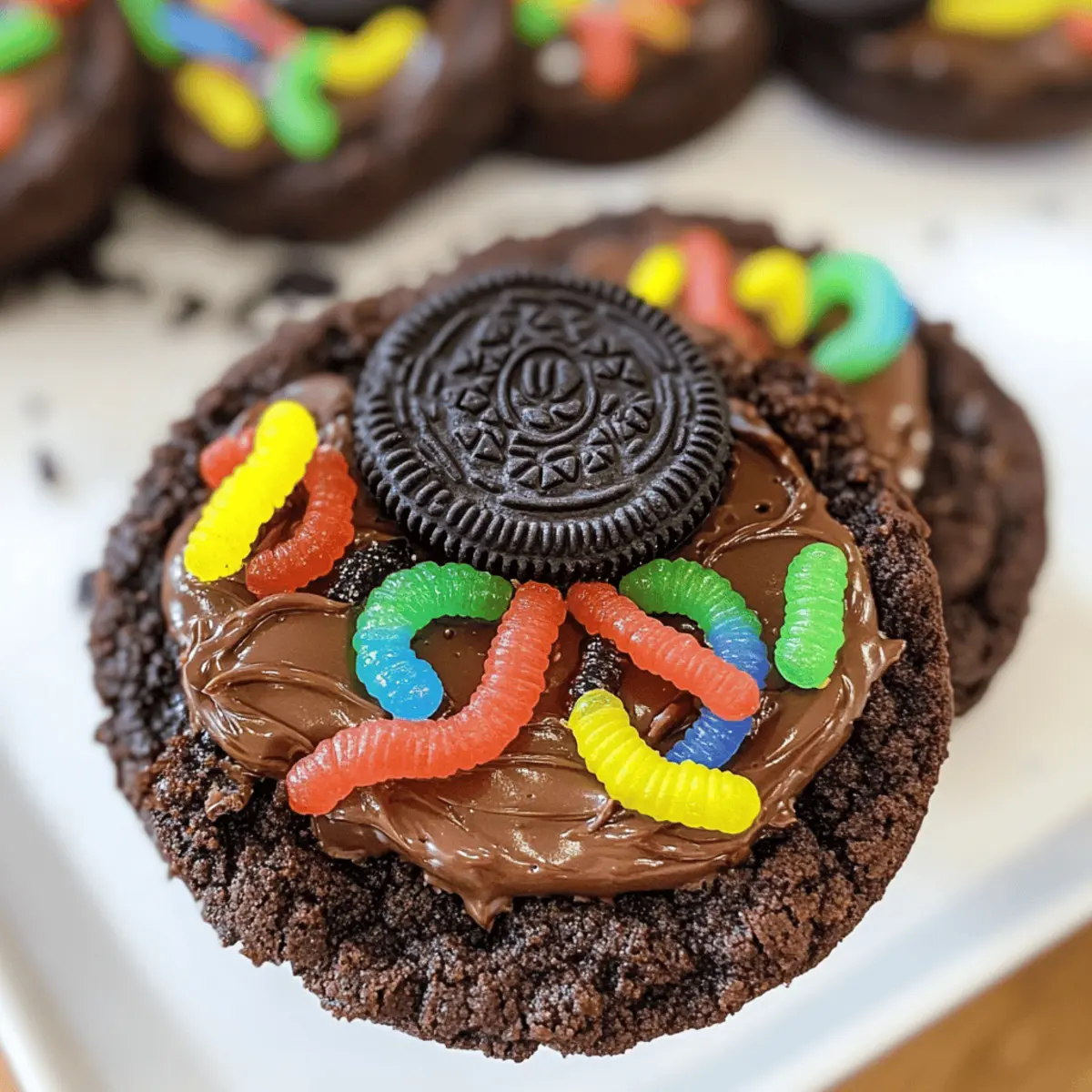 Könnten diese Kekse die perfekte Lösung für einen süßen Augenschmaus sein? Mit ihren lustigen „Dirt and Worms Cookies“ bringe ich nicht nur einen Hauch von Kindheit auf den Tisch, sondern auch ein himmlisches Schokoladenvergnügen! Diese Keksleckerbissen, die ein weiches Schokoladenbasisbett mit einer schokoladigen Ganache, zerbröselten Oreos und einem süßen Gummy-Wurm-Topping kombinieren, sind sowohl visuell hinreißend als auch einfach zuzubereiten. Sie bieten nicht nur eine willkommene Abwechslung in der Gebäckwelt, sondern sind auch perfekt für Kindergeburtstage oder familiäre Naschereien. Wer könnte da widerstehen? Lass uns gemeinsam die Freude am Backen teilen und herausfinden, wie wir das Beste aus diesen spielerischen Leckereien herausholen können! Warum sind diese Kekse ein Hit? Einfachheit: Die Herstellung dieser Keksleckereien ist kinderleicht! Du benötigst keine besonderen Fähigkeiten, um diese spielerischen Köstlichkeiten zu zaubern. Lustiger Genuss: Die Kombination aus weichen Schokoladenkeksen und bunten Gummiwürmern macht sie zum perfekten Spaß für Kinder und Erwachsene. Nostalgie: Diese Kekse erinnern an die geliebten „Dirt Desserts“ aus der Kindheit und sind ideal, um schöne Erinnerungen aufleben zu lassen. Vielseitigkeit: Du kannst die Gummiwürmer durch andere Süßigkeiten ersetzen oder Nüsse für zusätzlichen Crunch hinzufügen. Es gibt unzählige Möglichkeiten, um deine eigenen Kreationen zu erstellen! Zeitersparnis: In nur 30 Minuten kannst du diese süßen Leckerbissen zubereiten. Perfekt, um spontan Naschkatzen zu verwöhnen. Probiere auch Pistazien Traum Kekse oder die Zitronen Kokos Rezept, wenn du nach weiteren kinderfreundlichen Backideen suchst. Zutaten für Dirt and Worms Cookies • Diese Zutaten sind der Schlüssel zu einem schokoladigen Vergnügen! Für den Keks Butter – sorgt für Feuchtigkeit und Geschmack. Stelle sicher, dass sie zimmerwarm ist für leichtes Cremieren. Kokosöl – fügt Reichhaltigkeit hinzu und hilft, die Feuchtigkeit zu bewahren. Kann durch mehr Butter oder ein anderes Öl ersetzt werden. Pflanzenöl – bietet zusätzliche Feuchtigkeit. Kann durch Raps- oder Sonnenblumenöl ersetzt werden. Zucker – Hauptsüßungsmittel, trägt zur Textur bei. Brauner Zucker kann für einen chewy Keks verwendet werden. Puderzucker – Süßungsmittel, das zur zarten Kekstextur beiträgt. Ist nicht mit Kristallzucker austauschbar. Eier – binden die Zutaten und sorgen für Feuchtigkeit. Sie sollten zimmerwarm sein. Milch – sorgt für Weichheit der Kekse. Kann durch pflanzliche Milch für eine milchfreie Option ersetzt werden. Mehl – bildet die Struktur des Kekses. Eine glutenfreie Mehlmischung kann als Ersatz verwendet werden. Kakaopulver – sorgt für den Schokoladengeschmack und die Farbe. Holländisches Kakaopulver bietet einen reicheren Geschmack. Backpulver – sorgt für einen leichten Keks. Stelle sicher, dass es frisch ist für die besten Ergebnisse. Weißwein-Essig – stabilisiert das Ei und verleiht Volumen. Kann weggelassen werden, könnte aber die Fluffigkeit beeinträchtigen. Salz – verstärkt den Gesamtschmack. Verwende Meersalz für ein komplexeres Aroma. Für die Ganache Halbbitterschokoladenstückchen – wichtige Komponente für Ganache und Schokoladengeschmack. Milchschokolade oder Zartbitterschokolade können nach Geschmack gewählt werden. Schlagsahne – erzeugt eine reichhaltige Ganache. Kann durch Kokoscreme für eine milchfreie Version ersetzt werden. Für die Dekoration Oreos – zerbröselt für Textur und Dekoration. Jede Schokoladensandwich-Kekse können verwendet werden. Gummiwürmer – lustige Garnitur für die Präsentation. Optional; andere Süßigkeiten können auch verwendet werden. Schritt-für-Schritt-Anleitungen für Dirt and Worms Cookies Step 1: Ofen vorheizen Heize deinen Ofen auf 175 °C (350 °F) vor. Dies stellt sicher, dass die Dirt and Worms Cookies gleichmäßig gebacken werden. Bereite ein Backblech vor, indem du es mit Backpapier auslegst oder leicht einfettest, damit die Kekse beim Backen nicht kleben bleiben. Step 2: Zutaten cremig rühren In einer großen Schüssel die zimmerwarme Butter und das Kokosöl mit einem Handmixer oder einer Küchenmaschine cremig schlagen, bis die Mischung leicht und luftig ist. Dies dauert etwa 2-3 Minuten. Achte darauf, dass keine Klumpen mehr vorhanden sind, um eine gleichmäßige Textur für die Kekse zu gewährleisten. Step 3: Zucker hinzufügen Füge den Kristall- und Puderzucker zur Butter-Kokosöl-Mischung hinzu und schlage alles für weitere 2 Minuten, bis die Zucker gut integriert sind und die Mischung eine glatte Konsistenz hat. Dies wird den Keksen ihre Süße und eine zarte Textur verleihen. Step 4: Eier und Milch einrühren Jetzt die Eier und die Milch in die Schüssel geben und alles gut vermengen, bis die Mischung homogen ist. Achte darauf, dass du die Zutaten gründlich zusammenrührst, damit die Dirt and Worms Cookies perfekt aufgeht und eine feuchte Konsistenz erhält. Step 5: Trockene Zutaten vermengen In einer separaten Schüssel das Mehl, Kakaopulver, Backpulver, Salz und den Weißweinessig gut vermengen. Dies hilft, die trockenen Zutaten gleichmäßig zu verteilen. Die richtige Kombination dieser Zutaten ist entscheidend für die Struktur der Kekse. Step 6: Trockene Mischung unterheben Die trockenen Zutaten anschließend in die feuchte Mischung einrühren. Dies sollte langsam und vorsichtig geschehen, um ein Übermixen zu vermeiden; mische gerade so lange, bis keine Mehlreste mehr sichtbar sind. So bleiben die Dirt and Worms Cookies zart und soft. Step 7: Teig auf das Backblech setzen Verwende einen mittelgroßen Kekslöffel, um den Keksteig gleichmäßig auf das vorbereitete Backblech zu portionieren. Achte darauf, die Teigportionen etwa 5 cm (2 Zoll) voneinander zu platzieren, damit die Kekse beim Backen genügend Platz zum Ausbreiten haben. Step 8: Platt drücken Lege die Unterseite eines mit Zucker 