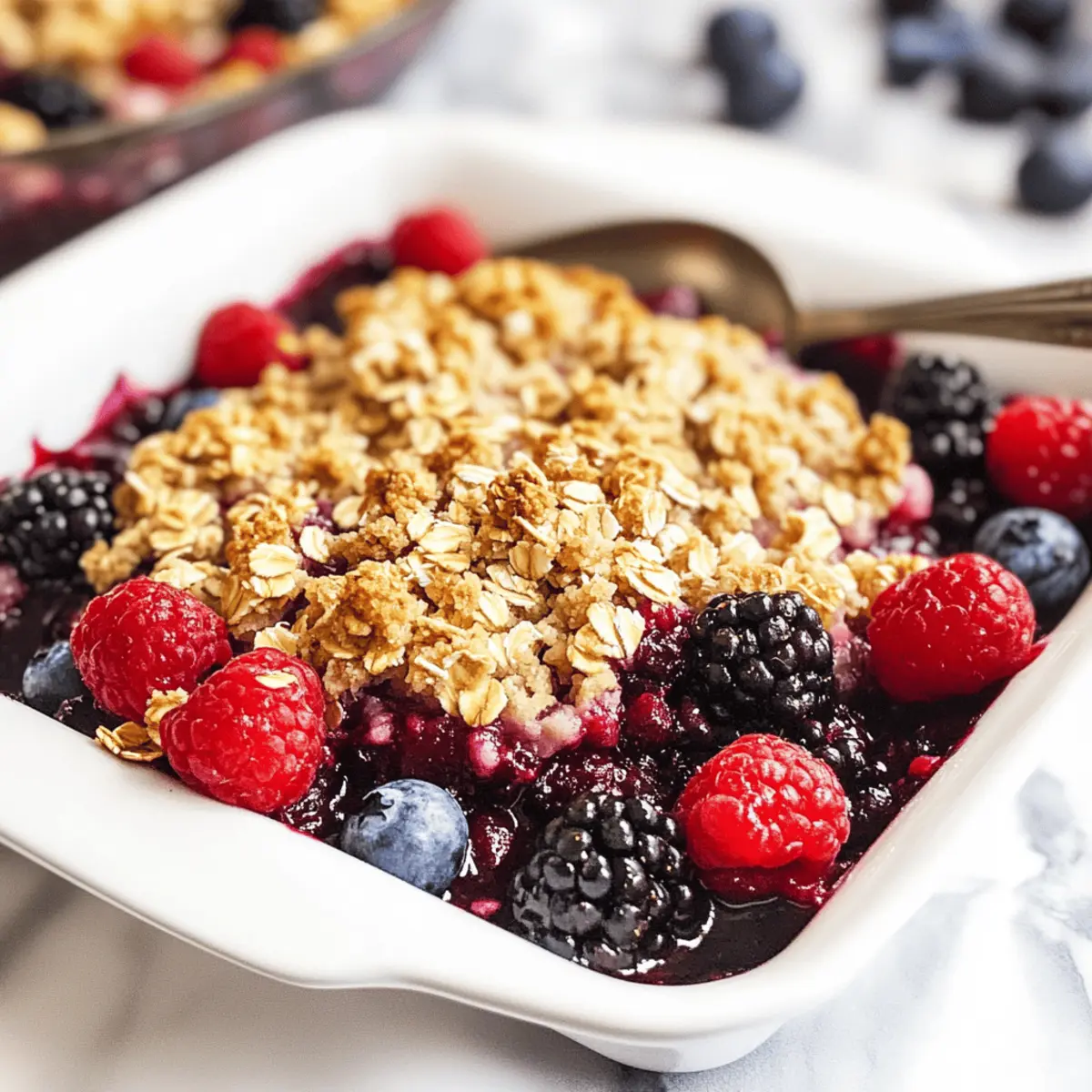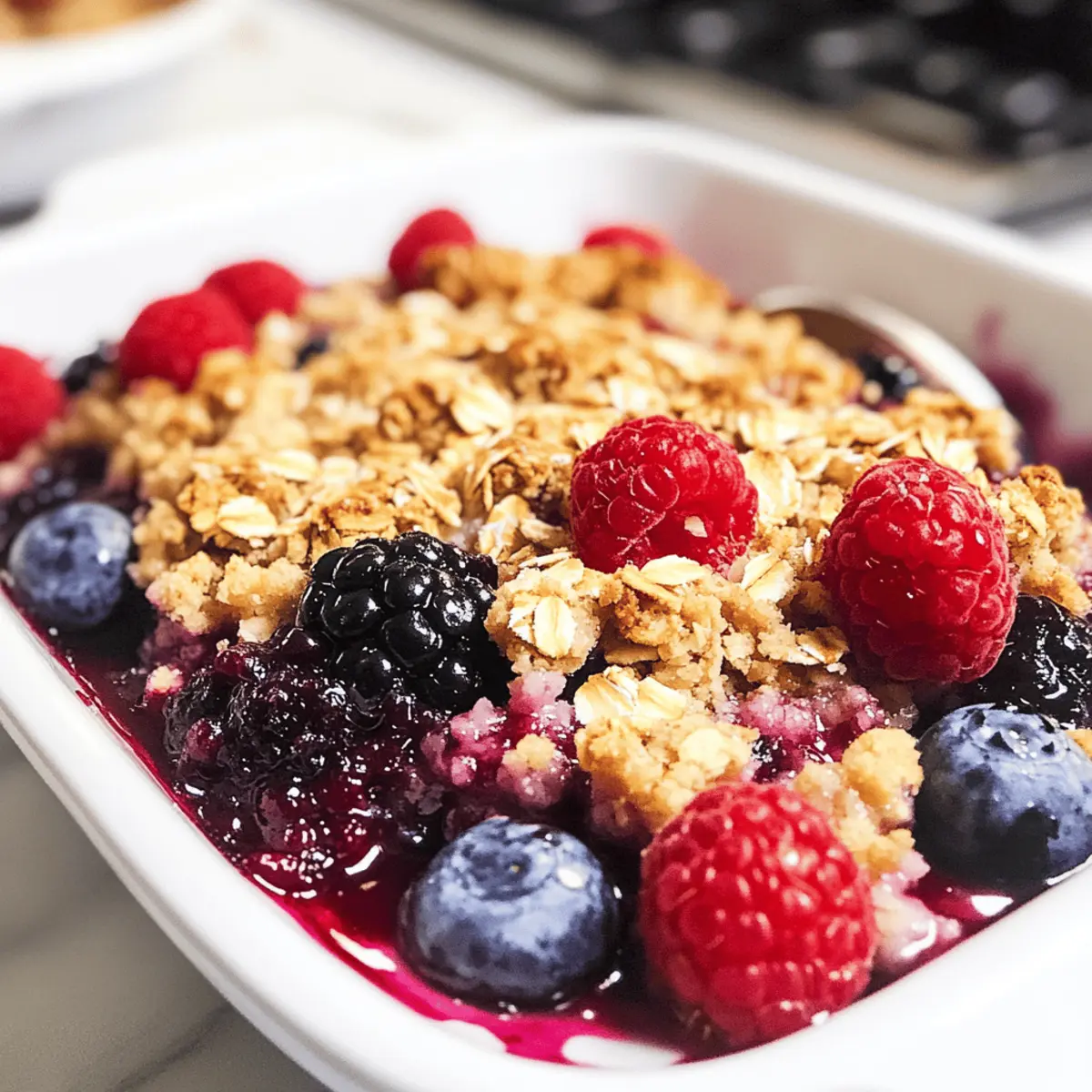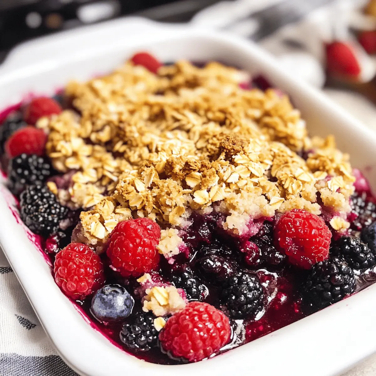 Jedes Mal, wenn ich die saftigen, bunten Beeren sehe, die in den Sommermonaten in den Märkten frisch angeboten werden, weiß ich, dass es Zeit für einen schmackhaften Triple Berry Crisp ist. Diese einfache und schnell zuzubereitende Leckerei kombiniert süße Heidelbeeren, herbe Himbeeren und saftige Brombeeren in einer warmen, sprudelnden Füllung und wird von einer knusprigen Haferkruste gekrönt. Als perfektes Sommerdessert ist dieser Genuss ein wahrer Publikumsfavorit, der nicht nur lecker ist, sondern auch mit saisonalen Zutaten begeistert. Serviert mit einer großzügigen Kugel Vanilleeis, entsteht ein unwiderstehlicher Kontrast zwischen warm und kalt. Wer könnte da widerstehen? Vielleicht entdecke ich dabei einen neuen Lieblingsmoment in deiner Küche! Warum lieben Sie diesen Beeren-Crisp? Einfachheit: Die Zubereitung ist ein Kinderspiel und erfordert nur grundlegende Kochkenntnisse. Frischer Genuss: Mit saisonalen Beeren ist dieser Dreifruits-Crisp ein echter Sommerklassiker. Vielseitigkeit: Passen Sie die Früchte nach Belieben an und verwenden Sie auch andere saisonale Beeren. Perfekte Textur: Die Kombination aus knuspriger Haferkruste und saftigen Früchten bietet einen unwiderstehlichen Kontrast. Genießen Sie diesen Genuss am besten warm mit einer Kugel Vanilleeis oder probieren Sie auch andere Rezepte wie unser Jalapeno Popper Rezept und das Hot Honey Rezept für eine großartige Kombination! Zutaten für den Dreifruits-Crisp • Hier sind alle Zutaten, die Sie für dieses verlockende Sommerdessert benötigen. Für die Kruste Brauner Zucker – sorgt für Süße und Feuchtigkeit; ersetzen Sie ihn durch Kokoszucker für ein kräftigeres Aroma. Weißer Zucker – gleicht die Säure der Beeren aus; Honig kann als natürlicher Süßstoff verwendet werden. Salz – verstärkt die Aromen der Kruste; verwenden Sie ungesalzene Butter, um den Salzgehalt zu kontrollieren. Mehl – gibt der Kruste Struktur; können Sie durch Mandelmehl für eine glutenfreie Option ersetzen. Butter (kalt, gewürfelt) – sorgt für einen reichhaltigen, blättrigen Belag; vegane Butter kann für eine milchfreie Variante verwendet werden. Haferflocken – verleihen dem Topping Crunch und Textur; glutenfreie Haferflocken sind ebenfalls erhältlich. Für die Füllung Heidelbeeren (2 Tassen) – Hauptzutat der Füllung; bietet Süße; können durch Erdbeeren ersetzt werden, wenn nötig. Himbeeren (2 Tassen) – verleiht dem Mischungsvergnügen einen herben Geschmack; andere säuerliche Beeren können ebenfalls verwendet werden. Brombeeren (2 Tassen) – ergänzt das süß-saure Profil; andere gemischte Beeren können als Ersatz dienen. Weißer Zucker (für die Füllung) – süßt die Beerenmischung; passen Sie die Menge je nach Süße der Beeren an. Mehl (für die Füllung) – dickt die Beerensäfte beim Backen ein; Maisstärke ist eine gute Alternative, falls erforderlich. Wenn Sie also ein einfaches, fruchtbasiertes Dessert suchen, das die Vielfalt und Leckereien des Sommers widerspiegelt, sind diese Zutaten genau das Richtige für Sie! Step-by-Step Instructions for Perfekter Dreifruits-Crisp mit Haferkruste Step 1: Ofen vorheizen Heizen Sie den Ofen auf 175°C vor, während Sie die anderen Zutaten vorbereiten. Dies sorgt dafür, dass der Perfekte Dreifruits-Crisp gleichmäßig gebacken wird. Ein vorgeheizter Ofen gewährleistet, dass die Füllung sprudelt und die Kruste goldbraun und knusprig wird. Step 2: Kruste vorbereiten Mischen Sie in einer Schüssel den braunen Zucker, weißen Zucker, Salz und Mehl sorgfältig. Schneiden Sie die kalte Butter mit einem Pastry Cutter oder zwei Gabeln in die trockenen Zutaten, bis eine krümelige Textur entsteht. Fügen Sie die Haferflocken hinzu und mischen Sie alles gut. Stellen Sie die Mischung bis zur weiteren Verwendung in den Kühlschrank. Step 3: Beeren mischen In einer mittleren Schüssel die Heidelbeeren, Himbeeren und Brombeeren vorsichtig vermengen. Streuen Sie den weißen Zucker und das Mehl darüber und werfen Sie die Beeren behutsam, um sicherzustellen, dass sie gleichmäßig bedeckt sind. Diese Mischung wird später die süße und fruchtige Füllung für den Dreifruits-Crisp bilden. Step 4: Zusammenstellen Fetten Sie eine 9×9-Zoll große Auflaufform mit Butter oder etwas Öl ein. Gießen Sie die vorbereitete Beerenmischung gleichmäßig in die Form. Verteilen Sie die Kruste gleichmäßig über die Beeren, sodass alles gut bedeckt ist und eine schöne, knusprige Oberseite entsteht. Step 5: Backen Platzieren Sie die Auflaufform in den vorgeheizten Ofen und backen Sie den Dreifruits-Crisp für 40 bis 50 Minuten. Achten Sie darauf, dass die Beeren sprudeln und die Kruste goldbraun wird. Zu diesem Zeitpunkt sollten herrliche, fruchtige Düfte Ihre Küche erfüllen. Step 6: Abkühlen und Servieren Lassen Sie den Dreifruits-Crisp nach dem Backen etwa 10 Minuten abkühlen. Servieren Sie ihn warm, idealerweise mit einer großzügigen Kugel Vanilleeis oder Schlagsahne. Der Kontrast zwischen der warmen Füllung und der kühlen Creme ist einfach unwiderstehlich und macht dieses Dessert zu einem echten Sommergenuss. Was passt gut zu Perfektem Dreifruits-Crisp mit Haferkruste? Um Ihr Dessert-Erlebnis abzurunden, sollten Sie diese köstlichen Begleiter zur Hand haben. Vanilleeis: Die kühle, cremige Konsistenz ergänzt die warmen Beeren und die knusprige Kruste perfekt. Schlagsahne: Eine leichte, fluffige Schicht auf dem Crisp bietet eine wunderbar süße Ergänzung. Frische Minze: Mit einem Hauch frischer Minze verleiht Ihr Dessert einen zusätzlichen Frischekick und einen Hauch Farbe. Zitronenmelisse: Diese Kräuter bringen eine sanfte Zitrusnote und betonen die Fruchtigkeit des Crisps. Kaffee oder Espresso: Ein heißes Getränk bringt Gleichgewicht zur Süße und verstärkt das fruchtige Aroma. Fruchtsalat: Eine bunte Mischung aus frischen Früchten bringt mehr Frische und Textur auf den Tisch. Eistee mit Zitrone: Der erfrischende Geschmack von Eistee rundet 