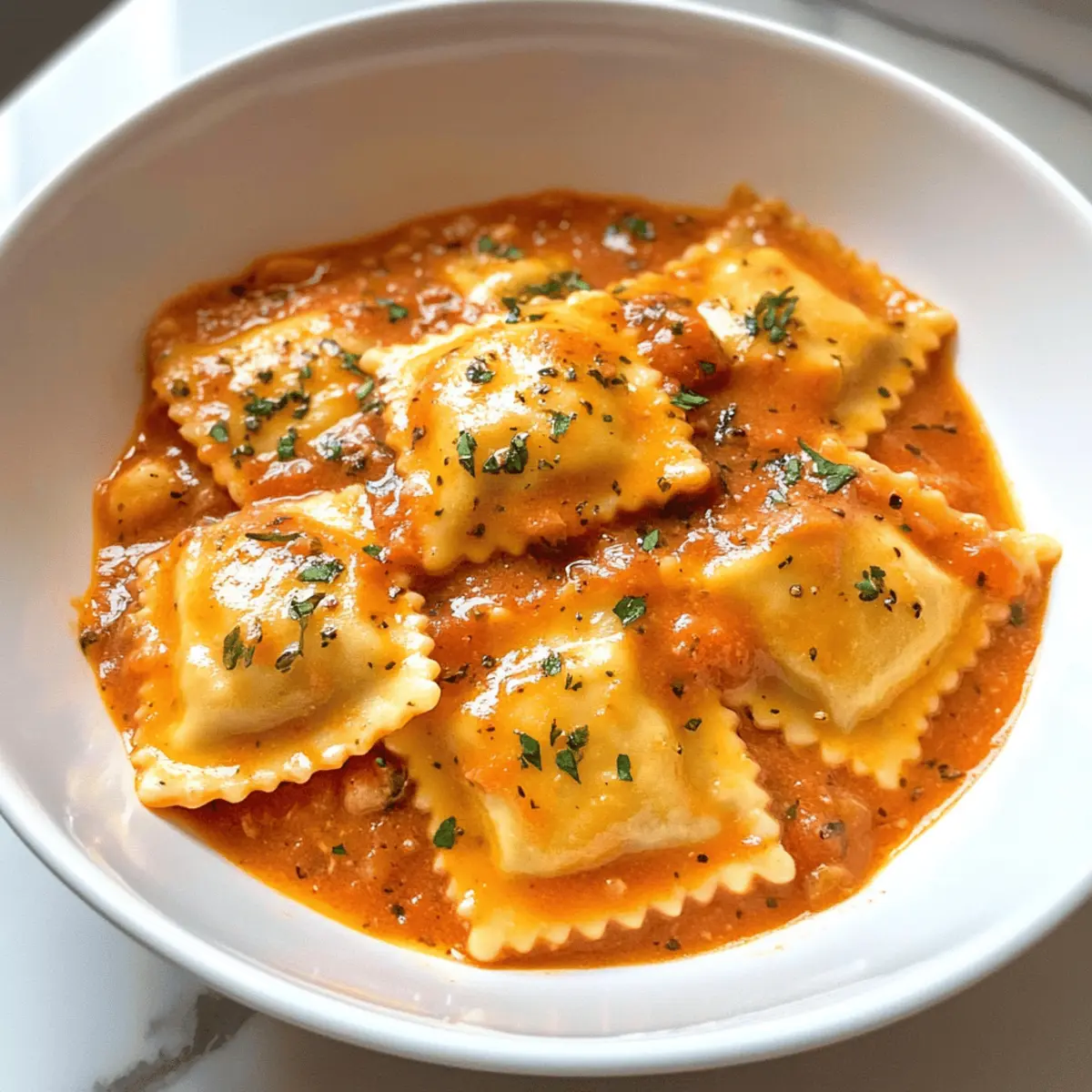 Es ist einer dieser Abende, an denen ich dringend eine Geschmacksexplosion auf dem Teller brauche, ohne stundenlang in der Küche zu stehen. Genau deshalb habe ich meine neue Lieblingssauce für Ravioli entdeckt: die einfache und cremige Rosé-Sauce! Diese köstliche, selbstgemachte Sauce vereint das Beste aus Tomaten und Sahne in einer seidigen Konsistenz, die im Handumdrehen zubereitet ist. Perfekt für geschäftige Wochentage oder ein schickes Dinner mit Freunden – sie bringt nicht nur Abwechslung auf den Tisch, sondern überzeugt auch mit einem klaren, vegetarischen Ansatz. Wer könnte schon einem cremigen Tomatengenuss widerstehen, der Ravioli zum Strahlen bringt? Bereit, deine Pasta-Now zu verwandeln? Warum wirst du diese Sauce lieben? Einfachheit: Die Zubereitung dieser Sauce ist kinderleicht und benötigt keine speziellen Kochkünste. Cremiger Genuss: Die perfekte Harmonie von Sahne und Tomaten sorgt für ein unvergleichlich reichhaltiges Geschmackserlebnis. Vielseitigkeit: Diese Sauce passt nicht nur zu Ravioli, sondern auch zu anderen Pastasorten wie Penne oder Fettuccine. Schnelle Vorbereitung: In nur 30 Minuten zauberst du ein köstliches Gericht, ideal für hektische Abende. Vegetarische Option: Mit Gemüsebrühe kannst du ganz einfach eine köstliche, fleischlose Variante kreieren. Entdecke dazu auch unsere leckeren Linsenknoedel Curry Sauce oder die Gegrillte Haehnchen Knoblauchsauce, um deinen kulinarischen Horizont zu erweitern! Ravioli Sauce Zutaten • Hier sind die Zutaten für die einfache und cremige Rosé Sauce, die deine Ravioli zum Strahlen bringt. Für die Sauce Extra natives Olivenöl – sorgt für Reichhaltigkeit und dient zum Anbraten. Avocadoöl kann für einen neutralen Geschmack verwendet werden. Mittlere Zwiebel (fein gewürfelt) – bringt aromatischen Geschmack und Süße. Gelbe oder weiße Zwiebeln sind gut geeignet. Knoblauch (3 Zehen, gehackt) – verstärkt das Geschmacksprofil. Kann durch Knoblauchpulver ersetzt werden, frischer ist jedoch vorzuziehen. Tomatenmark (⅓ Tasse) – sorgt für einen tiefen Tomatengeschmack und Dicke. Für einen milderen Geschmack kann Tomatensauce verwendet werden. Hühnerbrühe (1 Tasse) – fügt Tiefe und Umami hinzu. Für eine vegetarische Version kann niedrig natriumhaltige Gemüsebrühe verwendet werden. Gehackte Tomaten (1 Dose, 425 Gramm) – bietet Textur und Frische. Pürierte Tomaten können für eine glattere Sauce genutzt werden. Zucker (1 Esslöffel) – balanciert die Säure der Tomaten. Menge nach Geschmack anpassen oder weglassen. Italienische Gewürzmischung (1 Teelöffel) – verleiht kräuterige Noten. Kann durch getrockneten Oregano oder Basilikum ersetzt werden. Salz (¼ Teelöffel) – verbessert den Gesamtgeschmack. Nach Belieben anpassen. Schwarzer Pfeffer (¼ Teelöffel) – fügt milde Schärfe hinzu. Frisch gemahlener Pfeffer ist am besten für den Geschmack. Sahne (⅓ Tasse) – sorgt für die cremige Konsistenz der Sauce. Kann durch Kokosmilch für eine milchfreie Option ersetzt werden. Schritt-für-Schritt-Anleitung für die einfache cremige Rosé Sauce für Ravioli Step 1: Olivenöl erhitzen Erhitze in einem mittelgroßen Topf bei mittlerer bis hoher Hitze etwas von dem extra nativen Olivenöl. Füge die fein gewürfelte Zwiebel hinzu und brate sie für 4–5 Minuten an, bis sie weich und durchscheinend ist. Ergänze die gehackten Knoblauchzehen und rühre für eine weitere Minute um, bis der Knoblauch duftet und leicht goldbraun ist. Step 2: Tomatenmark hinzufügen Rühre das Tomatenmark in die Zwiebel-Knoblauch-Mischung ein und koche es für ungefähr 1 Minute. Dies gibt dem Tomatenmark die Gelegenheit, leicht zu karamellisieren, was den Geschmack der einfachen rosé Sauce für Ravioli intensiviert. Achte darauf, die Mischung kontinuierlich zu rühren, damit sie nicht anbrennt. Step 3: Brühe und Tomaten einfüllen Gib nun die Hühnerbrühe und die gehackten Tomaten aus der Dose in den Topf. Füge den Zucker, die italienische Gewürzmischung, das Salz und den schwarzen Pfeffer hinzu und rühre alles gut um. Lass die Sauce zum Kochen bringen, bevor du die Hitze reduzierst und sie für 15–20 Minuten bei schwacher Hitze köcheln lässt. Die Sauce sollte eindicken und die Aromen miteinander verschmelzen. Step 4: Sahne einrühren Nach dem Köcheln der Sauce, füge vorsichtig die Sahne hinzu und lasse sie für weitere 2 Minuten bei schwacher Hitze köcheln, um die Aromen zu vereinen. Rühre kontinuierlich um, damit die Mischung gleichmäßig wird und die cremige Konsistenz entsteht, die diese rosé Sauce so besonders macht. Step 5: Servieren Wenn die einfache cremige Rosé Sauce für Ravioli gut durchgezogen ist, nimm sie vom Herd. Serviere sie warm über frisch gekochten Ravioli. Du wirst die samtige Textur und den reichhaltigen Geschmack lieben, der deinen Abend bereichert. Variationen und Ersatzmöglichkeiten Passe deine Sauce nach deinem Geschmack an! Lass deiner Kreativität freien Lauf und entdecke neue, köstliche Kombinationen. Vegetarische Version: Ersetze die Hühnerbrühe durch eine niedrig natriumhaltige Gemüsebrühe für eine schmackhafte, fleischlose Variante. Würzig: Füge eine Prise rote Pfefferflocken hinzu, um deiner Sauce etwas Feuer zu verleihen. Diese kleine Änderung kann eine angenehme Schärfe bringen und den Geschmack intensivieren. Gemüse: Integriere sautierte Spinat- oder Champignonstücke für mehr Textur und Nährstoffe. Diese Gemüsevarianten eignen sich hervorragend für eine bunte und nahrhafte Sauce. Kokosmilch: Verwende Kokosmilch anstelle der Sahne für eine milchfreie, exotische Note, die eine überraschende Geschmackstiefe hinzufügt. Nüsse: Mische ein paar gehackte Walnüsse oder Mandeln unter die Sauce für zusätzlichen Crunch und ein nussiges Aroma. Frischkäse: Ersetze die Sahne durch einen Schuss Frischkäse für eine extra cremige Konsistenz und einen leicht säuerlichen Geschmack. Pasta-Vielfalt: Probiere die Sauce nicht nur mit Ravioli