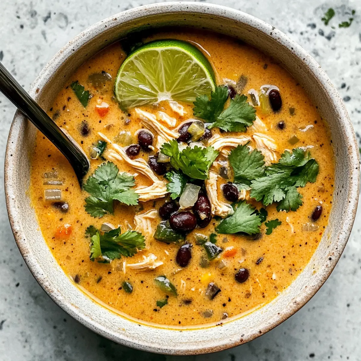 Entdecke die perfekte Kombination aus Geschmack und Komfort mit dieser Einfache Hähnchen-, Poblano- und schwarze-Bohnen-Suppe und lass dich von den Aromen verzaubern!