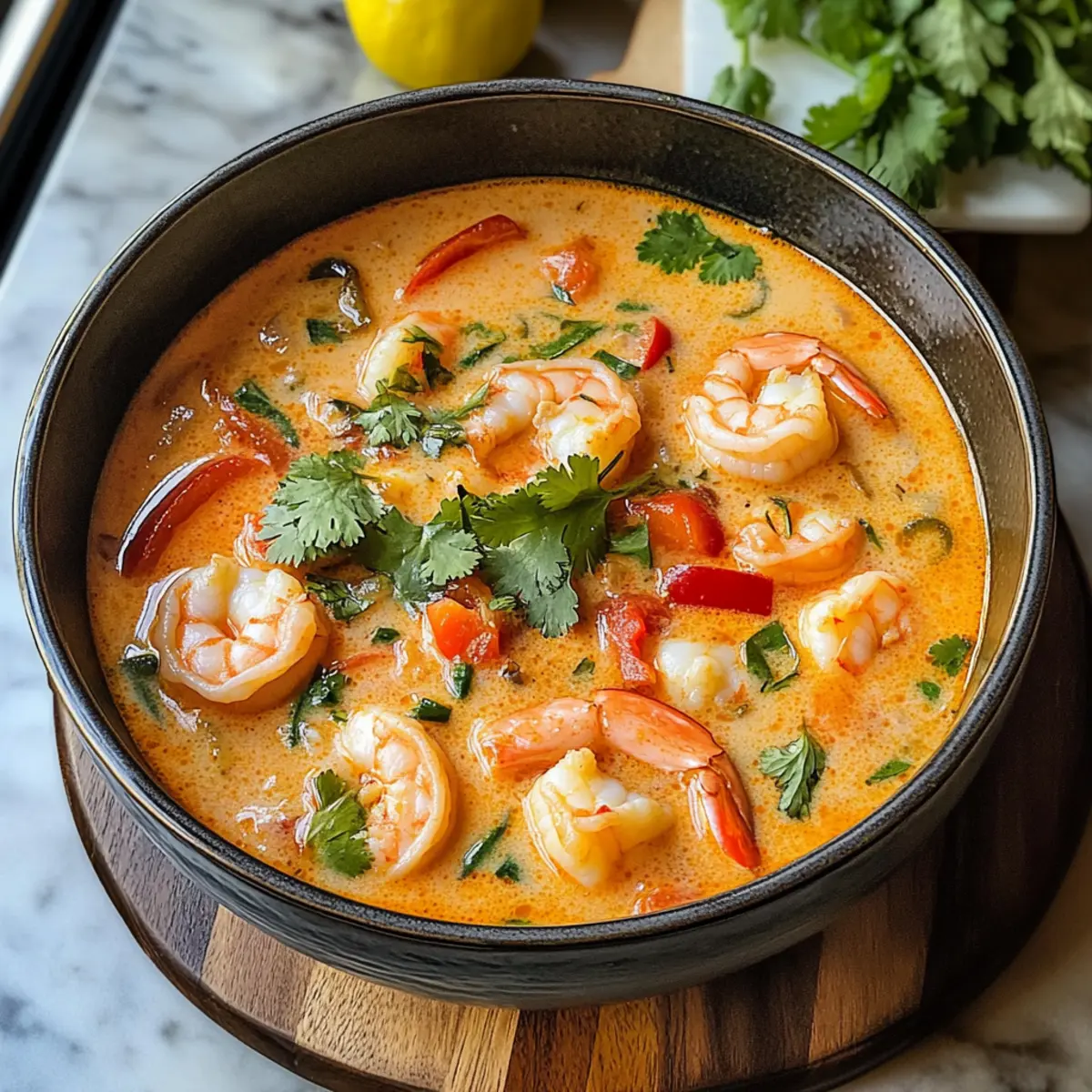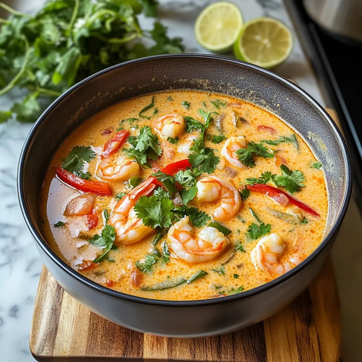 In einer kleinen Garküche in Bangkok hatte ich meine erste Begegnung mit der Einfachheit und dem Reichtum der Thai-Küche, und es war ein kulinarisches Erlebnis, das ich nie vergessen werde. Die einfache Thai Garnelensuppe ist genau das – eine harmonische Melange aus geschmackvollen Zutaten, die in einem zarten Kokosmilch-Bouquet vereint sind. Dieses Rezept ist nicht nur blitzschnell zubereitet, sondern auch eine wahre Freude für die Sinne, ideal für geschäftige Wochentage oder gemütliche Abende zu Hause. Jede Schüssel bietet eine perfekte Balance zwischen frischen Gemüsen und saftigen Garnelen, sodass sie sowohl sättigend als auch leicht ist. Wer möchte nicht in den Genuss dieser schmackhaften und pflegeleichten Suppe kommen? Lass uns gemeinsam entdecken, wie du mit wenigen Zutaten ein Stück Thailand auf deinen Tisch zaubern kannst! Warum wirst du diese Suppe lieben? Schnelligkeit und Einfachheit: In weniger als 30 Minuten zauberst du ein köstliches Gericht, das perfekt in deinen hektischen Alltag passt. Vielseitigkeit: Du kannst die Garnelen gegen Hähnchen oder Tofu austauschen, um deinem Geschmack gerecht zu werden. Für eine stärkere Note sind auch verschiedene Currypasten ideal. Aromatische Fülle: Die Kombination aus Kokosmilch, frischen Kräutern und Gewürzen sorgt für ein Geschmacksfeuerwerk, das deine Sinne kitzelt. Gesund und Lecker: Diese Suppe ist reich an Proteinen und Gemüse, somit perfekt für eine leichte Mahlzeit. Wer denkt nicht sofort an eine Ergänzung wie Parmesan Knoblauch Gemüsepommes dazu? Kultigen Flair: Mit jedem Löffel schmeckst du die Aromen Thailands, die die einfache Gourmeterfahrung zu einem besonderen Moment machen. Einfache Thai Garnelensuppe Zutaten • Diese Einfache Thai Garnelensuppe ist nicht nur schnell zubereitet, sondern auch mit zahlreichen köstlichen Zutaten gefüllt, die dir ein Stück Thailand nach Hause bringen. Für die Suppe Basmati Reis – sorgt für eine herzhafte Grundlage der Suppe und kann durch Jasminreis ersetzt werden. Medium Garnelen (geschält und entdarmt) – die Hauptproteinquelle, die eine zarte Textur liefert; auch Hähnchen oder Tofu sind gute Alternativen. Koshersalz und frisch gemahlener schwarzer Pfeffer – essentielles Gewürz zur Geschmacksbalance; nach Belieben anpassen. Ungesalzene Butter – verleiht der Suppe Reichhaltigkeit; alternativ kann auch Olivenöl oder Kokosöl verwendet werden. Zwiebel (gewürfelt) – bietet Süße und eine fundamentale Geschmacksbasis; weiße oder gelbe Zwiebeln sind geeignete Ersatzoptionen. Rote Paprika (gewürfelt) – fügt Farbe und Süße hinzu; grüne Paprika oder dünn geschnittene Karotten sind gute Alternativen. Rote Currypaste – der Schlüssel zu dem charakteristischen Geschmack der Suppe; verschiedene Pasten zu verwenden, kann für unterschiedliche Schärfegrade sorgen. Knoblauch (gehackt) – sorgt für ein aromatisches Aroma; Knoblauchpulver kann bei Bedarf verwendet werden. Frisch geriebener Ingwer – bringt Wärme und Gewürz; gemahlener Ingwer kann verwendet werden, frischer ist jedoch empfehlenswert. Kokosmilch (13,5-Unzen-Dose) – schafft eine cremige Textur und balanciert die Gewürze; für eine leichtere Version kann leichte Kokosmilch verwendet werden. Gemüsebrühe – die Grundlage der Suppe, die den Geschmack ohne Fleisch verbessert; Hühnerbrühe ist ebenfalls eine gute Option. Frisch gepresster Limettensaft – belebt die Aromen und fügt Säure hinzu; Zitronensaft kann gleichwertig verwendet werden. Frische Korianderblätter (gehackt) – sorgt für Frische als Garnitur; kann weggelassen oder durch Frühlingszwiebeln ersetzt werden. Schritt-für-Schritt-Anleitung für die Einfache Thai Garnelensuppe Step 1: Reis zubereiten Bringe in einem großen Topf 1,5 Tassen Wasser zum Kochen und füge den Basmati-Reis hinzu. Koche den Reis entsprechend den Anweisungen auf der Verpackung, bis er weich und fluffig ist, etwa 15 Minuten. Achte darauf, dass das Wasser vollständig absorbiert wird. Nachdem der Reis fertig ist, lasse ihn abkühlen und stelle ihn beiseite. Step 2: Garnelen anbraten Würze die geschälten und entdarmten Garnelen mit Koshersalz und frisch gemahlenem schwarzem Pfeffer. Erhitze in einem großen Suppentopf bei mittlerer bis hoher Hitze die ungesalzene Butter. Brate die Garnelen für etwa 2-3 Minuten, bis sie rosa und durchgegart sind. Nimm die Garnelen aus dem Topf und stelle sie zur Seite, während du die anderen Zutaten zubereitest. Step 3: Gemüse anbraten Im gleichen Topf füge die gewürfelte Zwiebel und die rote Paprika hinzu und brate sie für ca. 3-4 Minuten an, bis sie weich sind und die Zwiebeln leicht durchsichtig werden. Rühre gelegentlich um, damit nichts anbrennt. Diese Basis wird der Suppe eine wunderbare Süße verleihen. Step 4: Gewürze hinzufügen Rühre nun die rote Currypaste, den gehackten Knoblauch und den frisch geriebenen Ingwer in den Topf ein. Koche die Mischung für etwa 2 Minuten, bis sie aromatisch ist und die Aromen freigesetzt werden. Achte darauf, dass die Currypaste gleichmäßig verteilt ist, um ein harmonisches Geschmackserlebnis der Einfache Thai Garnelensuppe zu erzielen. Step 5: Flüssigkeiten einfüllen Gieße die Kokosmilch und die Gemüsebrühe in den Topf und rühre alles gut um. Würze mit zusätzlichem Salz und Pfeffer nach Geschmack. Bringe die Mischung zum Kochen, reduziere dann die Hitze und lasse die Suppe für etwa 8-10 Minuten köcheln. Die Suppe sollte leicht eingedickt sein und die Aromen gut miteinander verschmelzen. Step 6: Garnelen und Reis kombinieren Füge den vorbereiteten Reis, die gebratenen Garnelen, den frisch gepressten Limettensaft und die gehackten Korianderblätter in die Suppe. Rühre alles gut um, sodass die Garnelen und der Reis gleichmäßig verteilt sind. Lass die Suppe noch für etwa 2 Minuten erwärmen, damit sich die Aromen setzen und verbinden können. Step 7: Servieren Sobald die Einfache Thai Garnelensuppe heiß ist, serviere sie sofort in Schalen